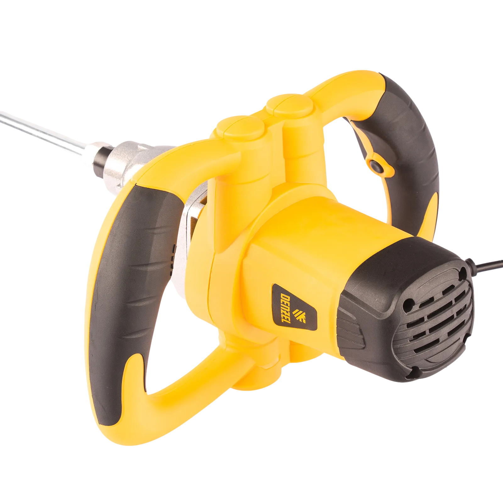 Миксер строительный Denzel EM-1-1220 27903 мощностью 1220 Вт предназначен для смешивания различных смесей, растворов, лакокрасочных материалов на скорости 0-480/0-800 об/мин при проведении строительных и ремонтных работ. Эффективно работает с мелким щебнем и крупнодисперсными смесями, а высокий крутящий момент 107 Н⋅м позволяет смешивать даже вязкие растворы. Миксер предназначен для бытового применения.
