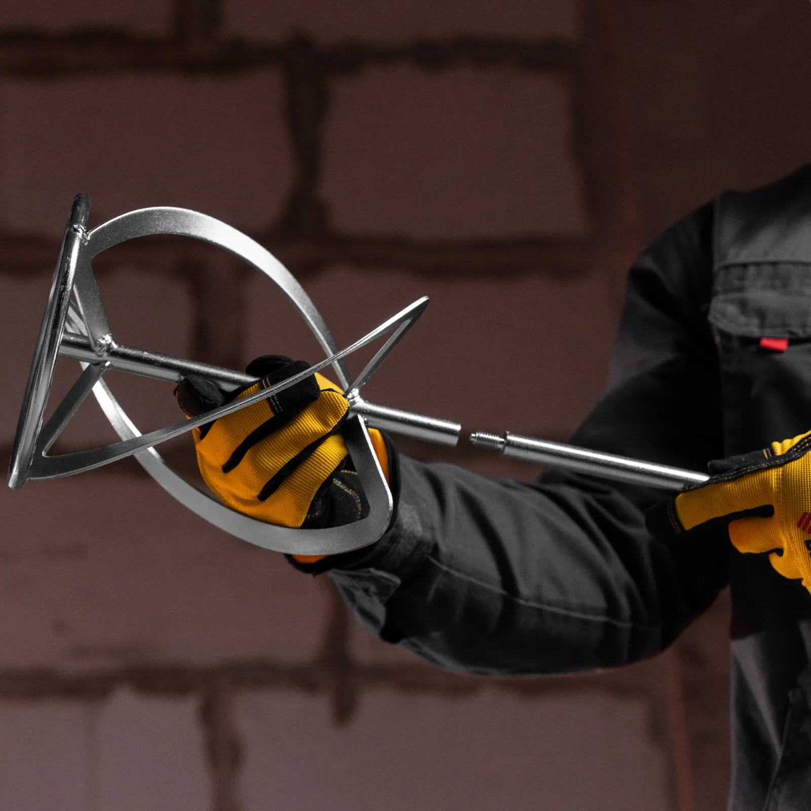 - Диаметр оснастки 160 мм — строительные компоненты смешиваются равномерно, двигатель не перегружается.