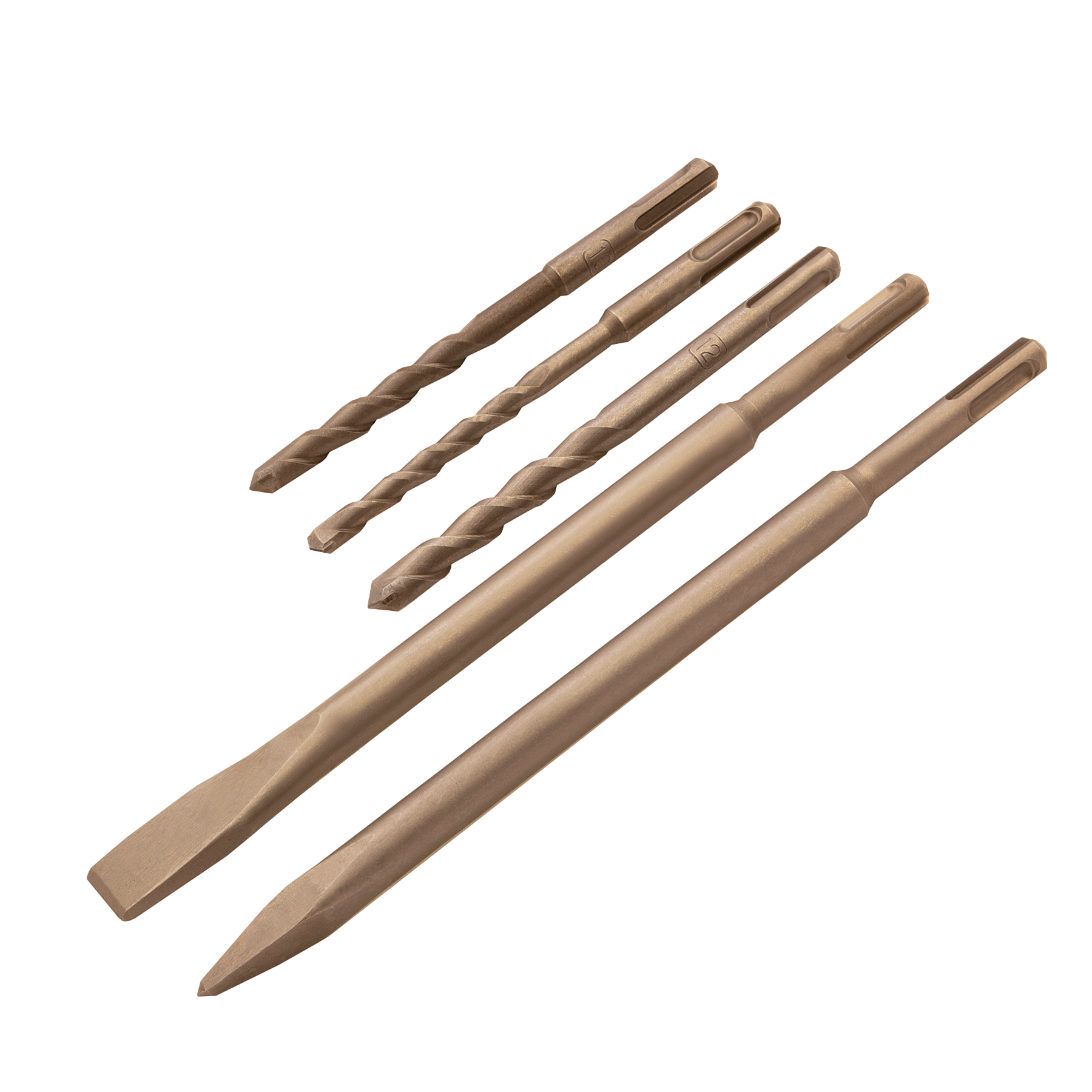 - Быстрая подготовка к работе — хвостовик оснастки надежно фиксируется в патроне SDS-plus.