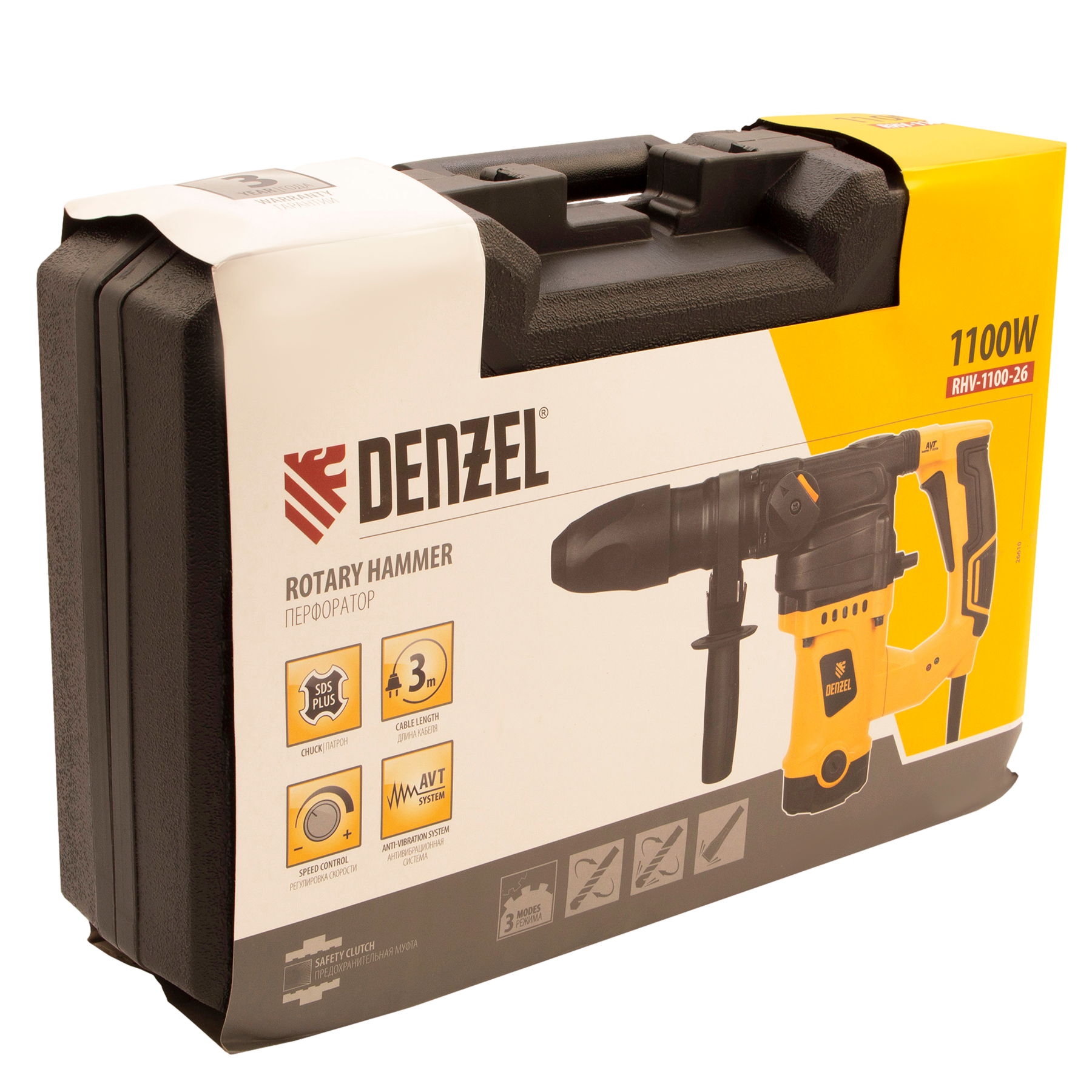 Компактный электрический перфоратор Denzel RHV-1100-26 26610 мощностью 1100 Вт, с патроном под хвостовик SDS-plus, развивает энергию удара 4 Дж и обеспечивает эффективную работу в режимах сверления, бурения и отбойного молотка. Подходит для штробления стен и демонтажа кафеля, легко справляется с древесиной, металлом, камнем, кирпичом и бетоном. Проделывает отверстия в бетоне диаметром до 26 мм, в древесине до 40 мм и в металле до 13 мм. Инструмент будет полезен для проведения строительных и ремонтных работ.
