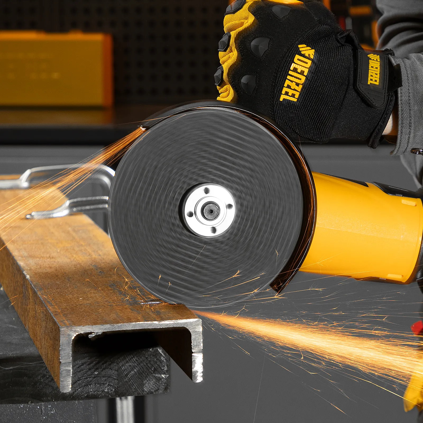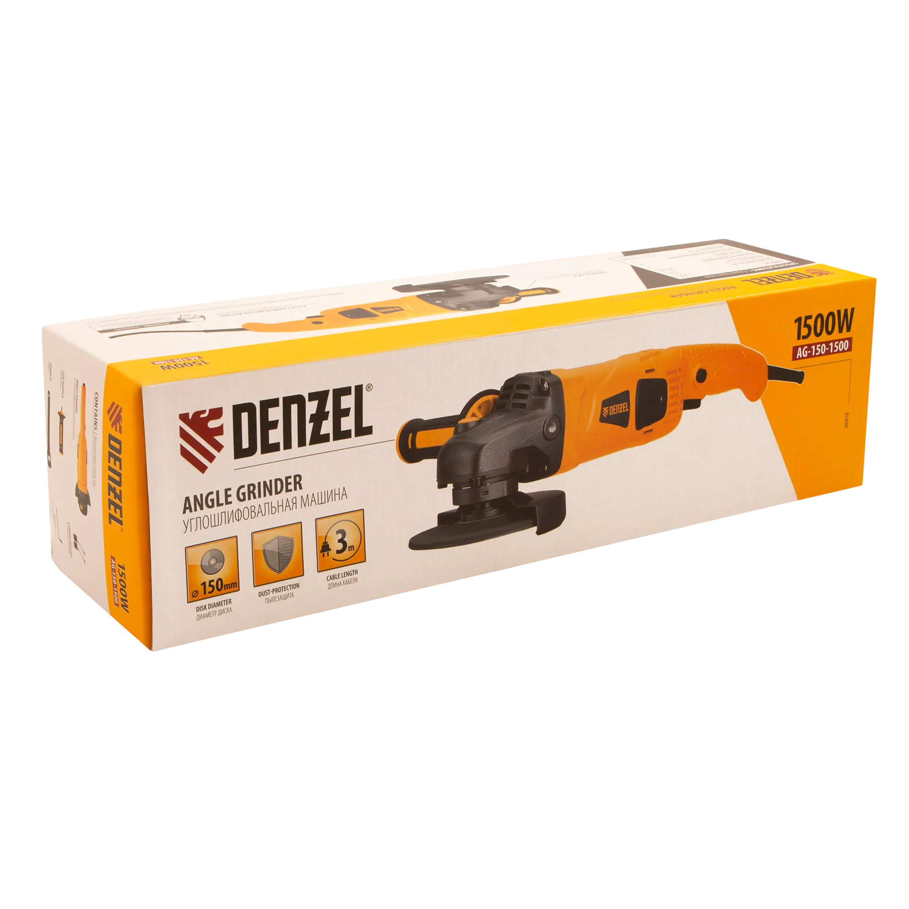 Угловая шлифовальная машина Denzel AG150-1500 26910 мощностью 1500 Вт совместима с насадками максимальным диаметром 150 мм, поддерживает частоту вращения шпинделя 8500 об/мин, благодаря чему эффективно справляется с обработкой и зачисткой поверхностей, а также резкой, шлифовкой металла толщиной до 50 мм и камня. Пригодится дома, в гараже и на даче.