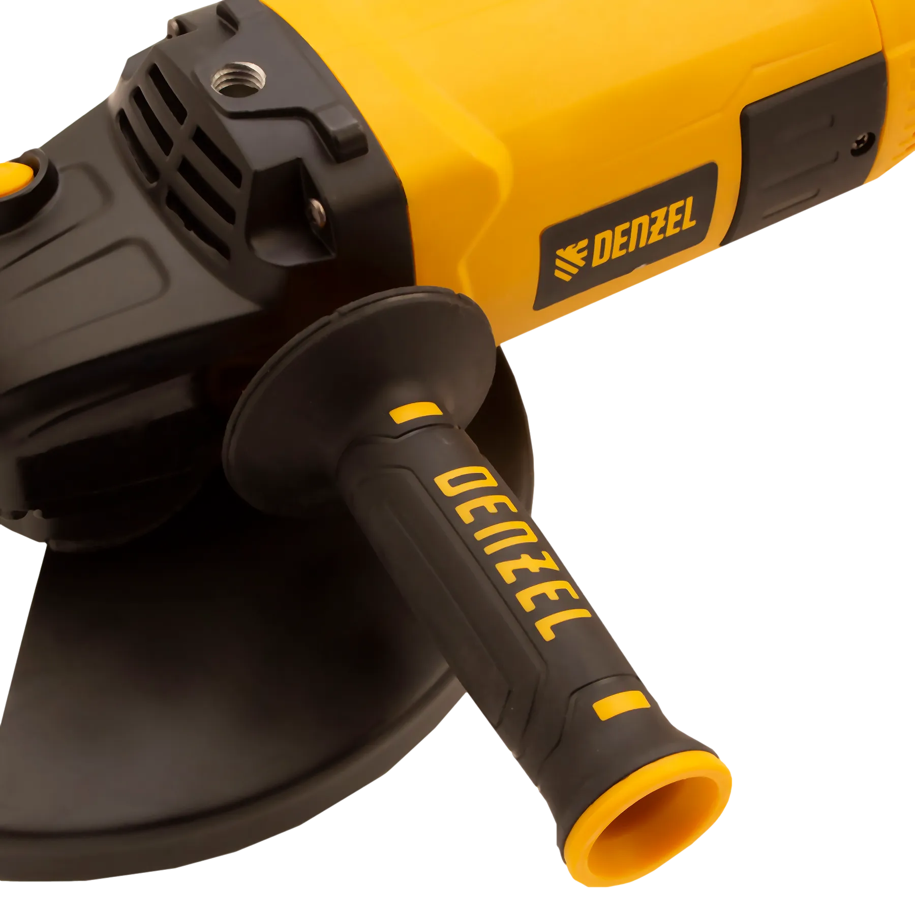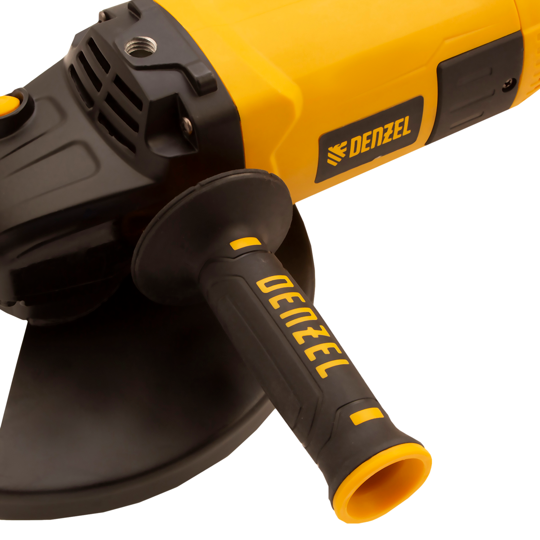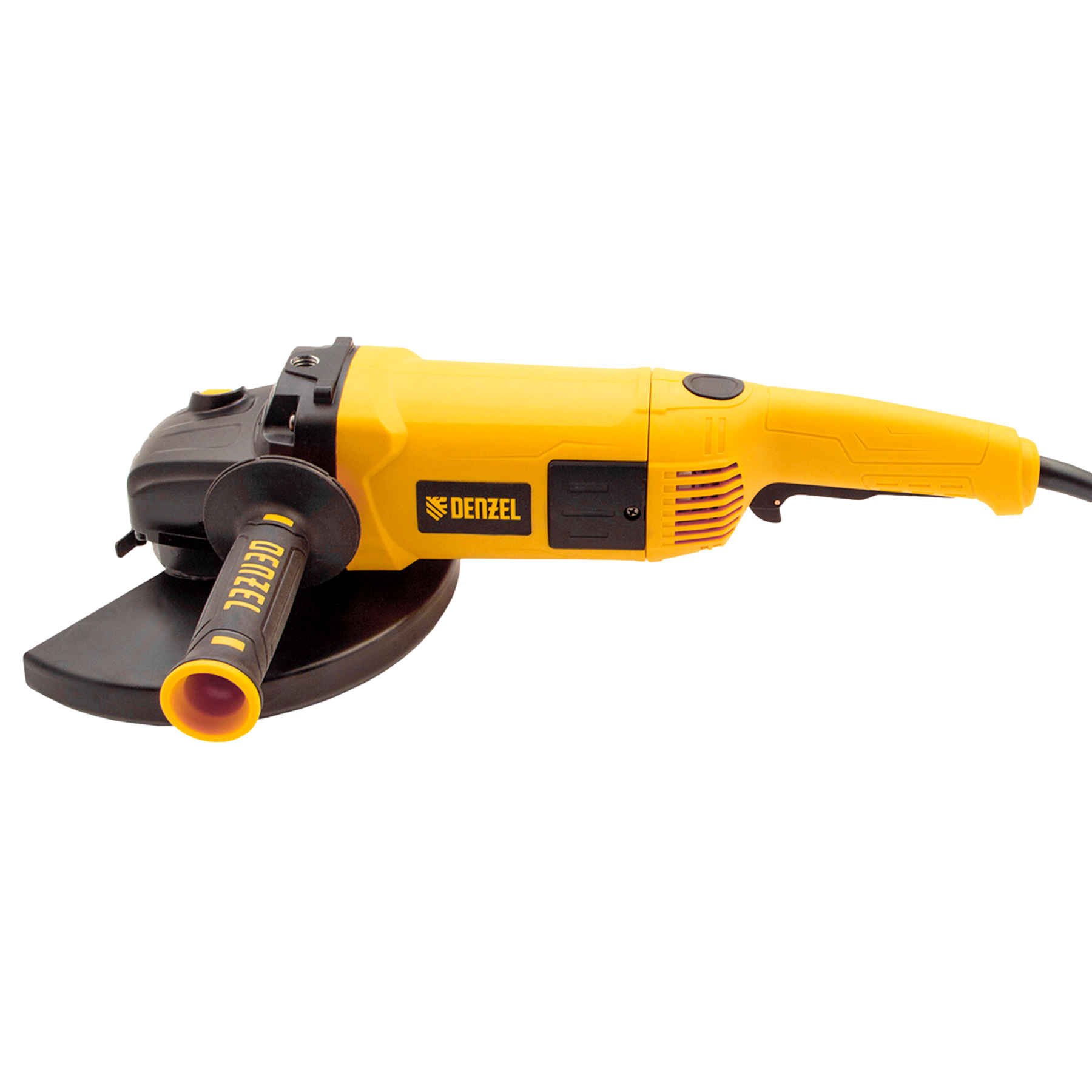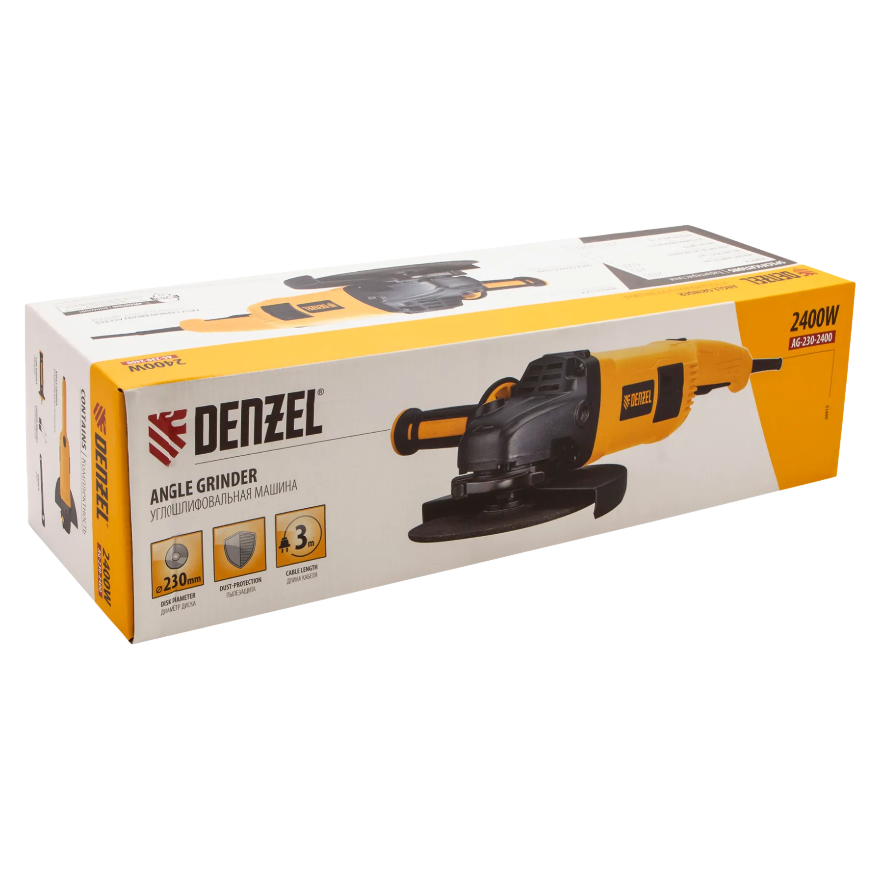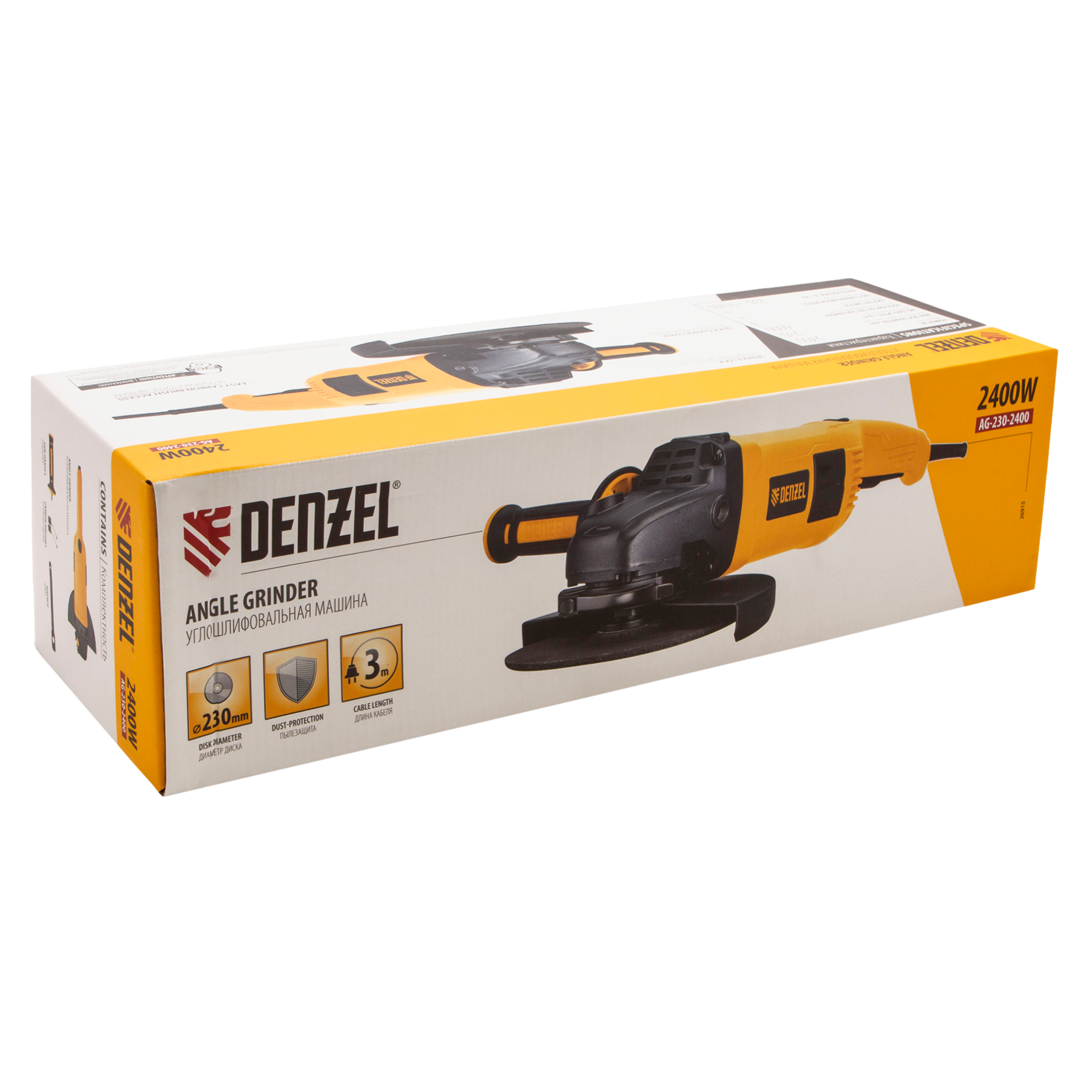 Угловая шлифовальная машина Denzel AG230-2400 26915 мощностью 2400 Вт совместима с насадками максимальным диаметром 230 мм, поддерживает частоту вращения шпинделя 6000 об/мин, благодаря чему эффективно справляется с обработкой и зачисткой поверхностей, а также резкой, шлифовкой металла толщиной до 80 мм и камня. Пригодится дома, в гараже и на даче.