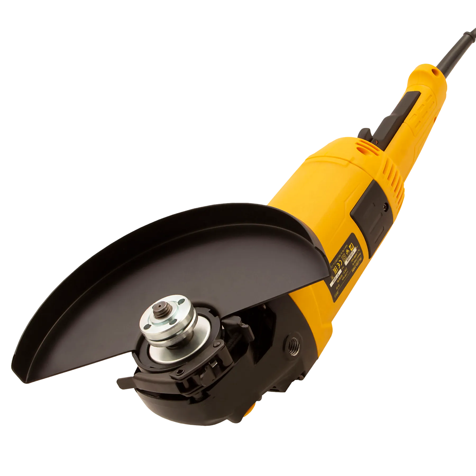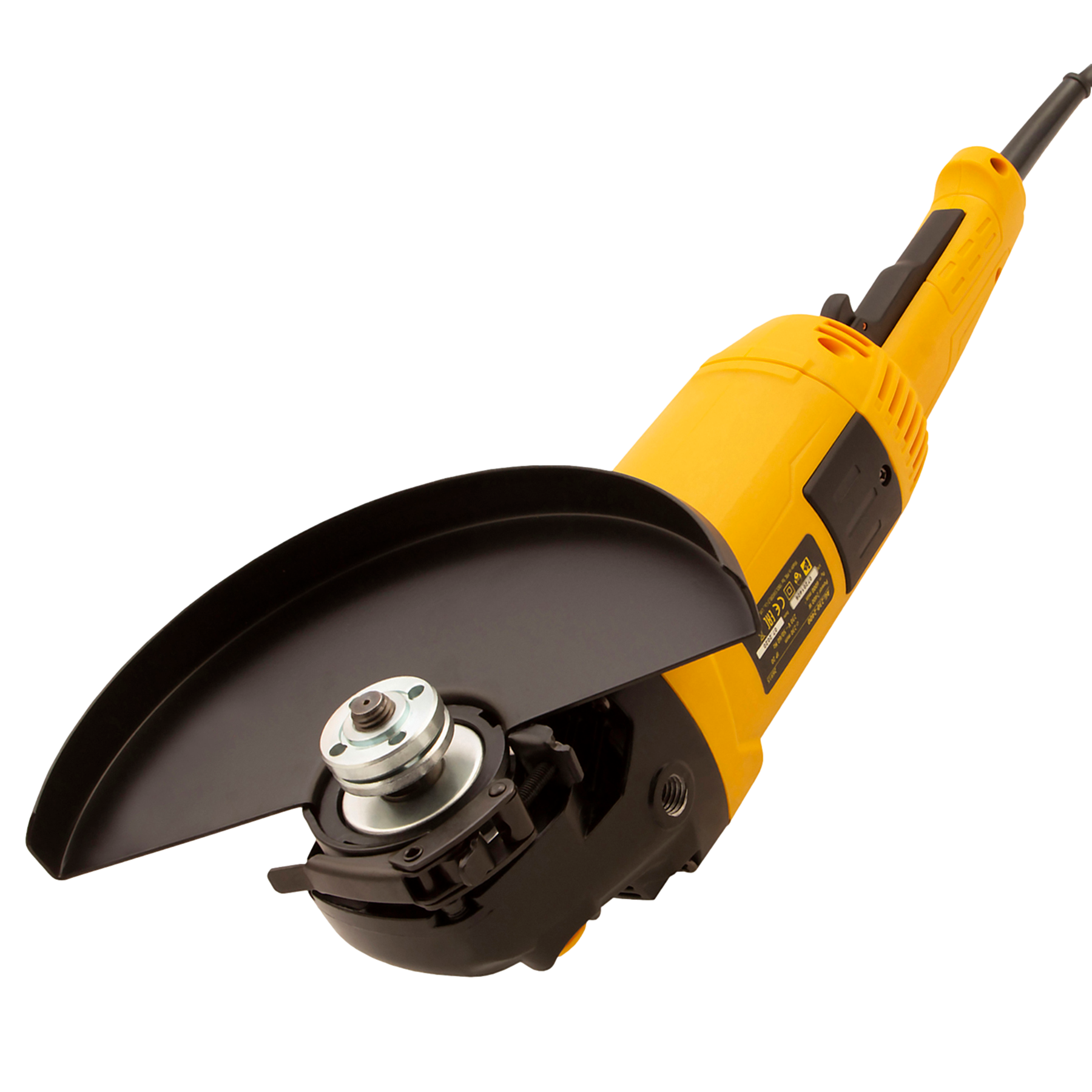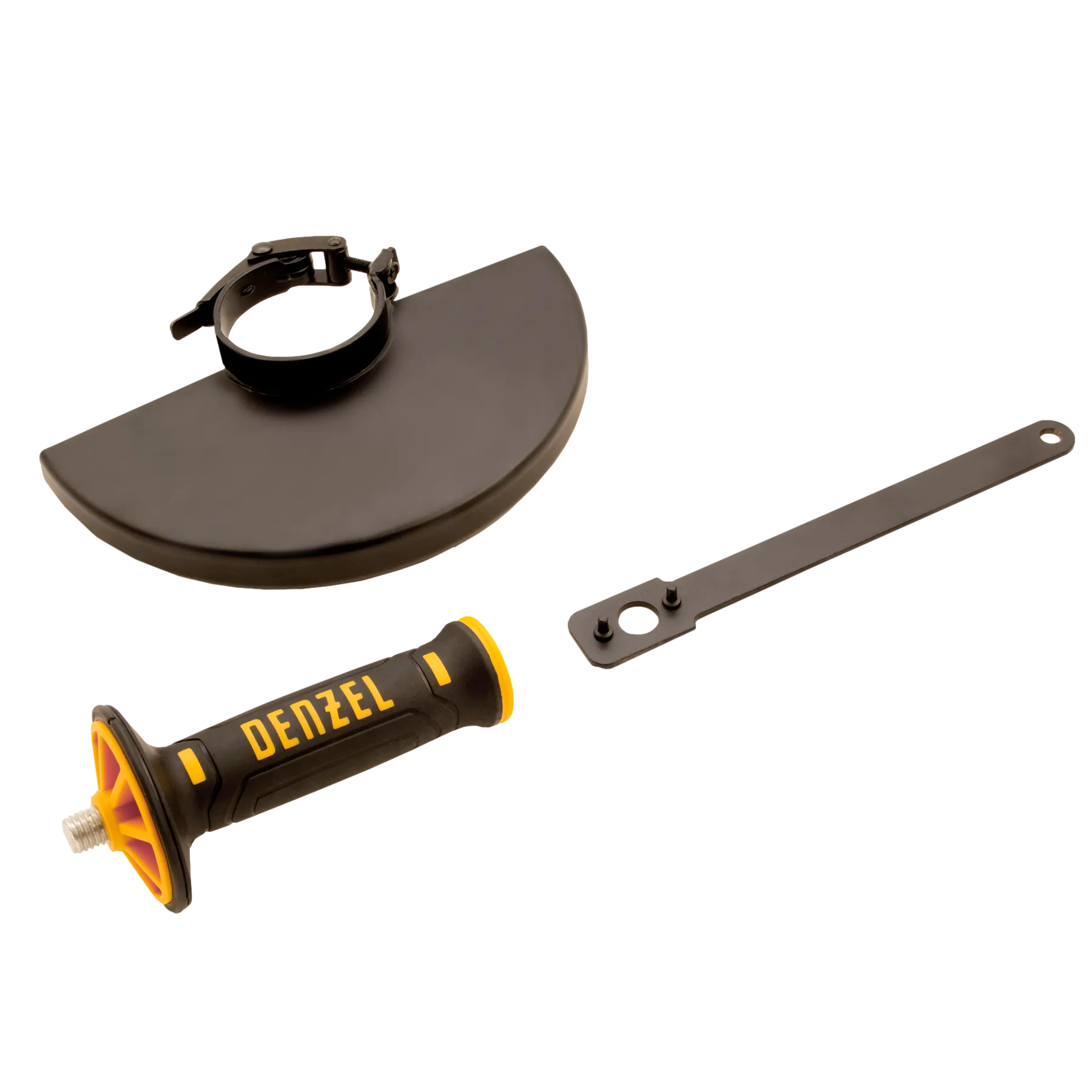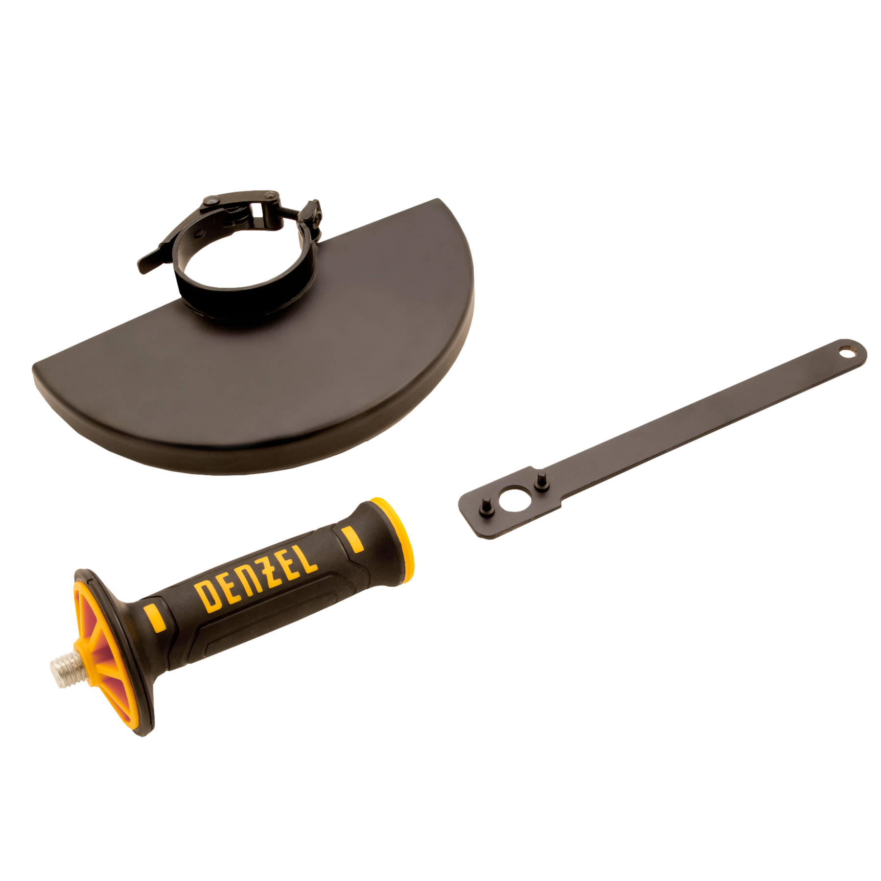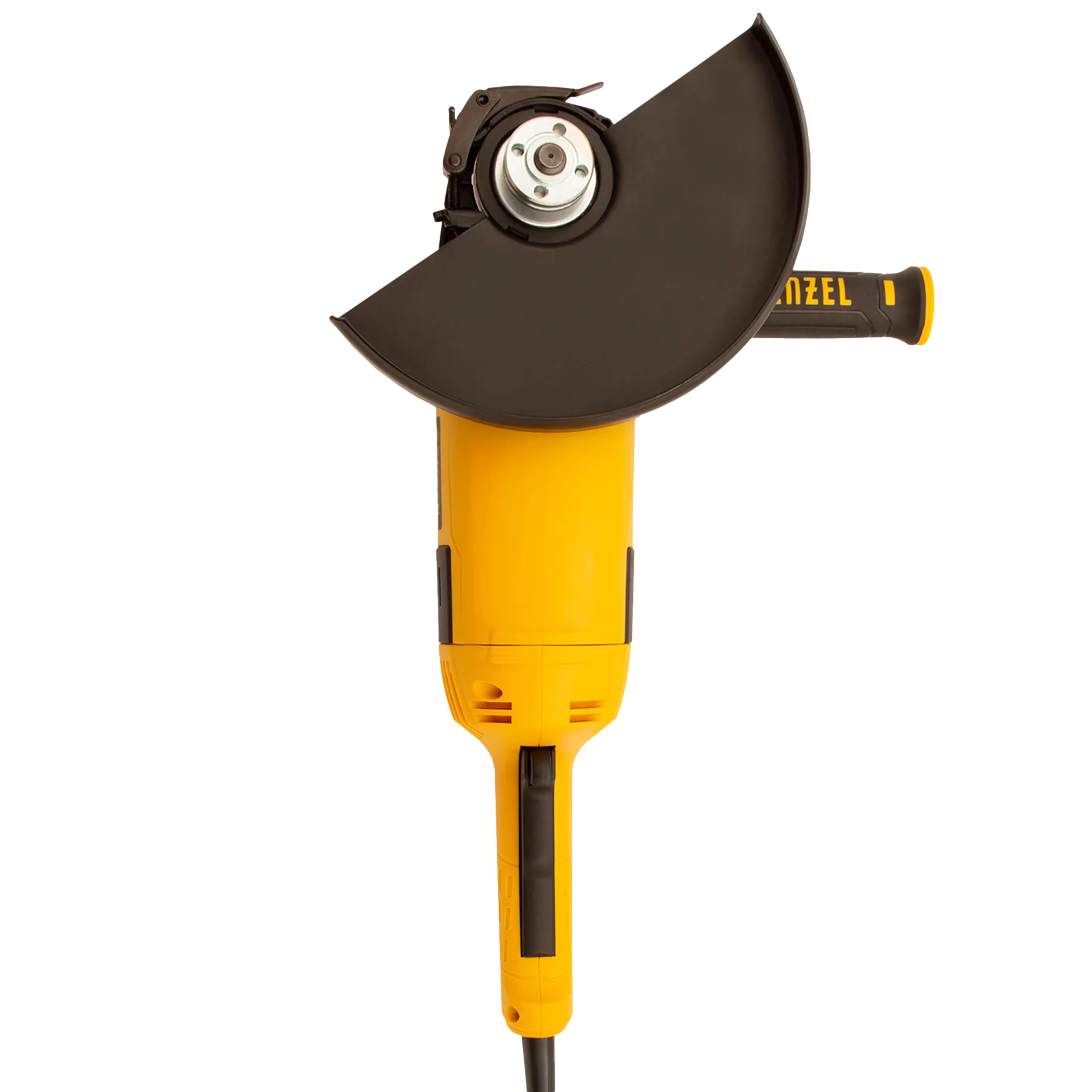 Угловая шлифовальная машина Denzel AG230-2400 26915 мощностью 2400 Вт совместима с насадками максимальным диаметром 230 мм, поддерживает частоту вращения шпинделя 6000 об/мин, благодаря чему эффективно справляется с обработкой и зачисткой поверхностей, а также резкой, шлифовкой металла толщиной до 80 мм и камня. Пригодится дома, в гараже и на даче.