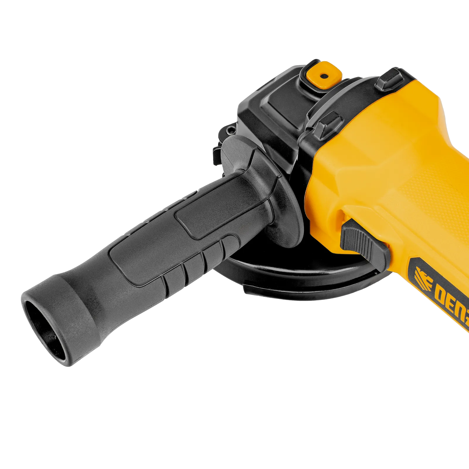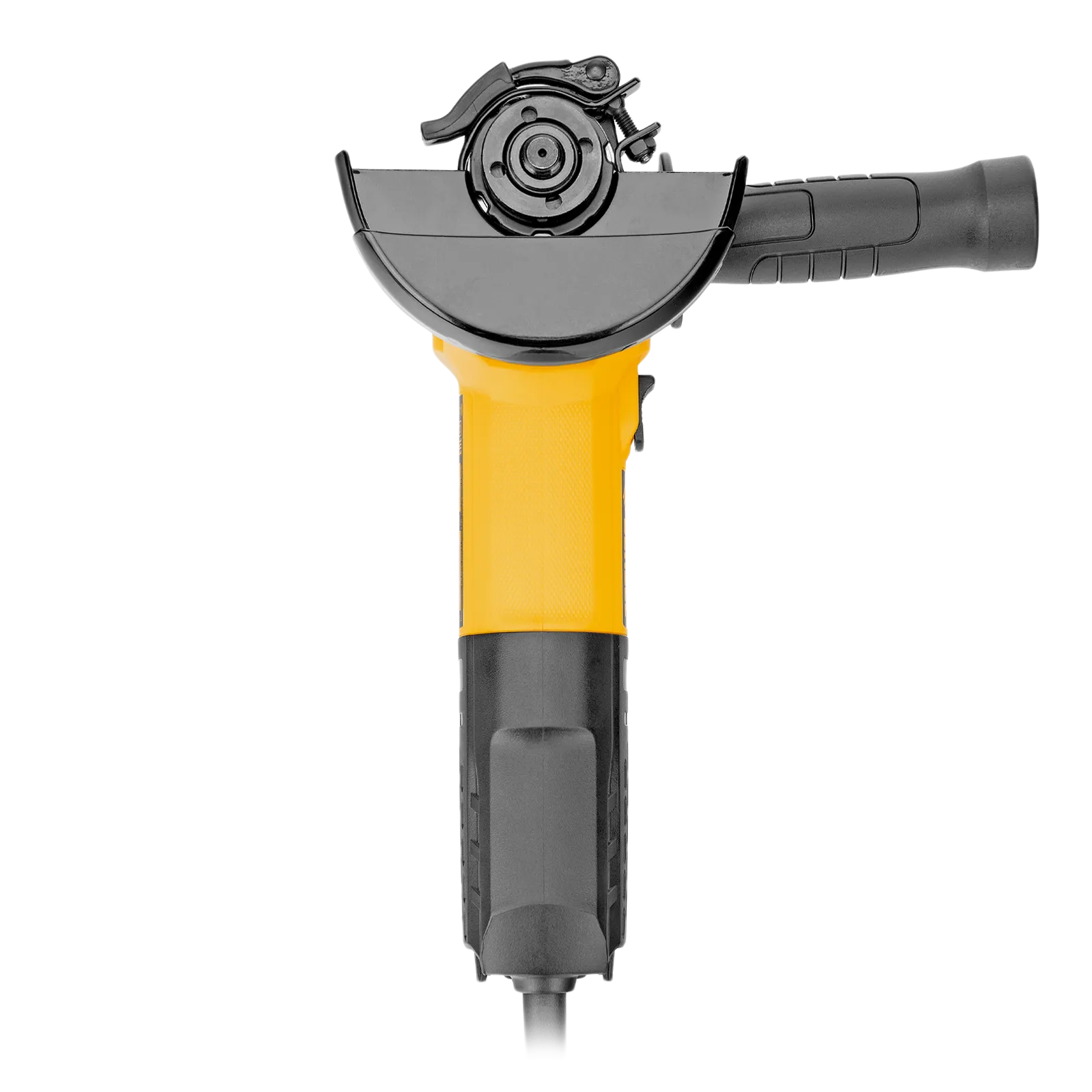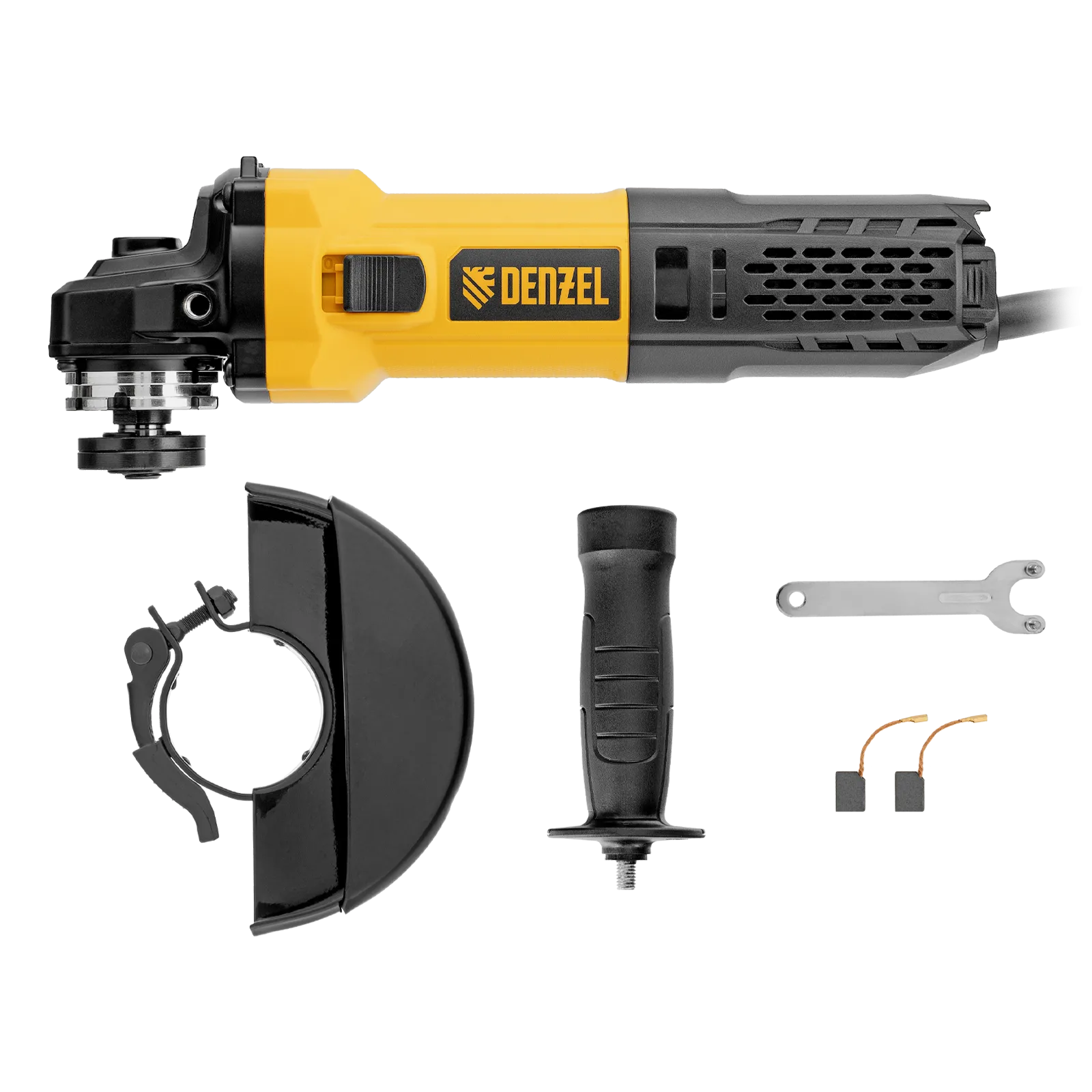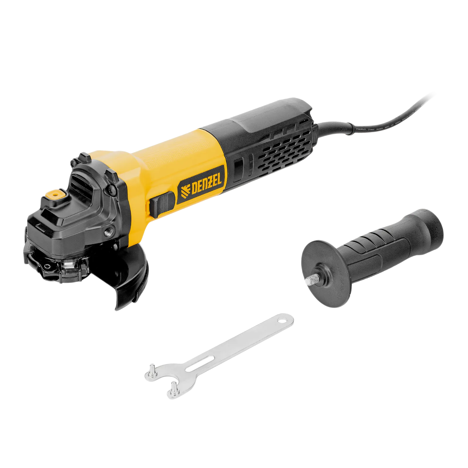 - Все необходимое в комплекте — УШМ поставляется с боковой рукояткой, защитным кожухом, ключом для фиксации оснастки и запасными угольными щетками.
