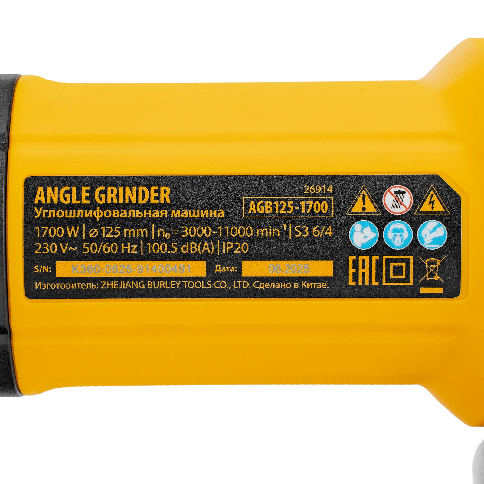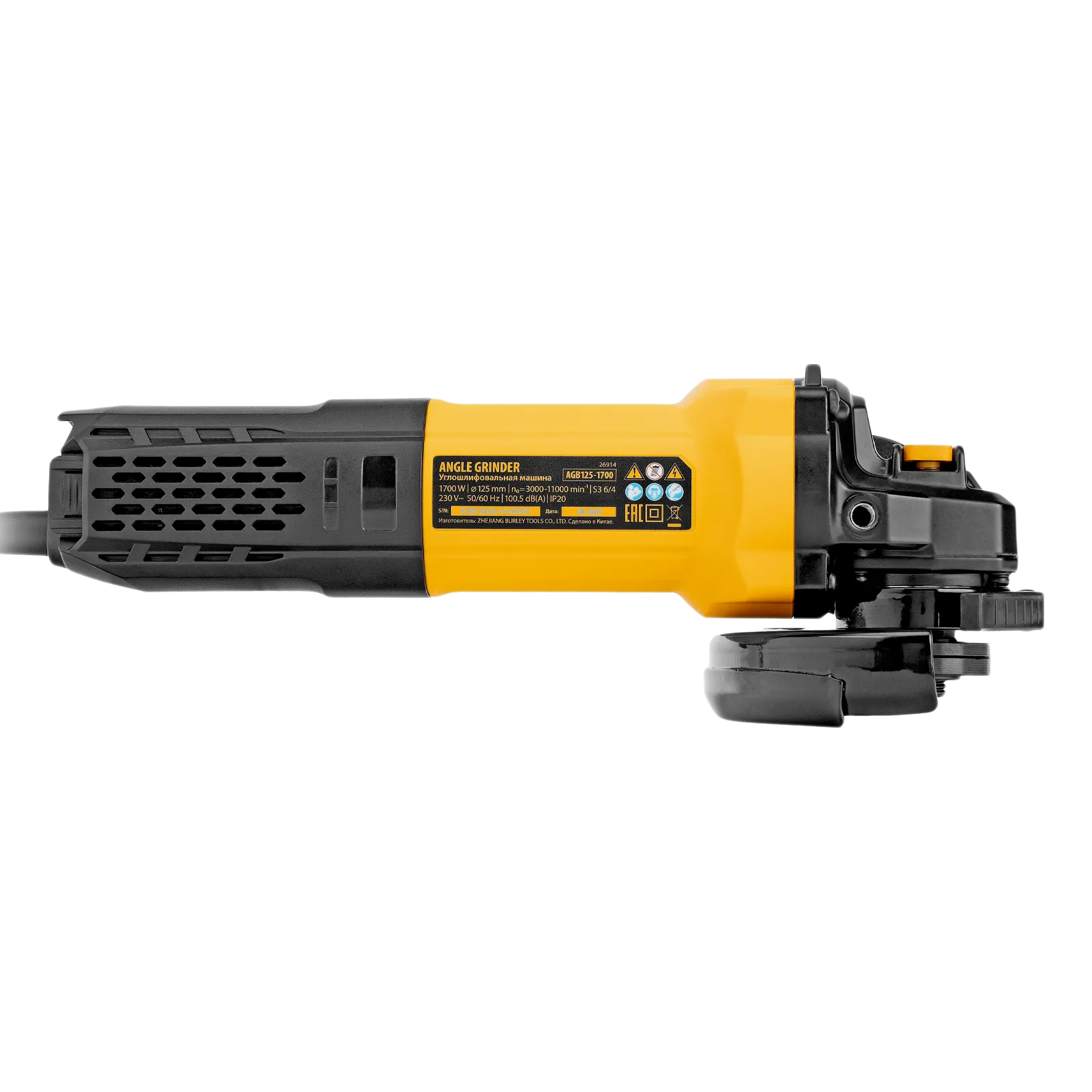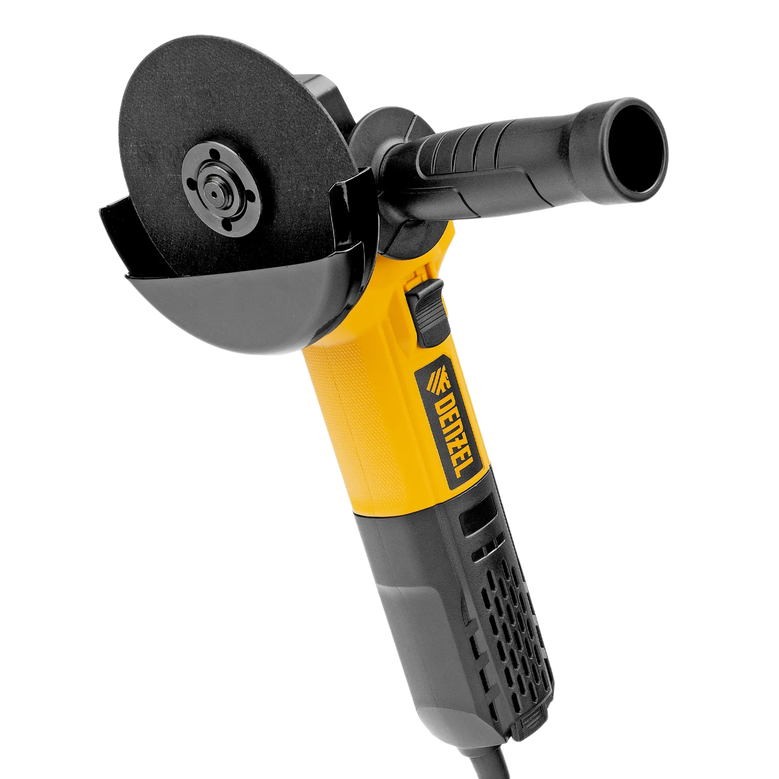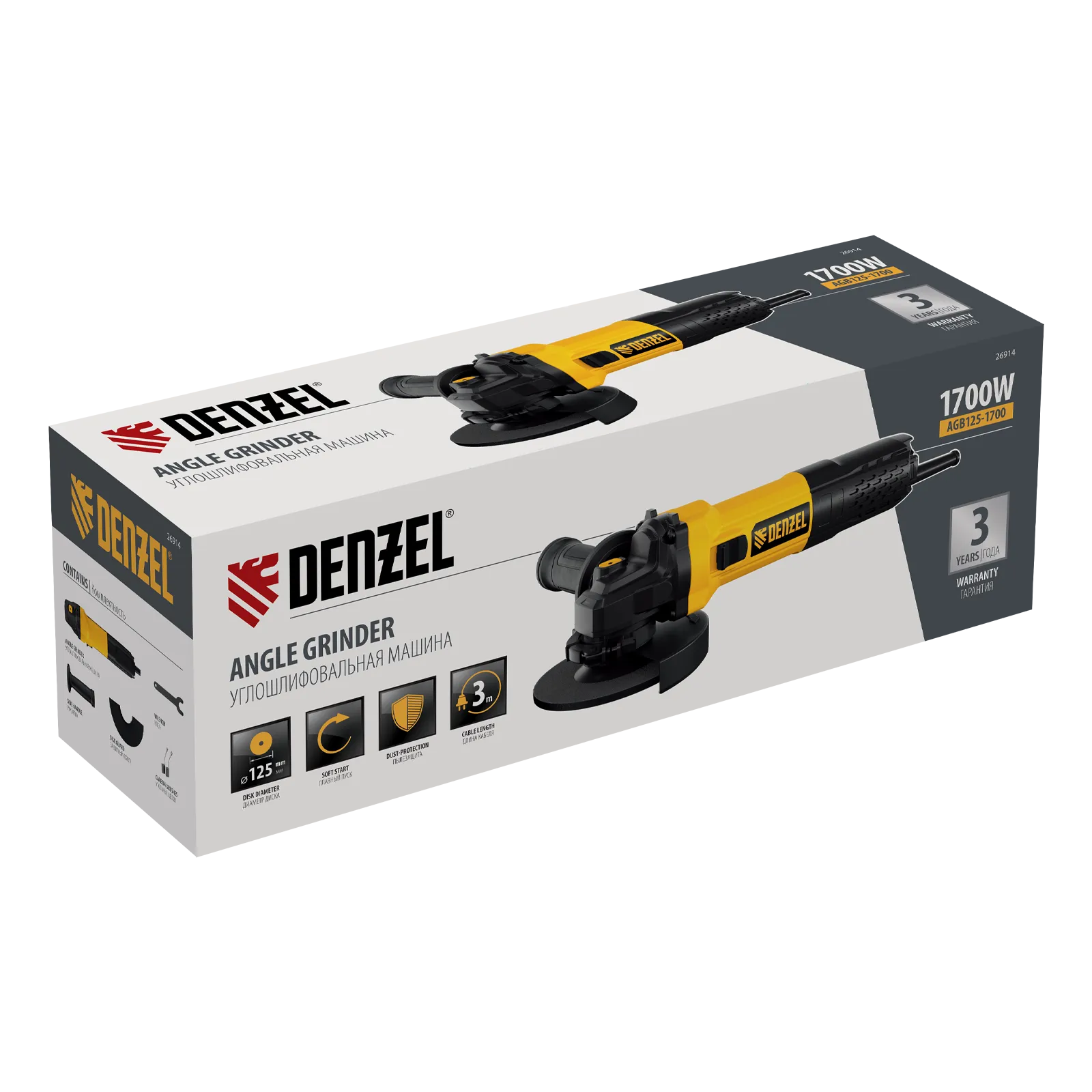 Угловая шлифовальная машина Denzel AGB-125-1700 26914 мощностью 1700 Вт используется для выполнения отрезных, зачистных и шлифовальных работ с металлическими заготовками при помощи абразивных кругов и проволочных щеток. Совместима с оснасткой диаметром 125 мм, имеет функцию поддержания оборотов под нагрузкой, частота вращения шпинделя составляет 3000-11000 об/мин. Система пылезащиты двигателя позволяет работать по бетону и камню.