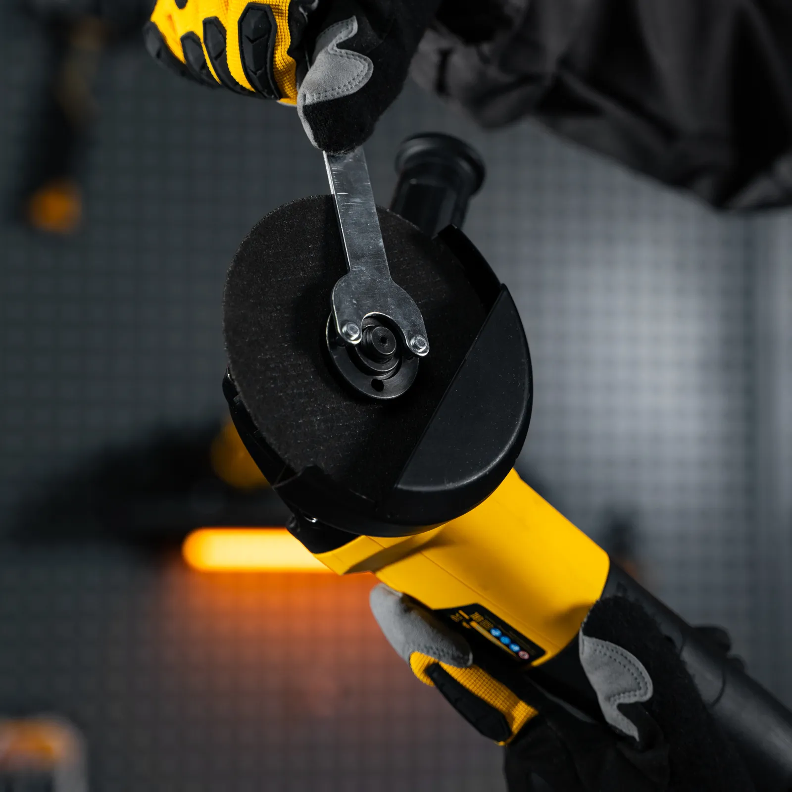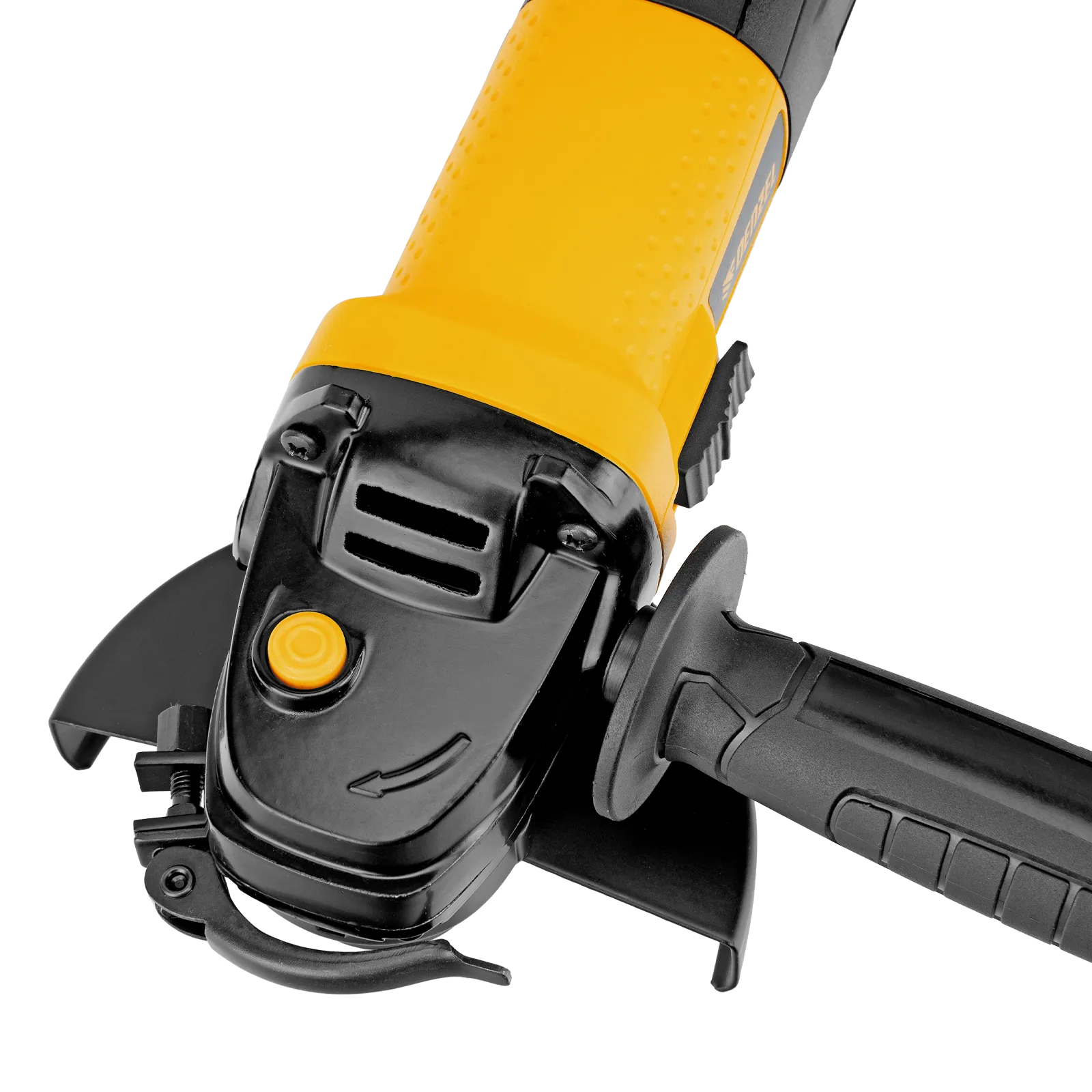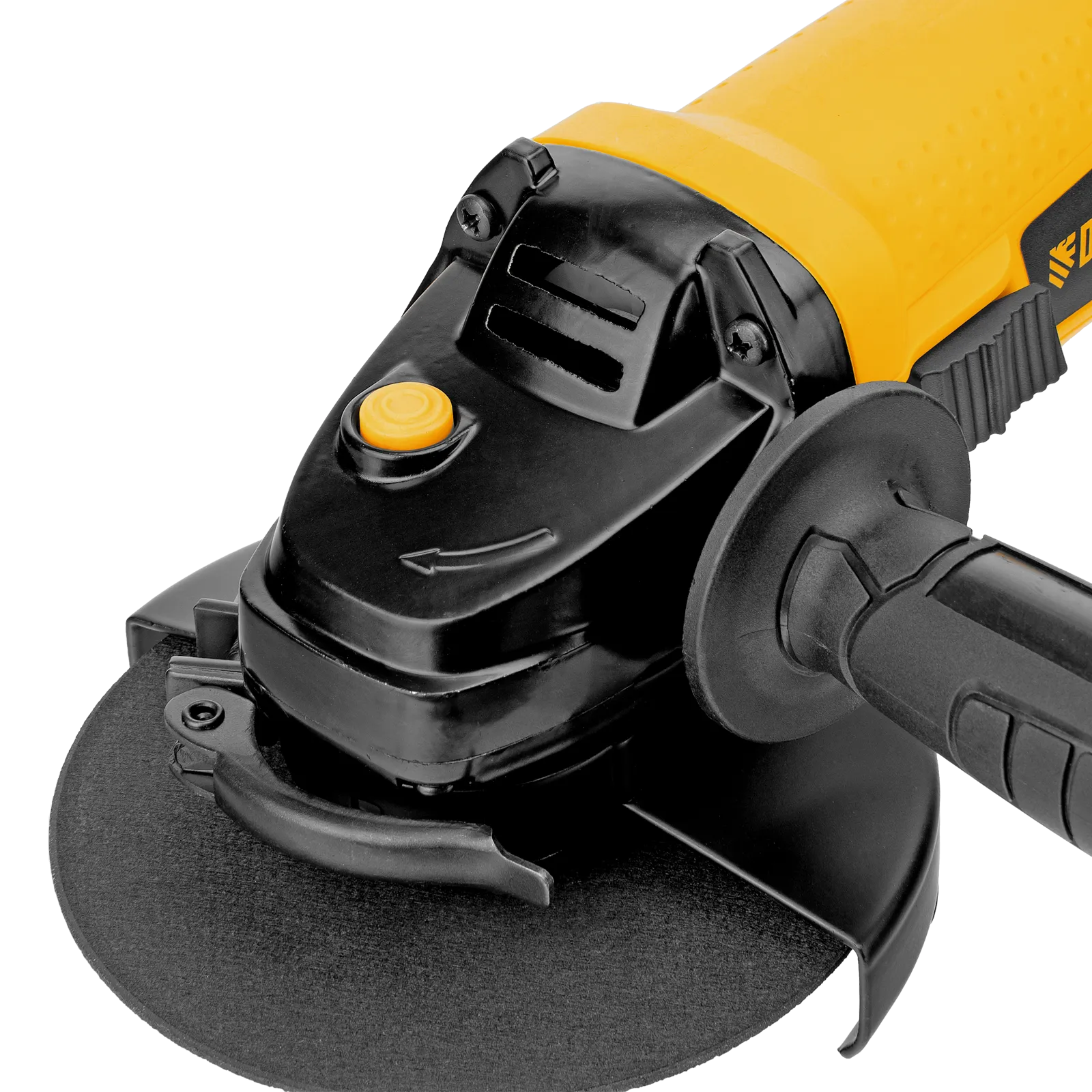 - Легкое обслуживание — конструкцией предусмотрен быстрый доступ к щеточному узлу и бесключевая регулировка кожуха, в комплект поставки включены запасные угольные щетки.