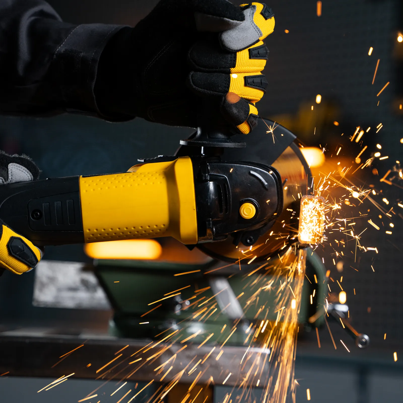 - Безопасность — защитный кожух предотвращает вылет искр и осколков на пользователя и случайный контакт с вращающейся оснасткой.
