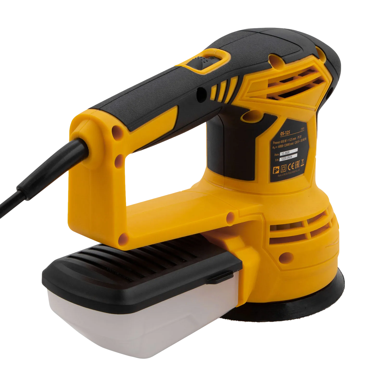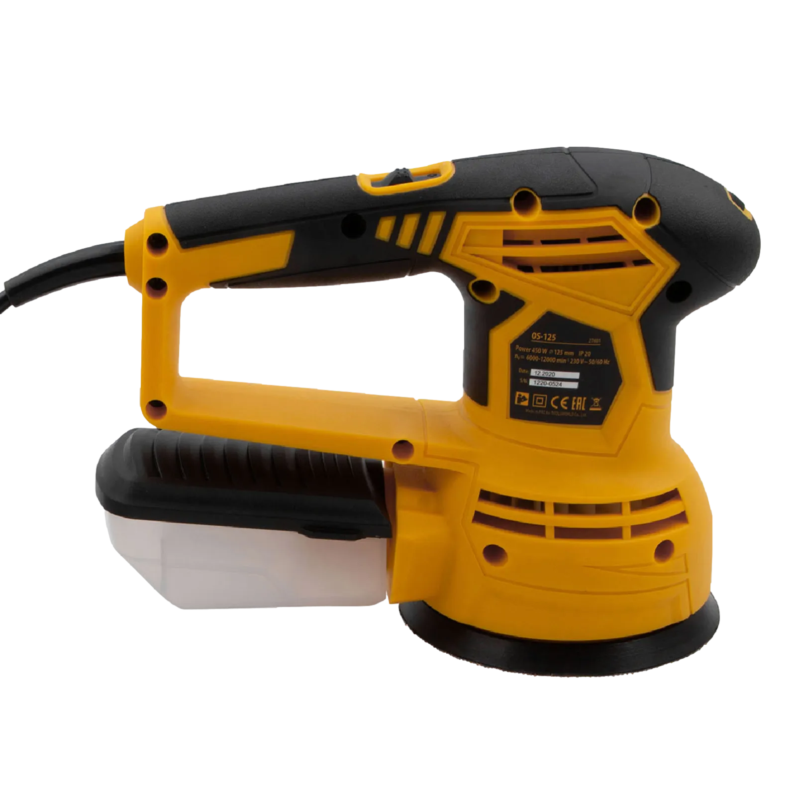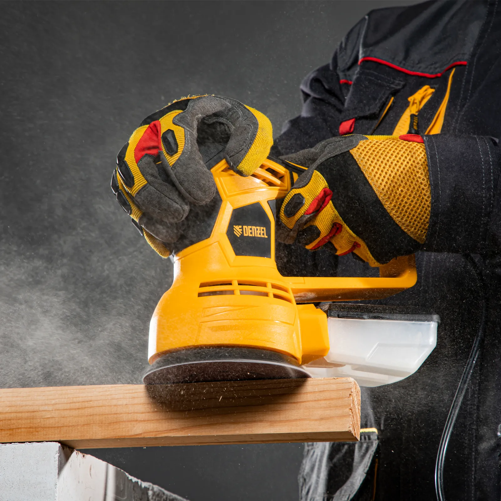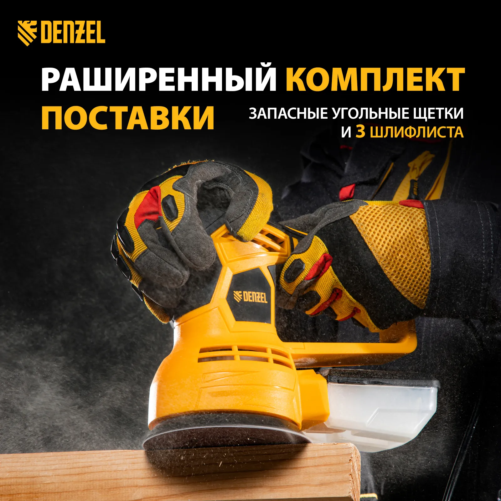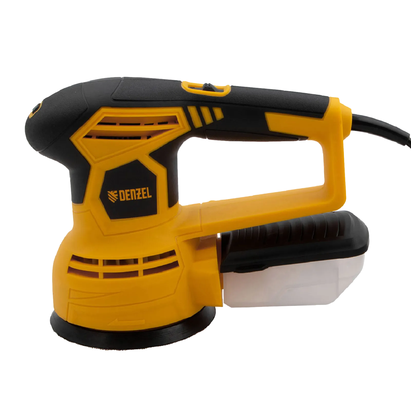 - Универсальный пылесборник — контейнер подходит для всех моделей шлифовальных машин Denzel.