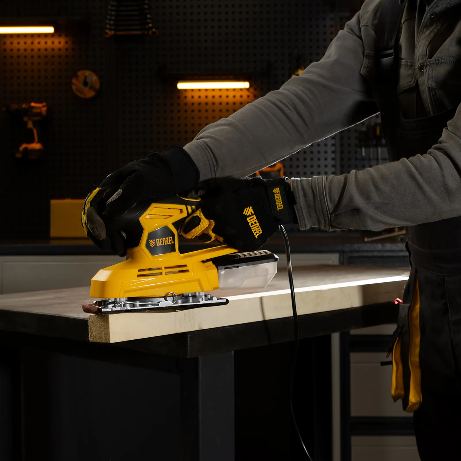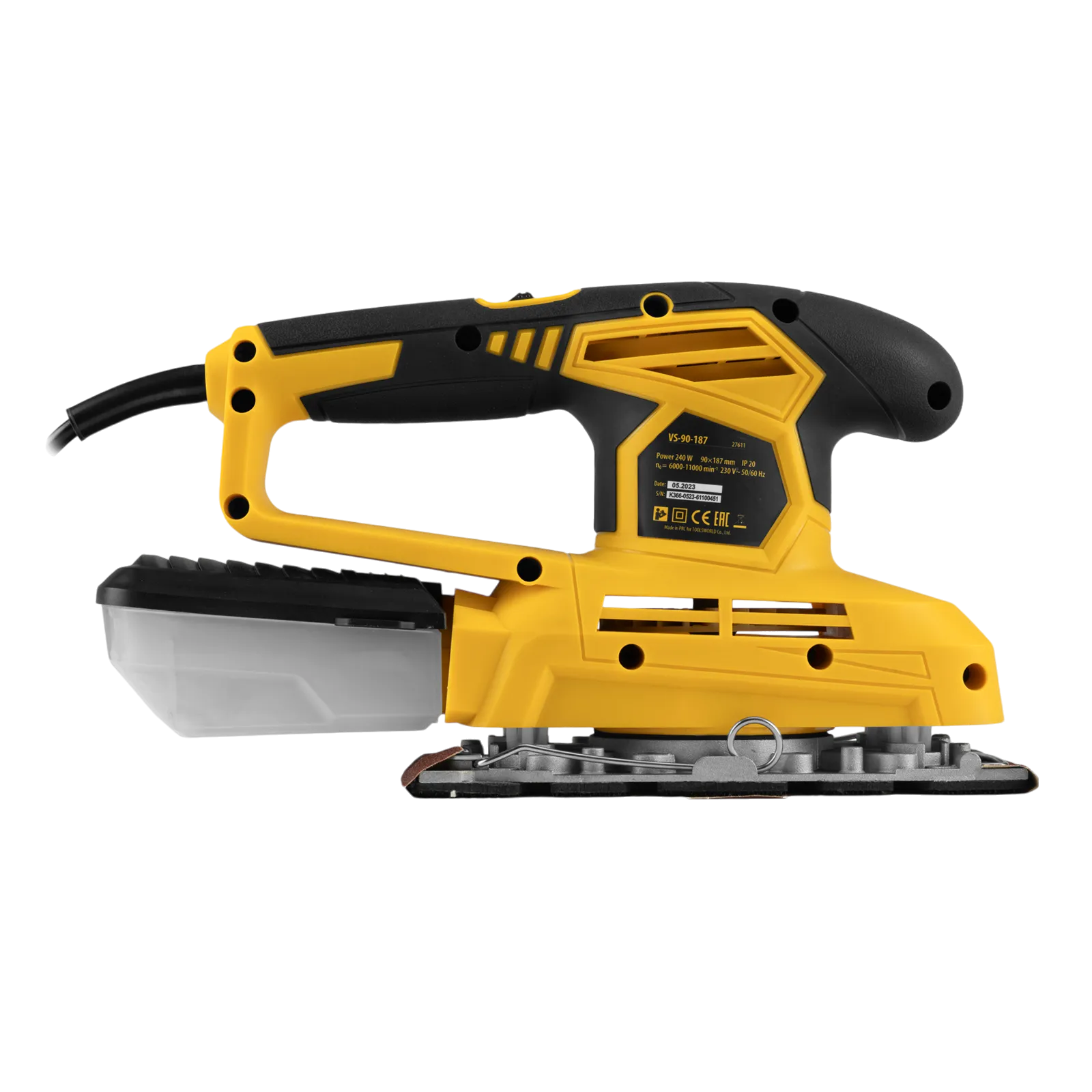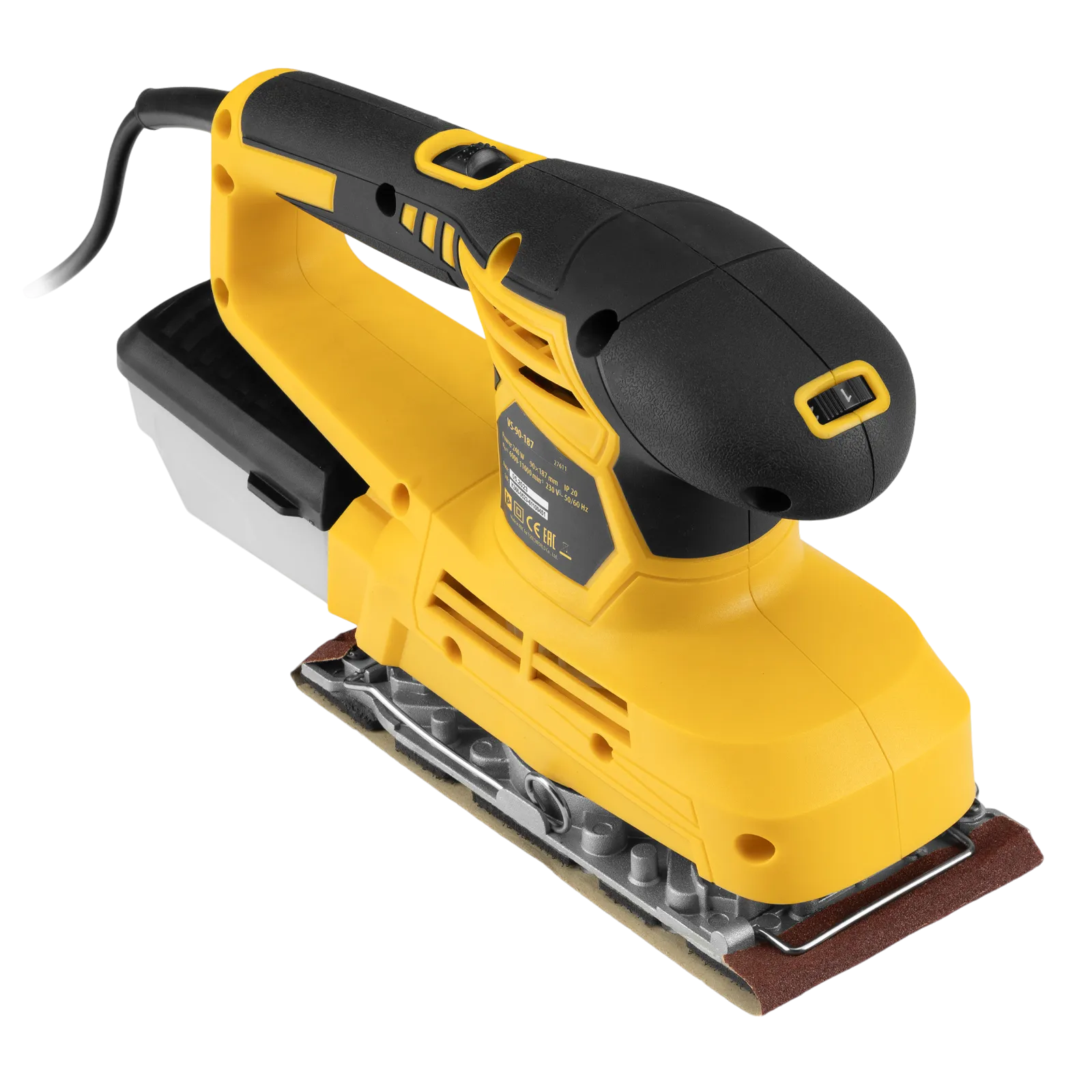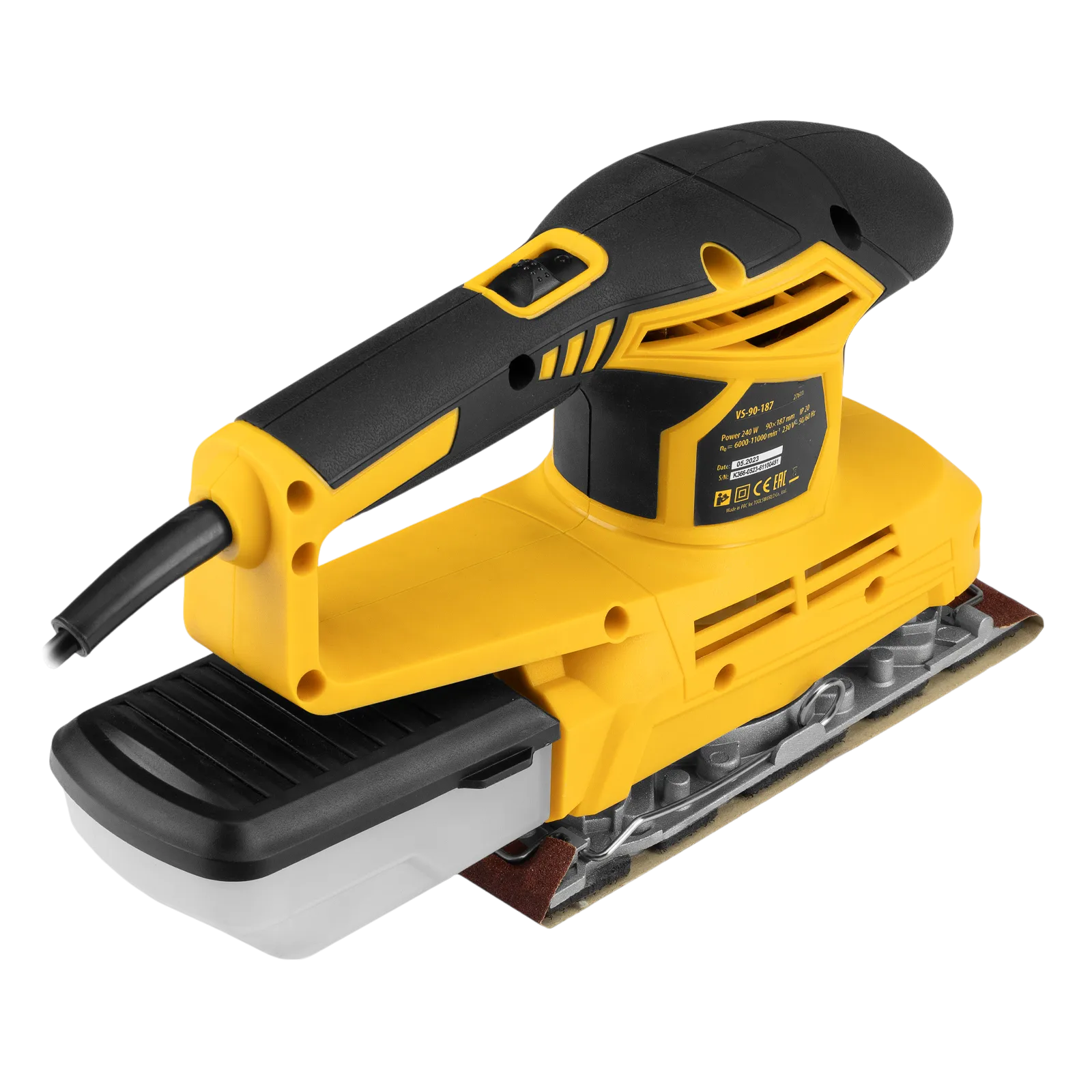 Вибрационная плоскошлифовальная машина Denzel VS-90-187 мощностью 240 Вт, с частотой колебаний подошвы 6000-11000 об/мин, подходит для сухого шлифования, зачистки и полировки поверхностей. Регулировка частоты колебаний подошвы 6000-11000 об/мин позволяет выбрать оптимальный режим работы. Размер рабочей поверхности составляет 90 х 187 мм, ход платформы — 1,6 мм, благодаря чему машина эффективно справляется с обработкой больших поверхностей.