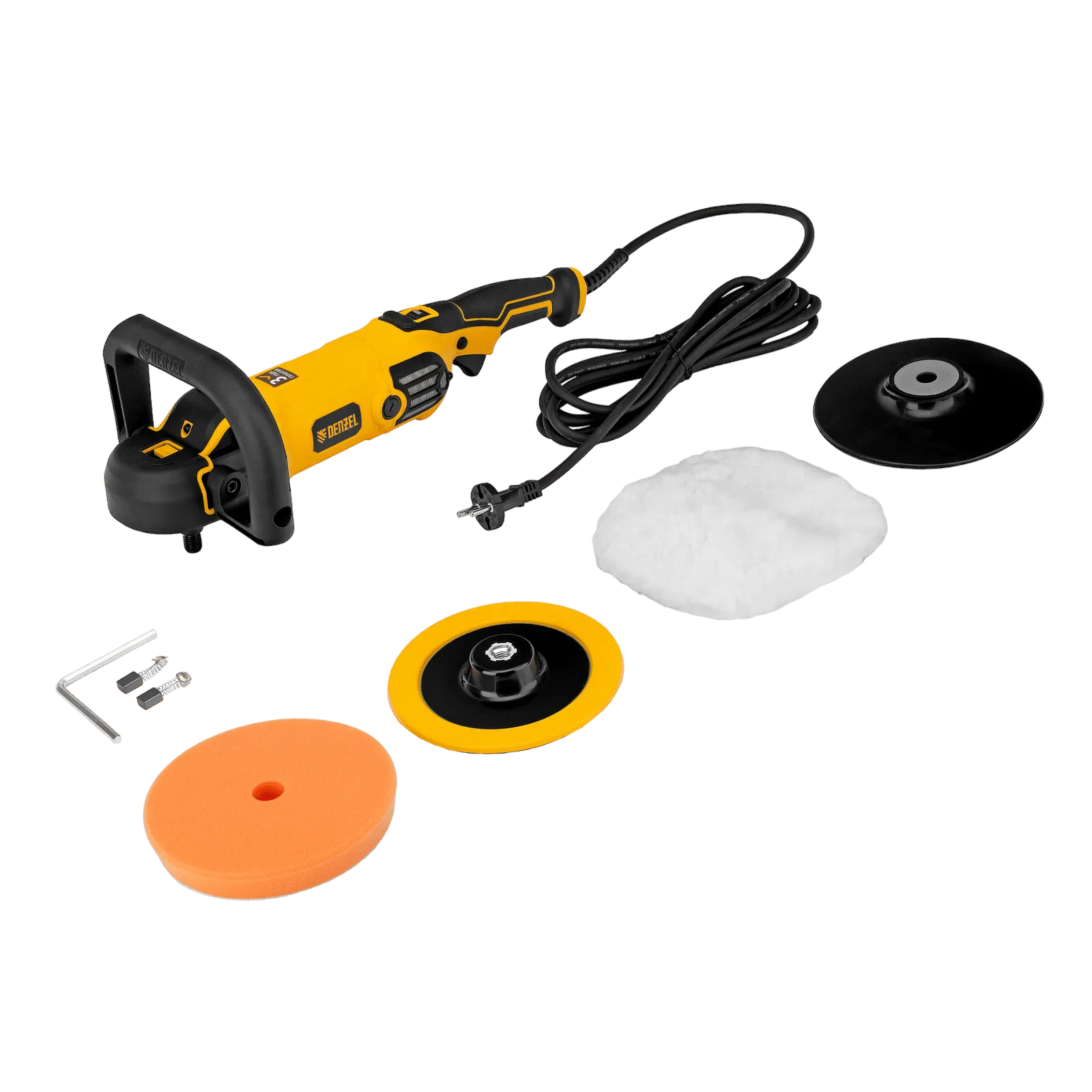 Полировальная машина Denzel CP-180 27701 мощностью 1400 Вт обеспечивает частоту вращения шпинделя 0-3000 об/мин и совместима с оснасткой диаметром 180 мм. Используется для снятия старого лакокрасочного покрытия, подготовки поверхности к покраске и финишной полировки лакированных, деревянных и других поверхностей, придает им гладкость и блеск. Благодаря 7-позиционной регулировке оборотов можно выбрать оптимальный режим для обработки поверхностей из различных материалов. Машина пригодится в мастерской и на СТО.