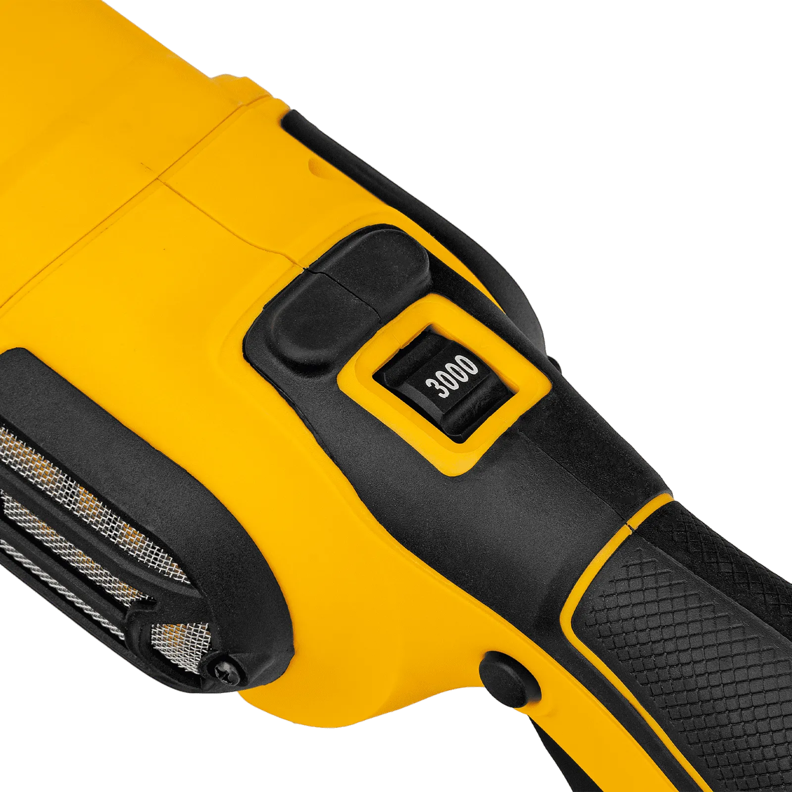- Точность и эффективность — электронная регулировка частоты вращения в диапазоне 0-3000 об/мин позволяет точно подобрать нужный режим работы, ориентируясь на тип обрабатываемой поверхности.