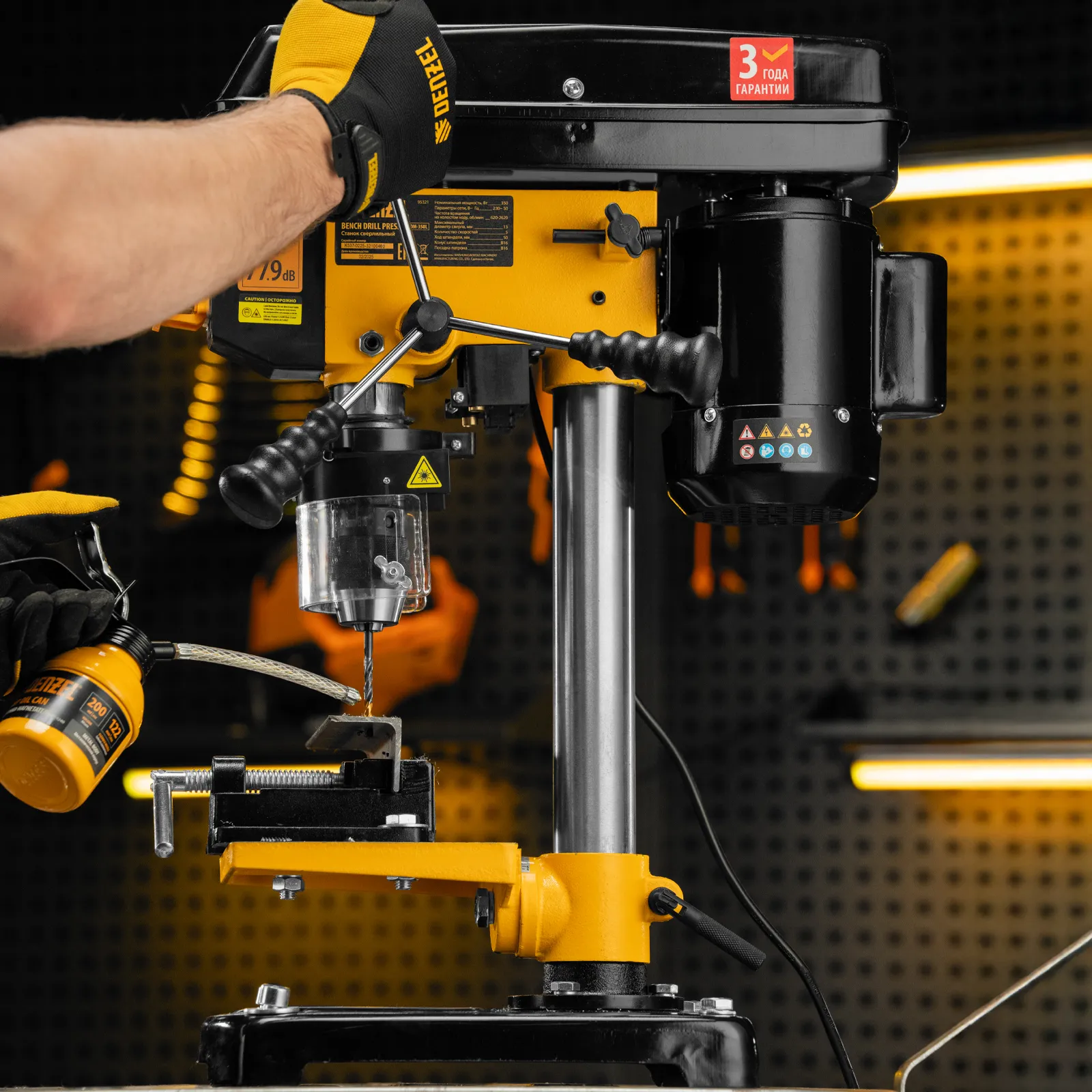 Настольный сверлильный станок Denzel DDM-350L 95321 мощностью 350 Вт поддерживает 5 уровней частоты вращения шпинделя, оснащен лазером и совместим с оснасткой диаметром 1-13 мм. Предназначен для сверления отверстий и шлифования деталей. Ременная передача позволяет успешно решать различные задачи. Повышенная частота вращения шпинделя позволяет эффективно обрабатывать плотные материалы и составляет 620-2620 об/мин, можно установить оптимальную в соответствии с поставленной задачей (предусмотрено 5 уровней). Надежный асинхронный двигатель обеспечивает длительную стабильную работу даже при интенсивном использовании. Станок пригодится в мастерской и гараже.