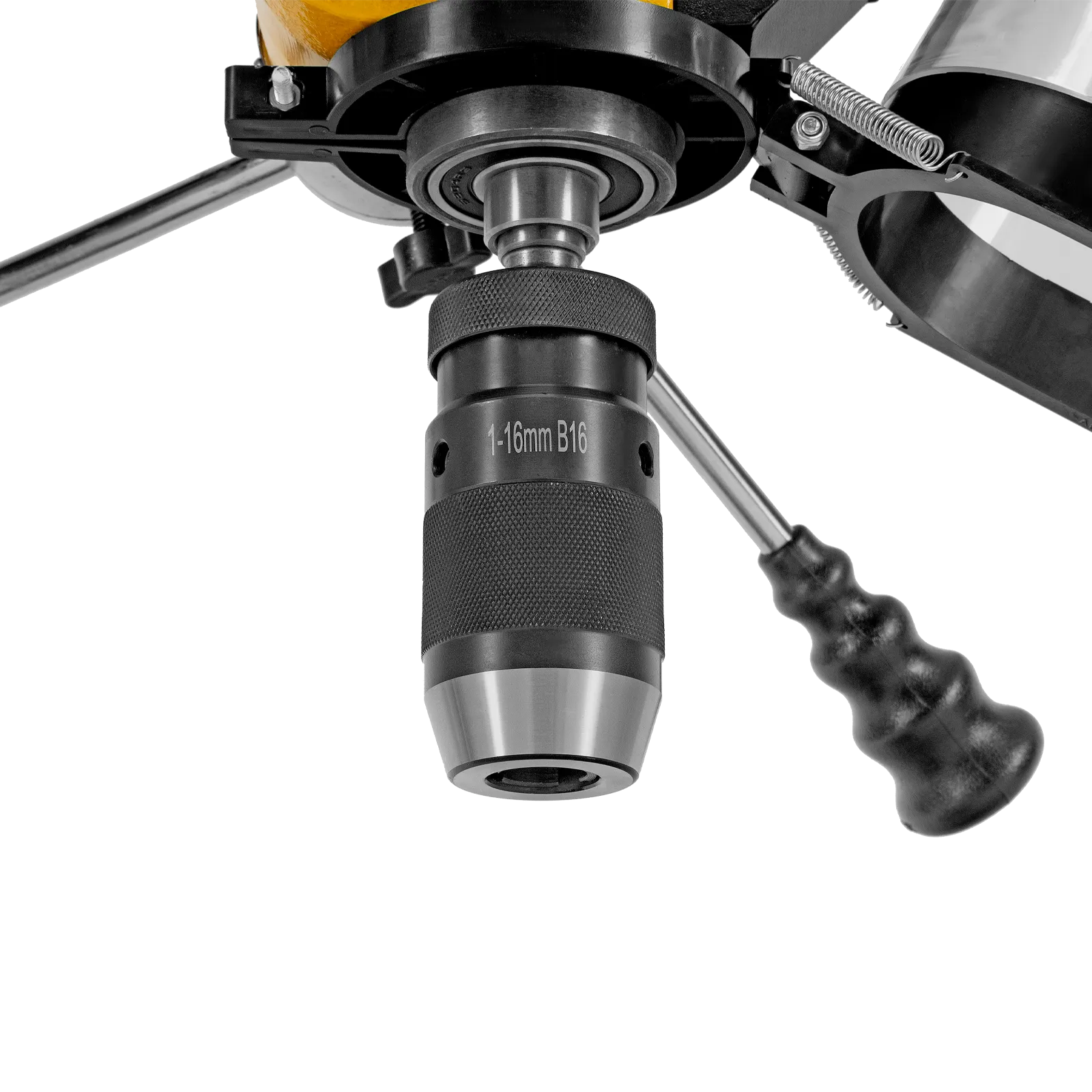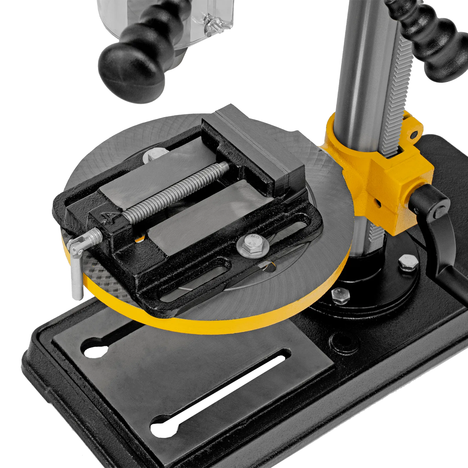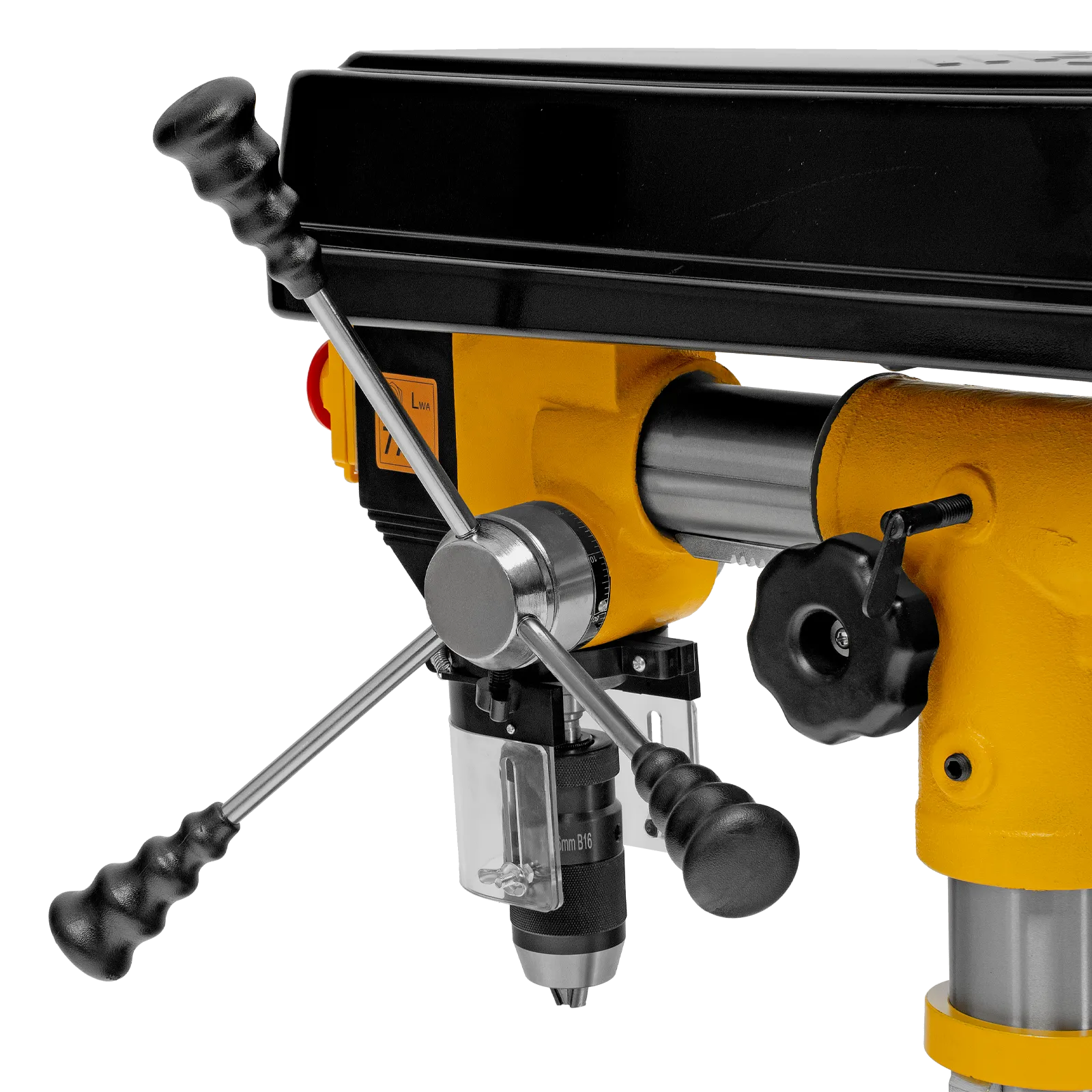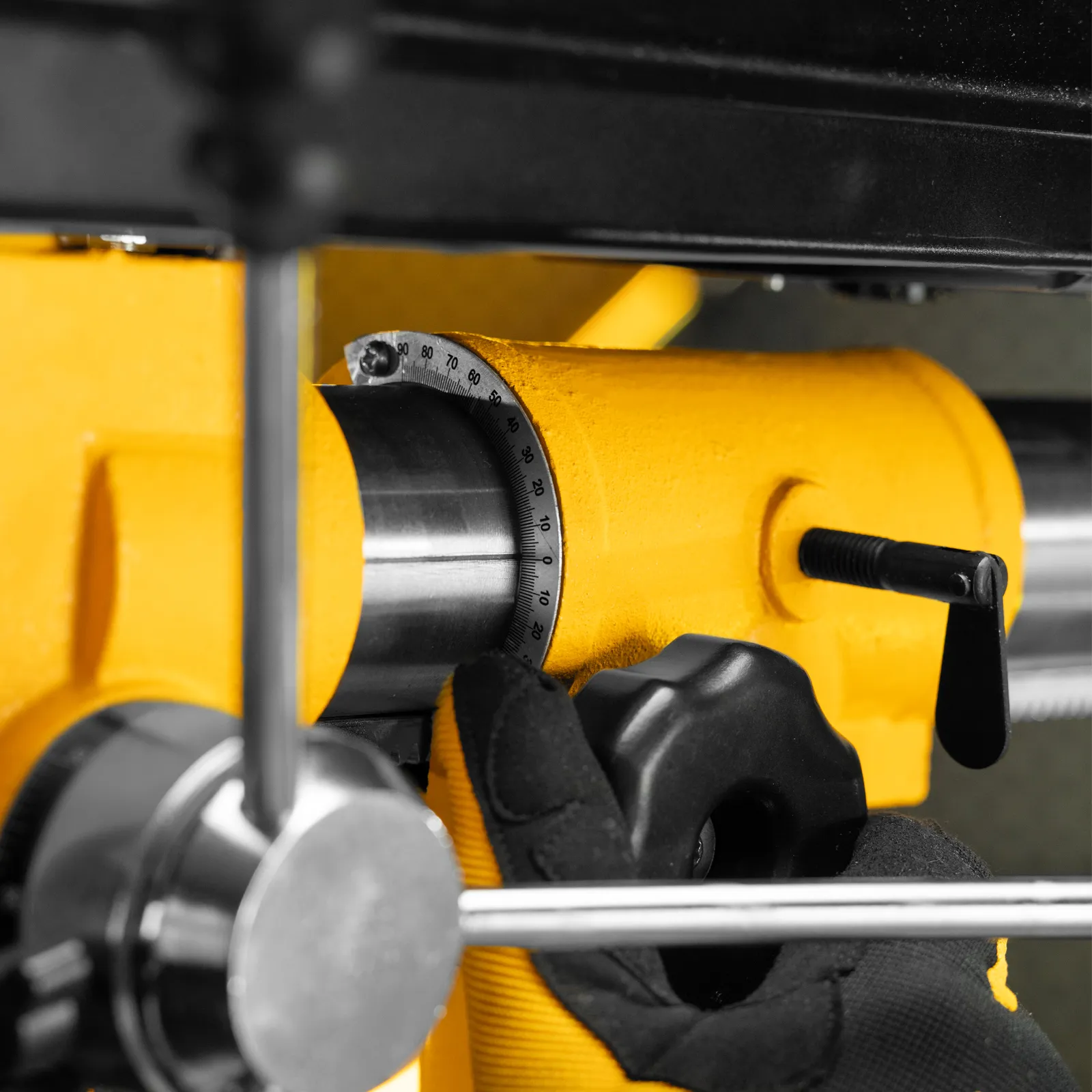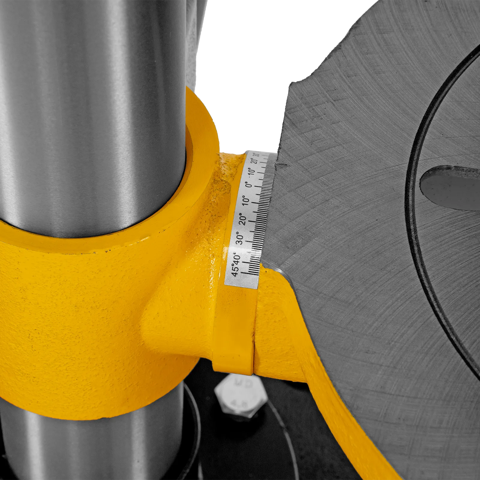 - Расширенные возможности регулировки — при необходимости можно изменить положение сверлильной головки и угол ее наклона в диапазоне от -45 до +45°.