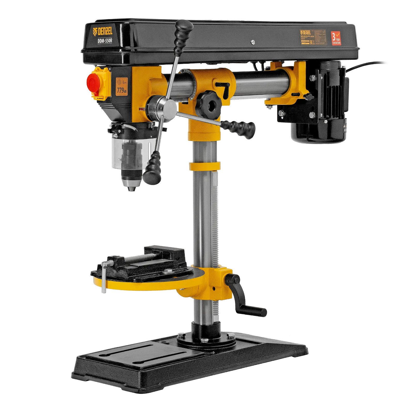 Настольный сверлильный радиальный станок Denzel DDM-550R 95323 мощностью 550 Вт поддерживает 12 уровней частоты вращения шпинделя, совместим с оснасткой диаметром 1-16 мм. Предназначен для сверления отверстий. Ременная передача позволяет успешно решать различные задачи. Повышенная частота вращения шпинделя позволяет эффективно обрабатывать плотные материалы и составляет 300-2550 об/мин, можно установить оптимальную в соответствии с поставленной задачей (предусмотрено 12 уровней). Надежный асинхронный двигатель обеспечивает длительную стабильную работу даже при интенсивном использовании. Станок пригодится в мастерской и гараже.