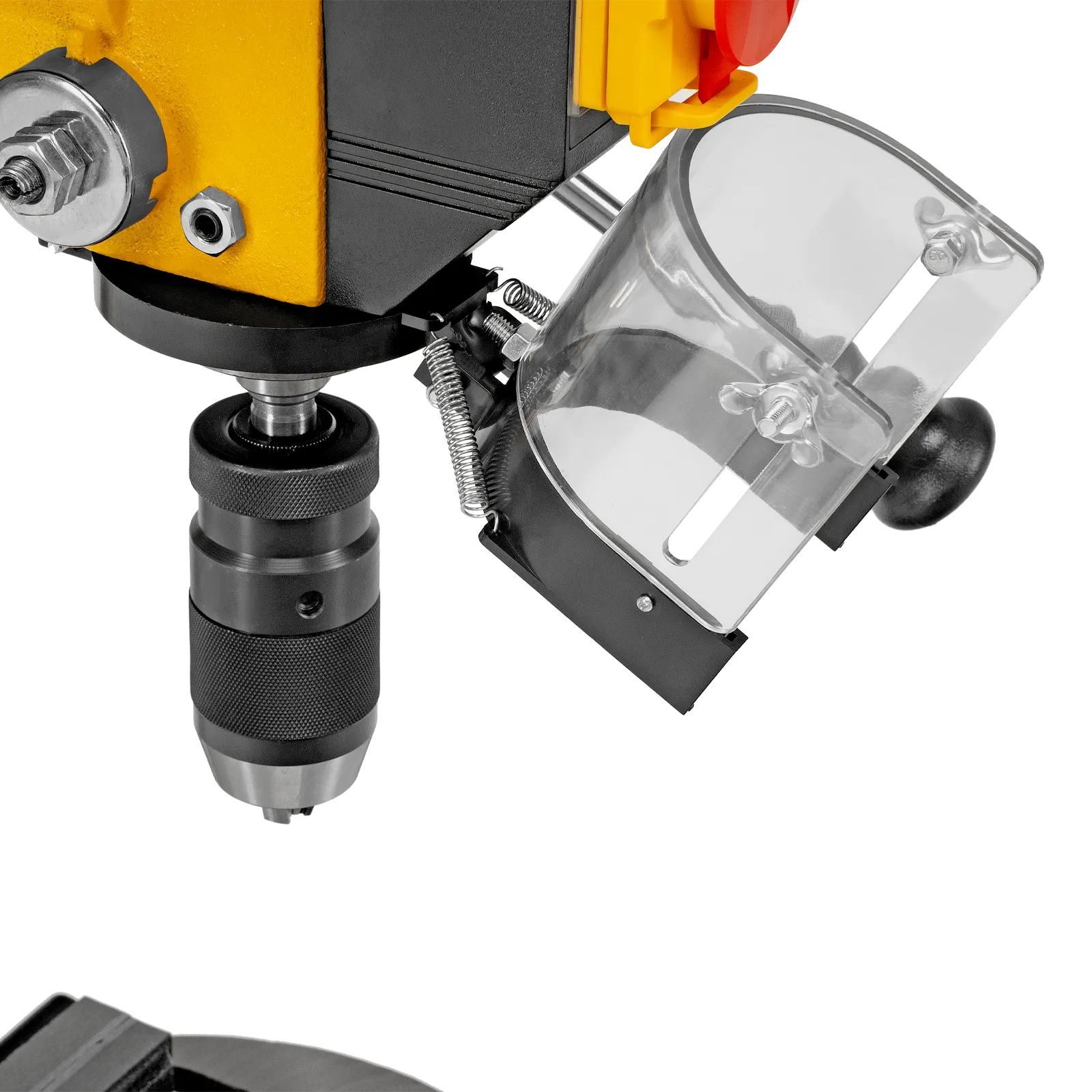 - Безопасность пользователя — прозрачный кожух защищает от вылетающей стружки во время сверления.