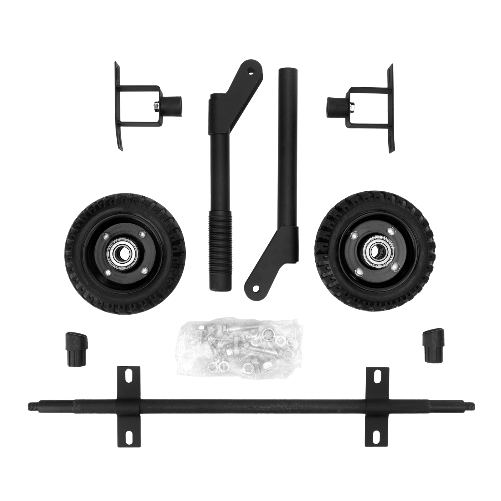 Транспортировочный комплект Denzel 94669, включающий 2 колеса и 2 ручки, совместим с генераторными установками Denzel PS-25, PS-28, PS-33, PS-33E (артикулы 946814, 946824, 946834, 94537). Предназначен для перемещения генератора по рабочей площадке.