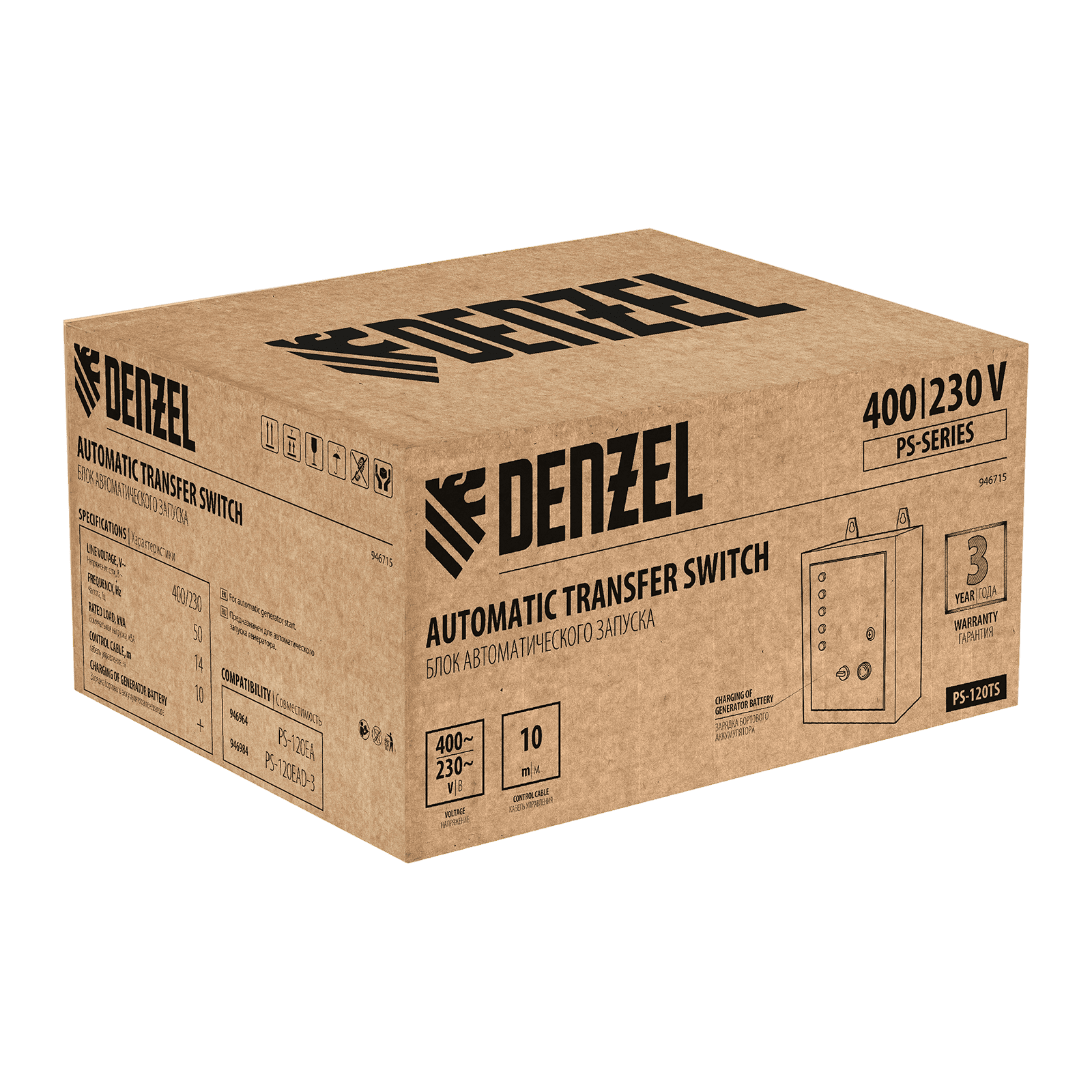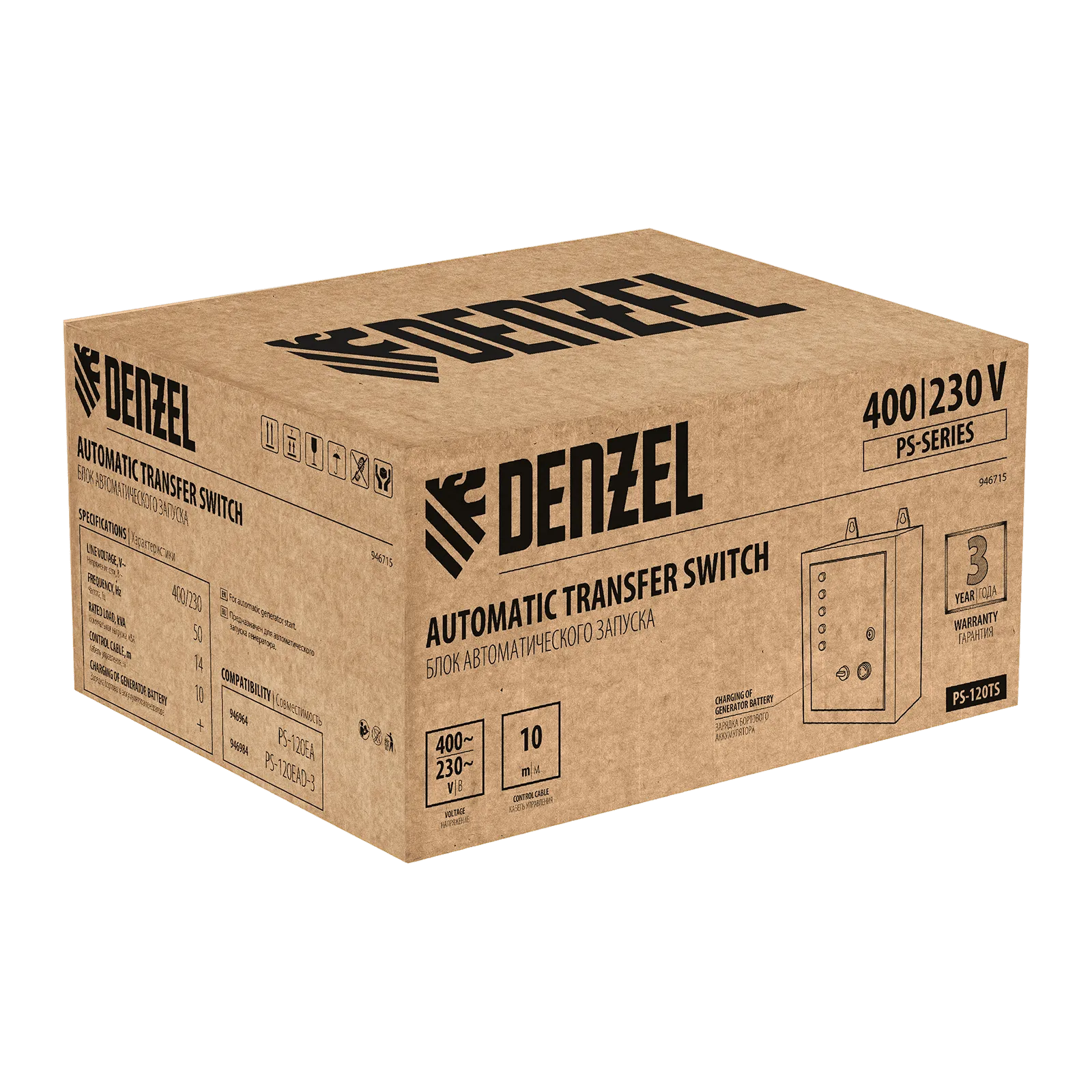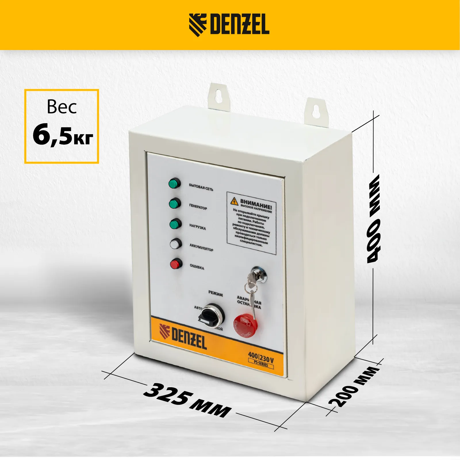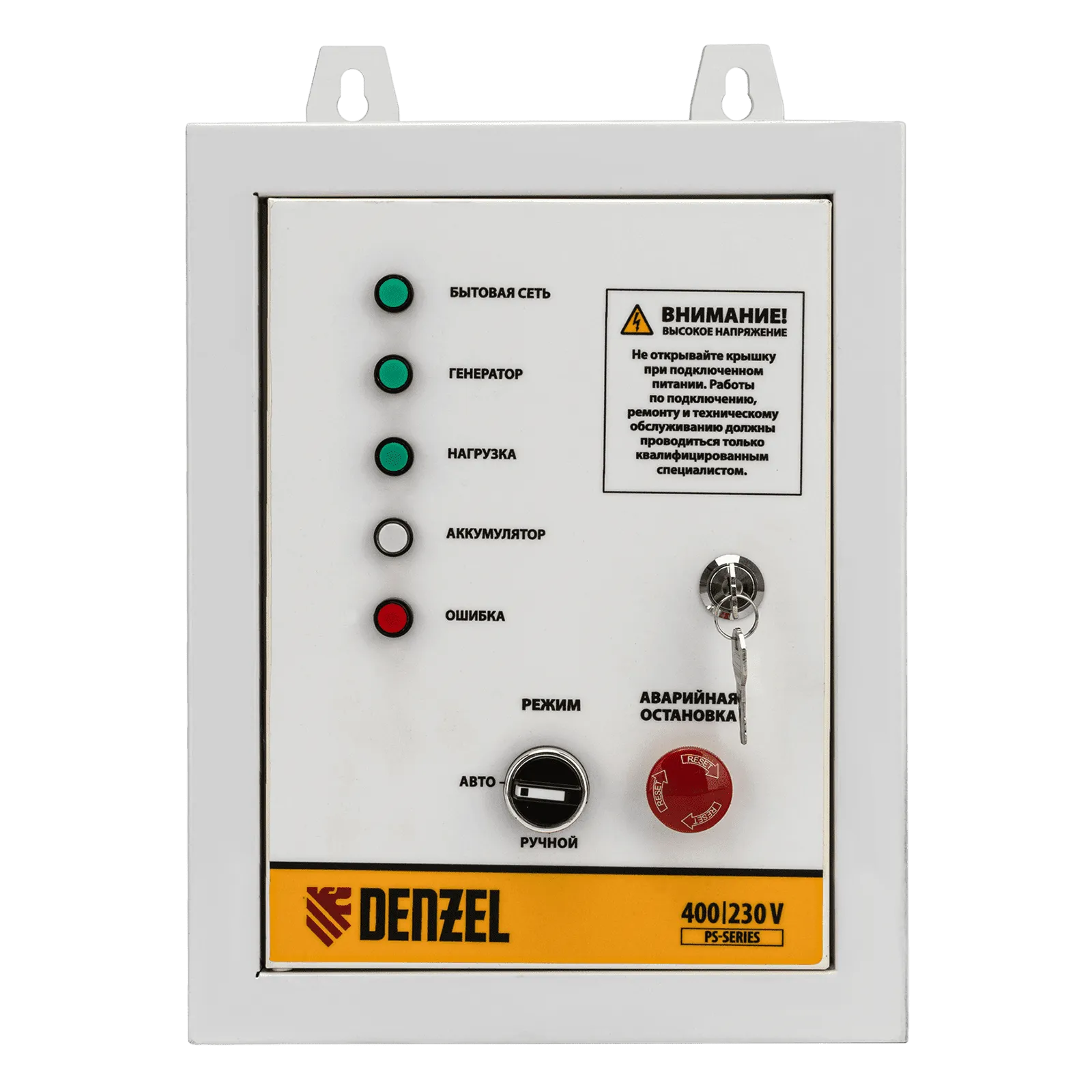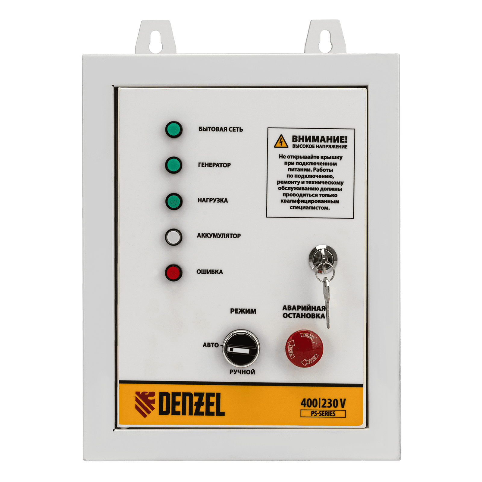Блок автоматического запуска Denzel PS-120TS 946715 используется совместно с генератором PS-120EA или PS-120EAD-3. Позволяет создать систему автономного электроснабжения. Блок управления переключает питание на генератор при падении напряжения в стационарной сети, а при восстановлении электроснабжения останавливает генератор и переключает питание объекта обратно на сеть. Устройство рассчитано на нагрузку 14 кВА и будет полезно в загородном доме и на строительной площадке.