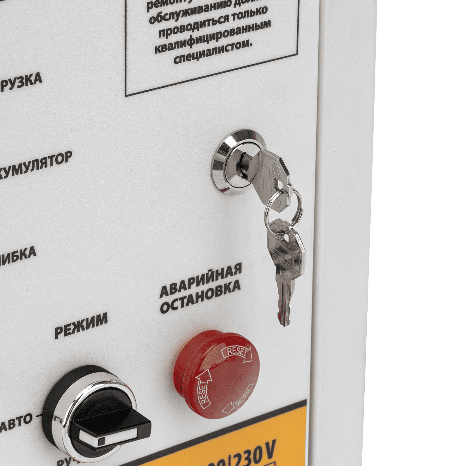 - Удобный контроль работы — на лицевой панели предусмотрены индикаторы напряжения сети и генератора, подключения нагрузки, а также зарядки аккумулятора и оповещения об ошибке.
