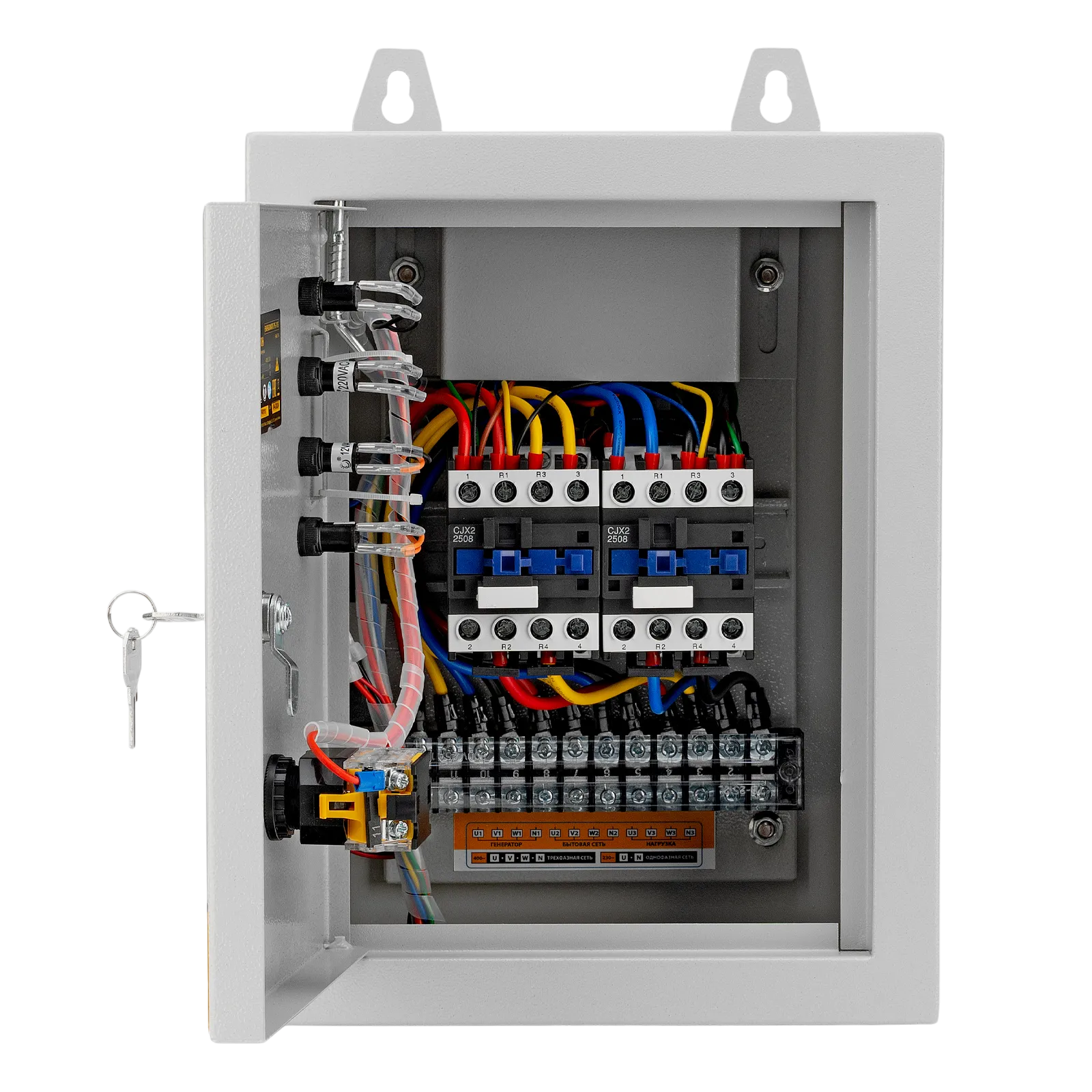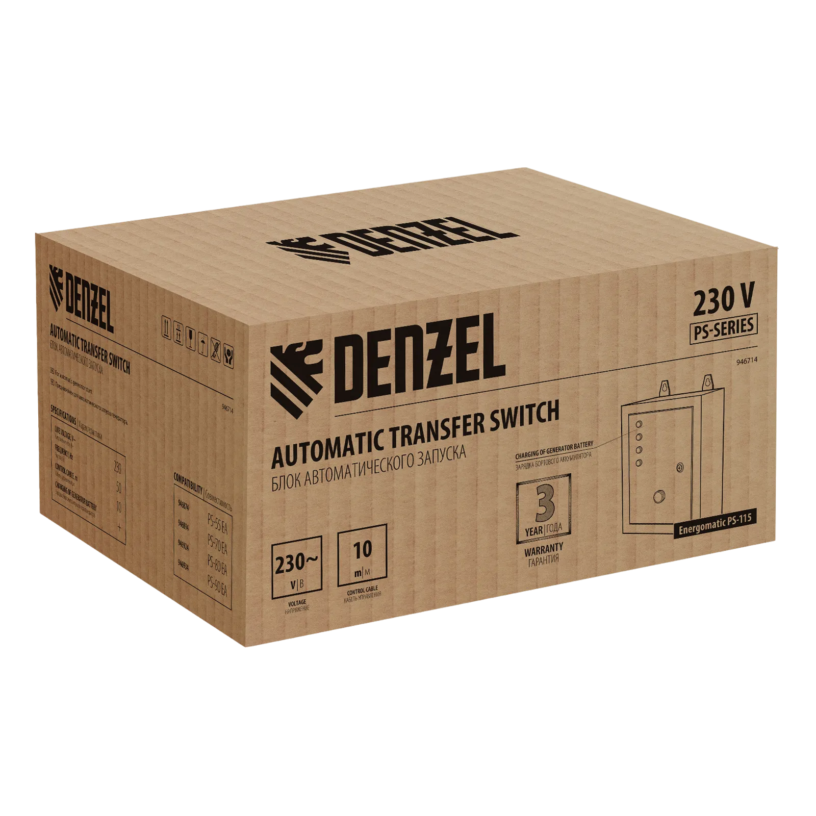 Блок автоматического запуска Denzel Energomatic PS 115 946714 включает генератор в случае прекращения подачи электроэнергии в частных домах, дачных коттеджах, на небольших предприятиях и строительных объектах. Как только напряжение бытовой сети стабилизируется, блок АВР отключается. Подходит к генераторным установкам Denzel серии PS: 55 EA (арт. 946874), 70 EA (946894), 80 EA (946924), 90 EA (946934), 95EA-PRO (946935) и 90ED-3 (946944). Максимальная мощность составляет 10 кВт.