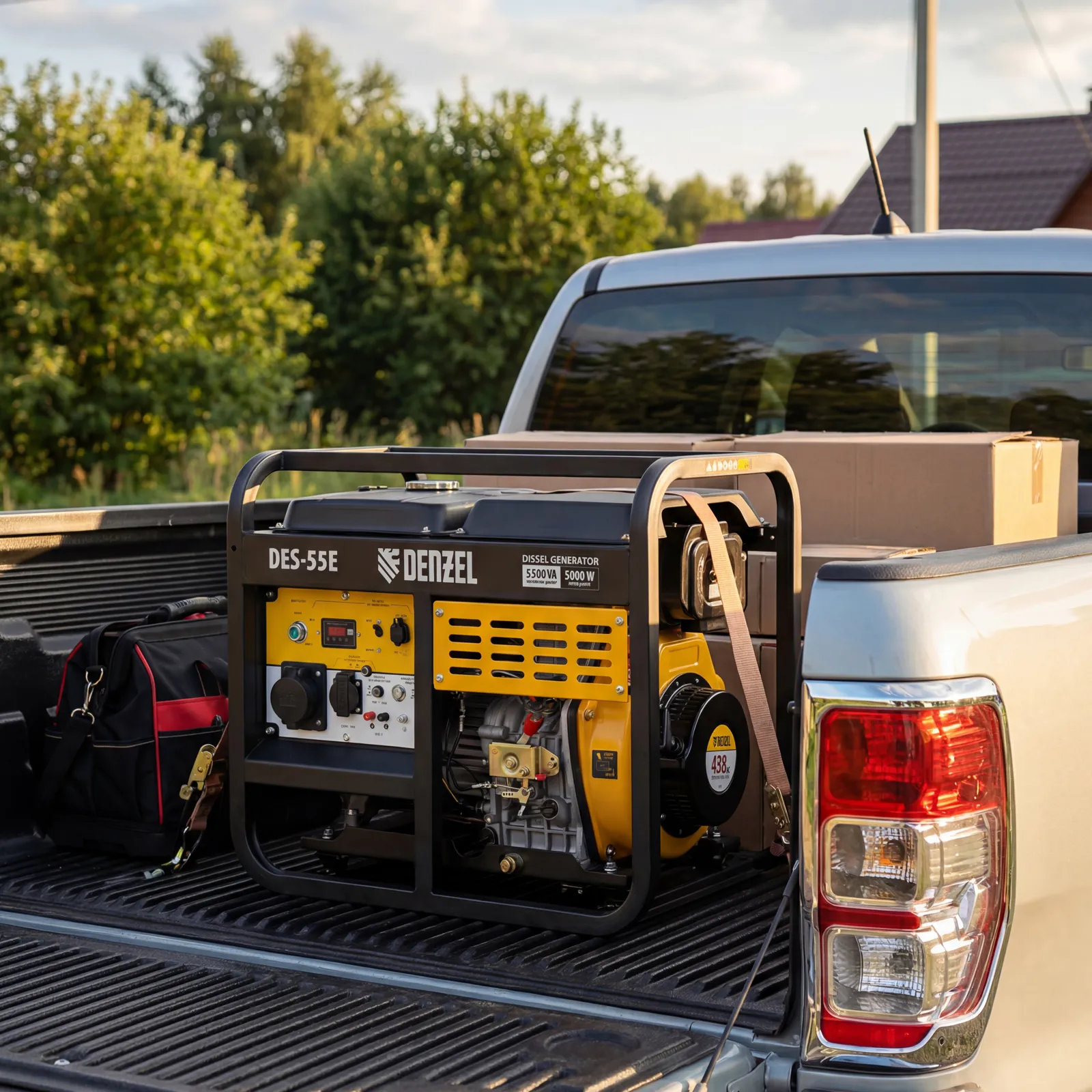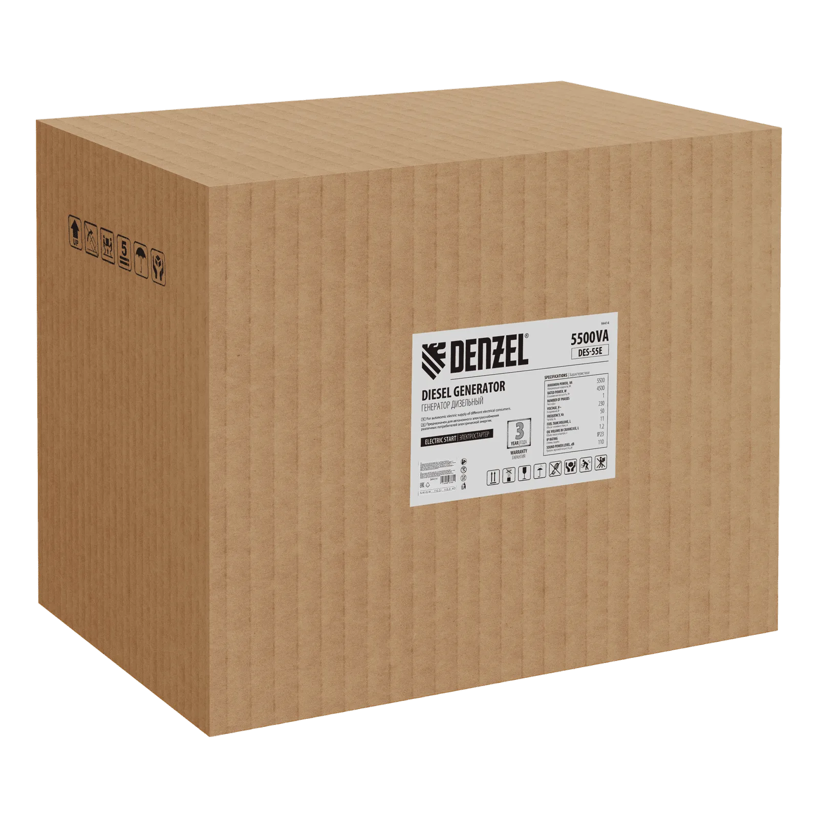 - Мобильность — к генератору можно приобрести транспортировочный комплект Denzel 94906 для перемещения по рабочей площадке.