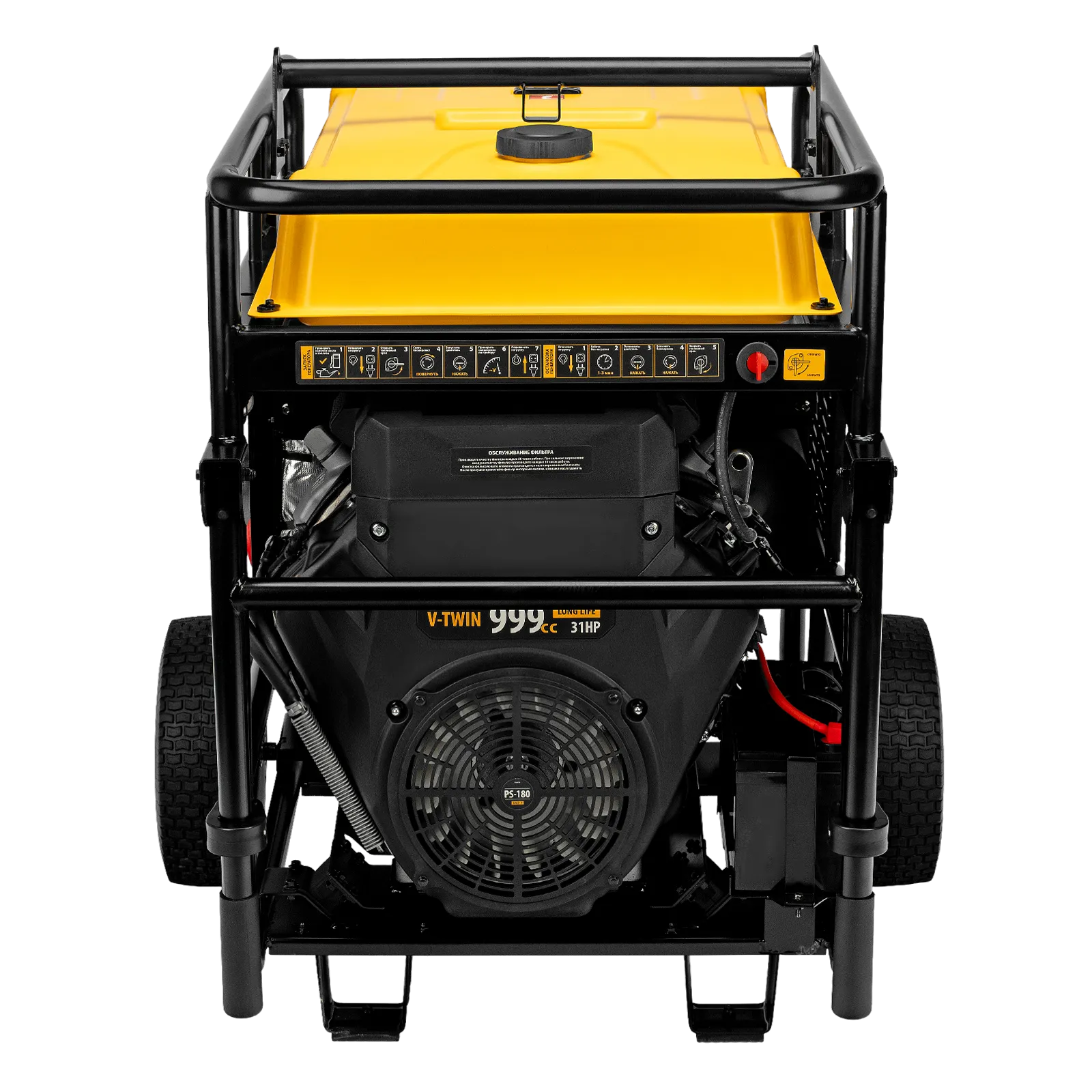 - Мобильность — колеса и ручки упрощают перемещение генератора по рабочей площадке.