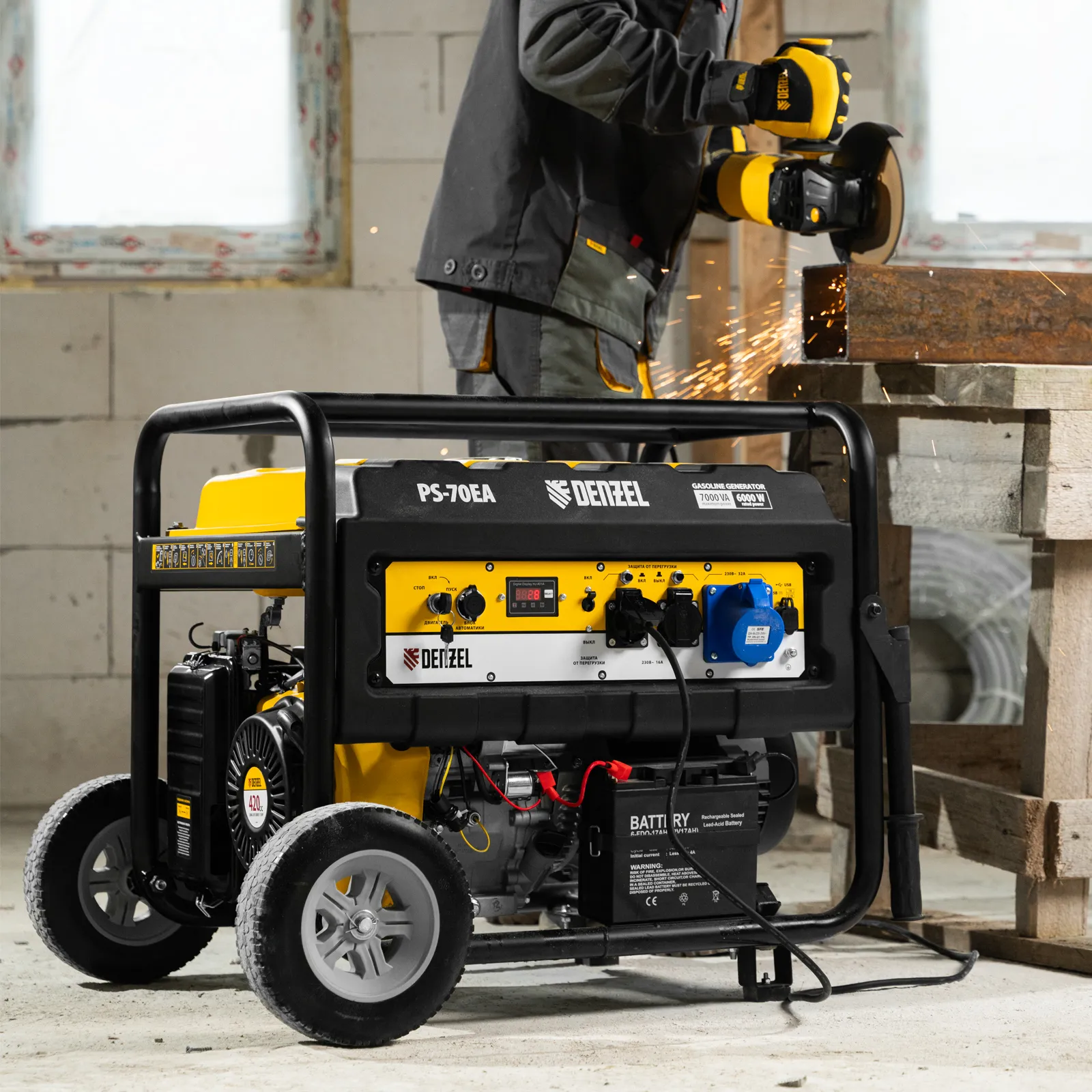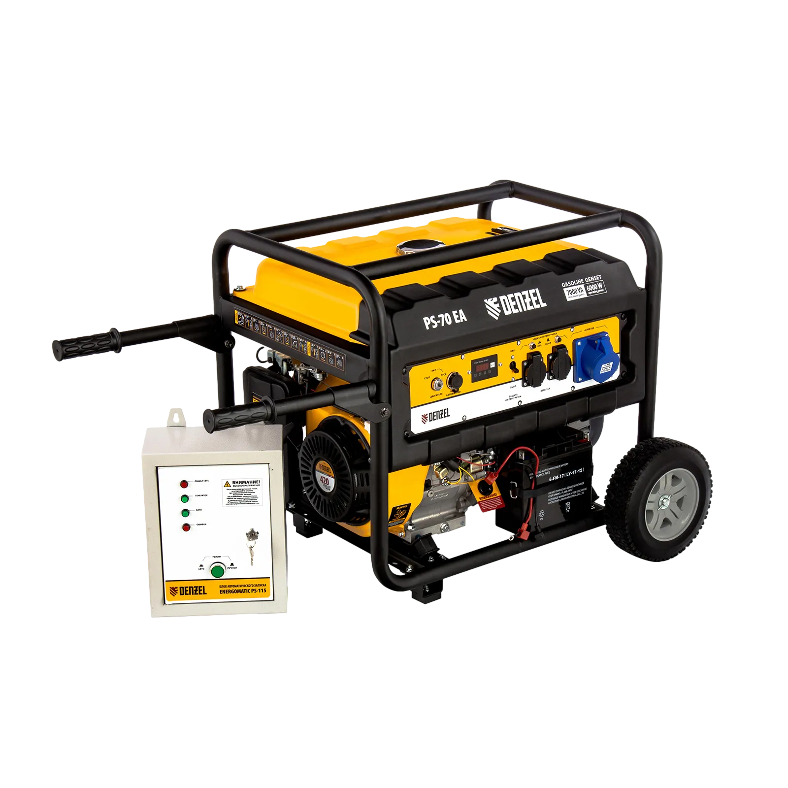 - Генератор поставляется в комплекте с аккумулятором для электрического старта.