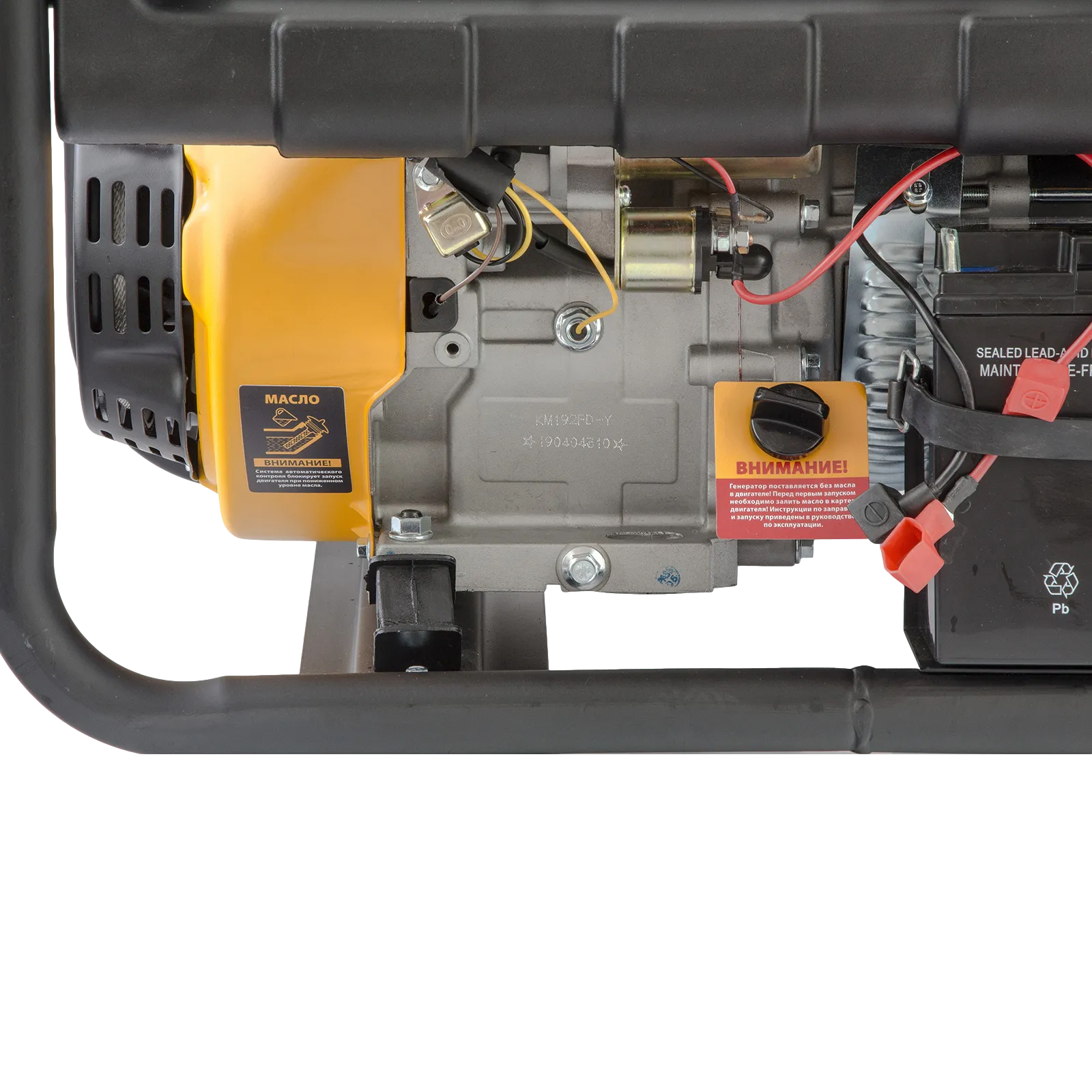 - Экономичный расход топлива — генератор способен работать при полной нагрузке до 6,9 часов без дозаправки.