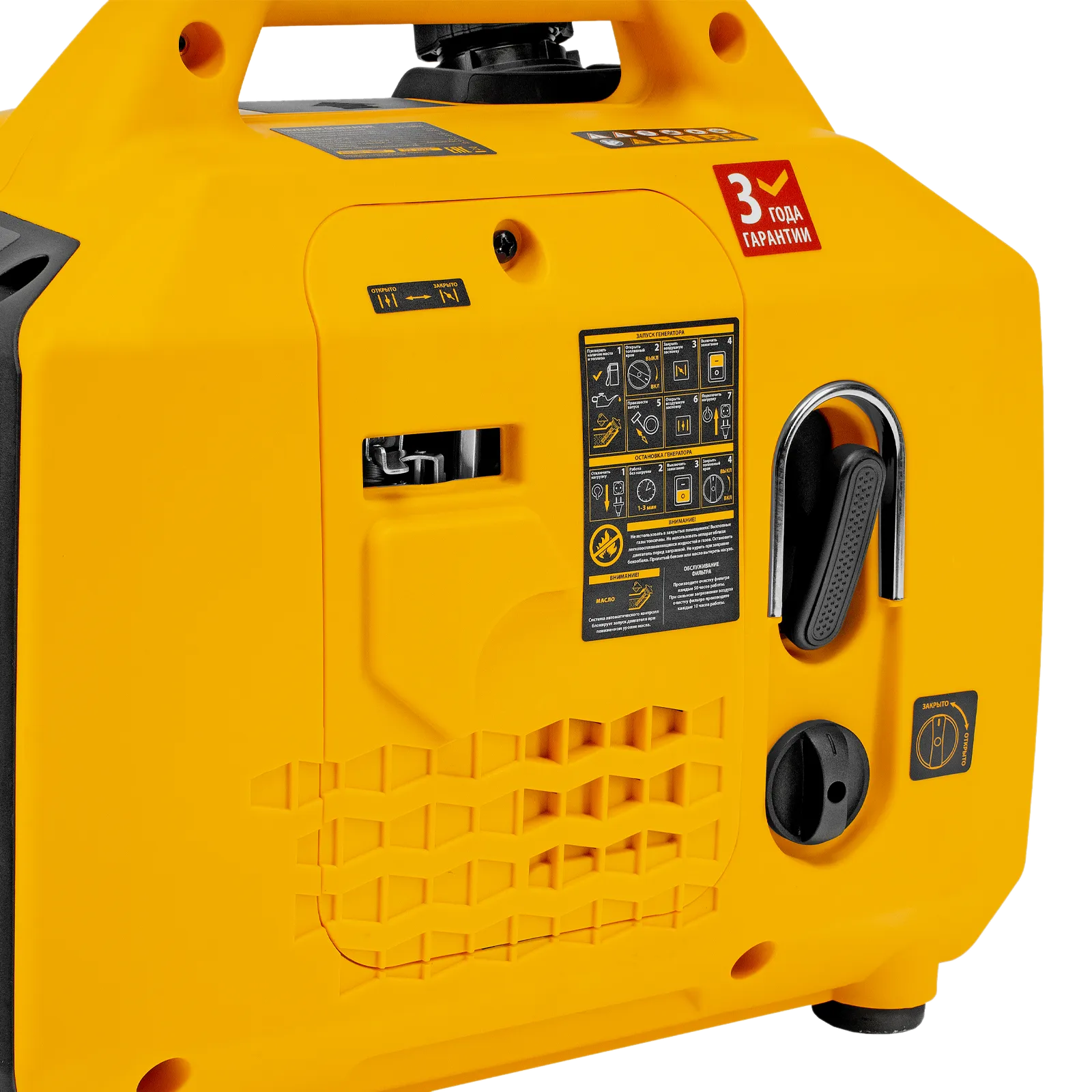 - Надежность — 4-тактный двигатель с медной обмоткой альтернатора обеспечивает стабильную и эффективную работу в течение всего срока эксплуатации.