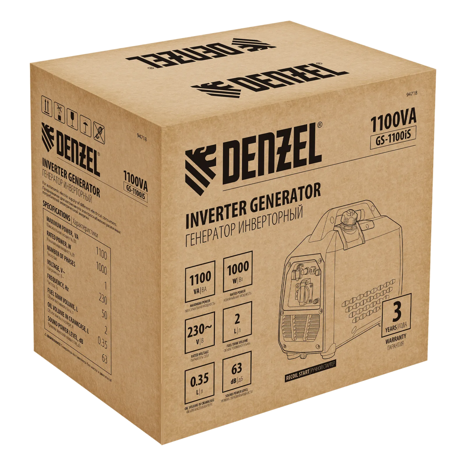 - Низкий уровень шума 63 дБ — работа генератора не доставляет дискомфорт.
