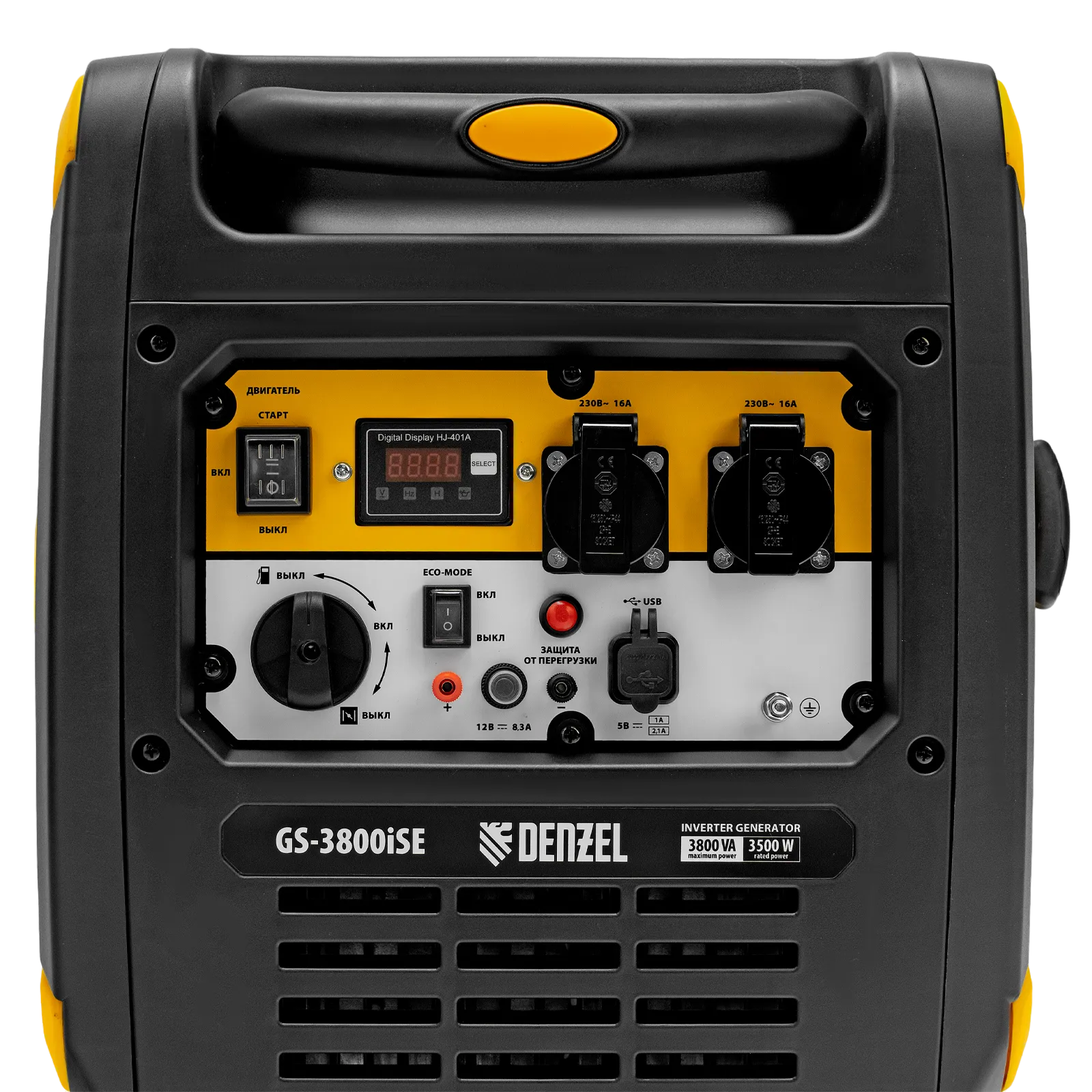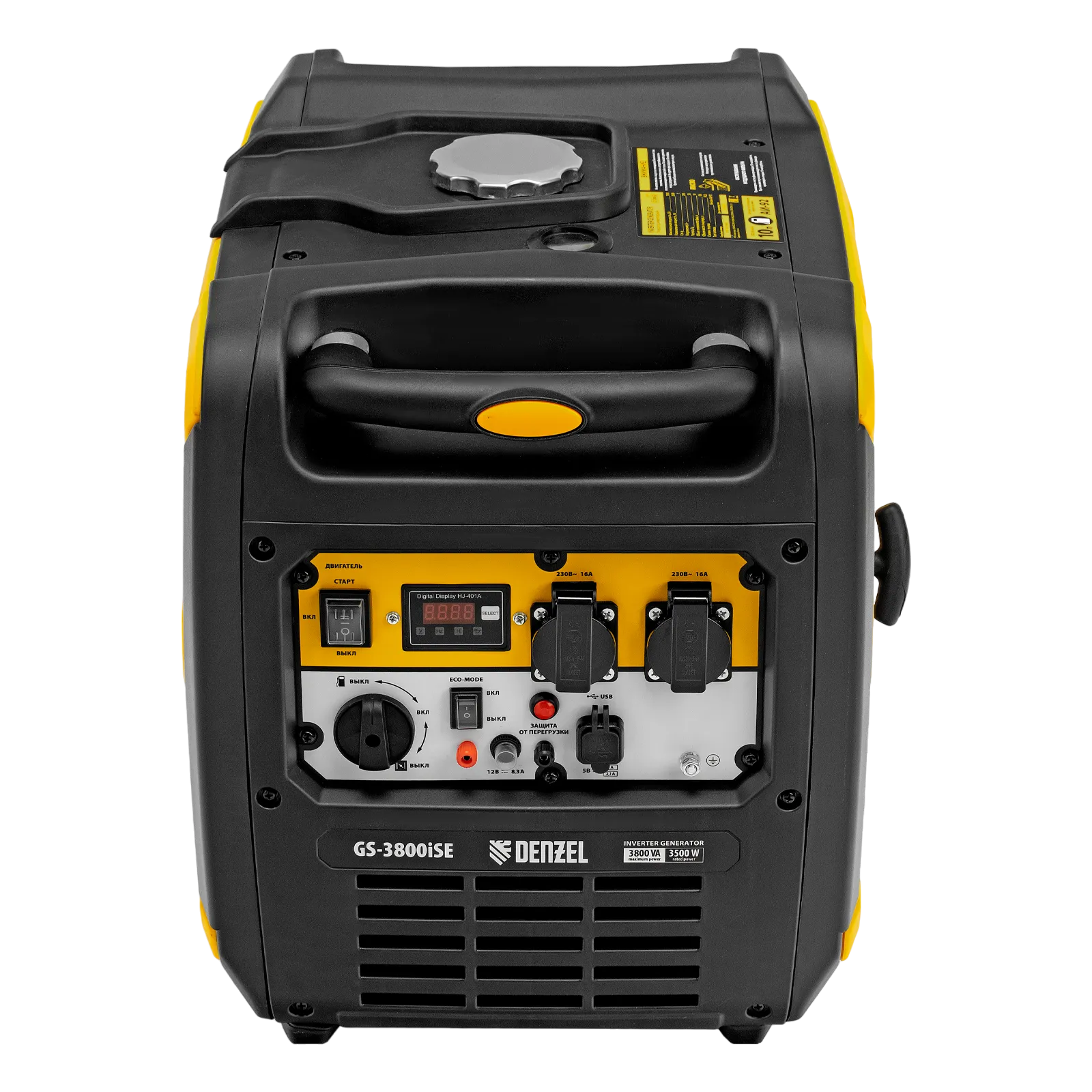 Генератор инверторный Denzel GS-3800iSE 94711 максимальной мощностью 3,8 кВт, в закрытом корпусе, с электростартером, поддерживает напряжение в сети 230 В и используется для обеспечения работоспособности бытовой техники, электроинструмента и осветительных приборов в условиях отсутствия бытовой сети. Для подключения потребителей предусмотрено две розетки 230 В / 16 А. Выход USB 5 В позволяет подключать мобильное устройство, например, смартфон или планшет, а клеммы постоянного тока 12 В служат для зарядки автомобильных аккумуляторов. Генератор незаменим в загородном доме.
