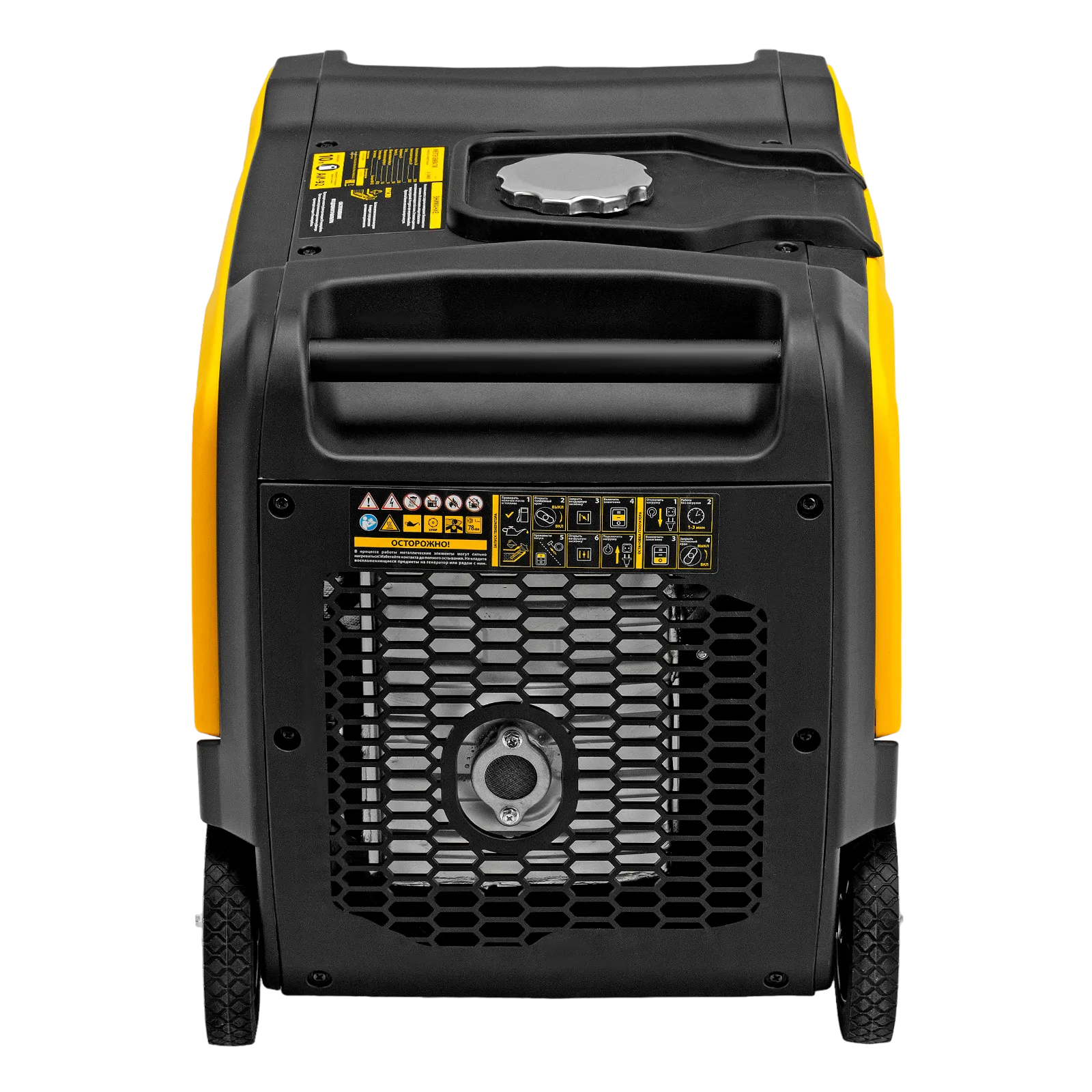 - Удобная транспортировка — колеса и телескопическая рукоятка облегчают перемещение генератора.