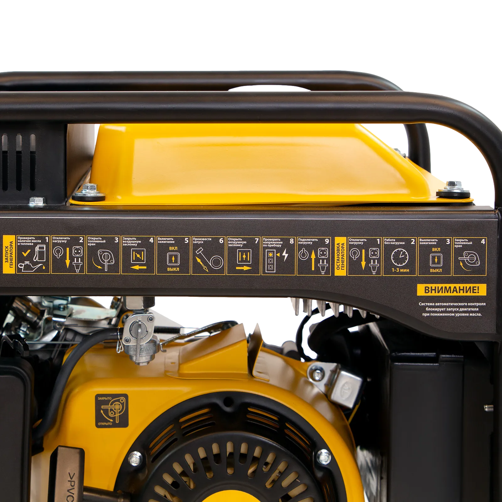 - Визуальный контроль — индикаторы на передней панели информируют о работе генератора, недостаточном уровне топлива и о перегрузке.