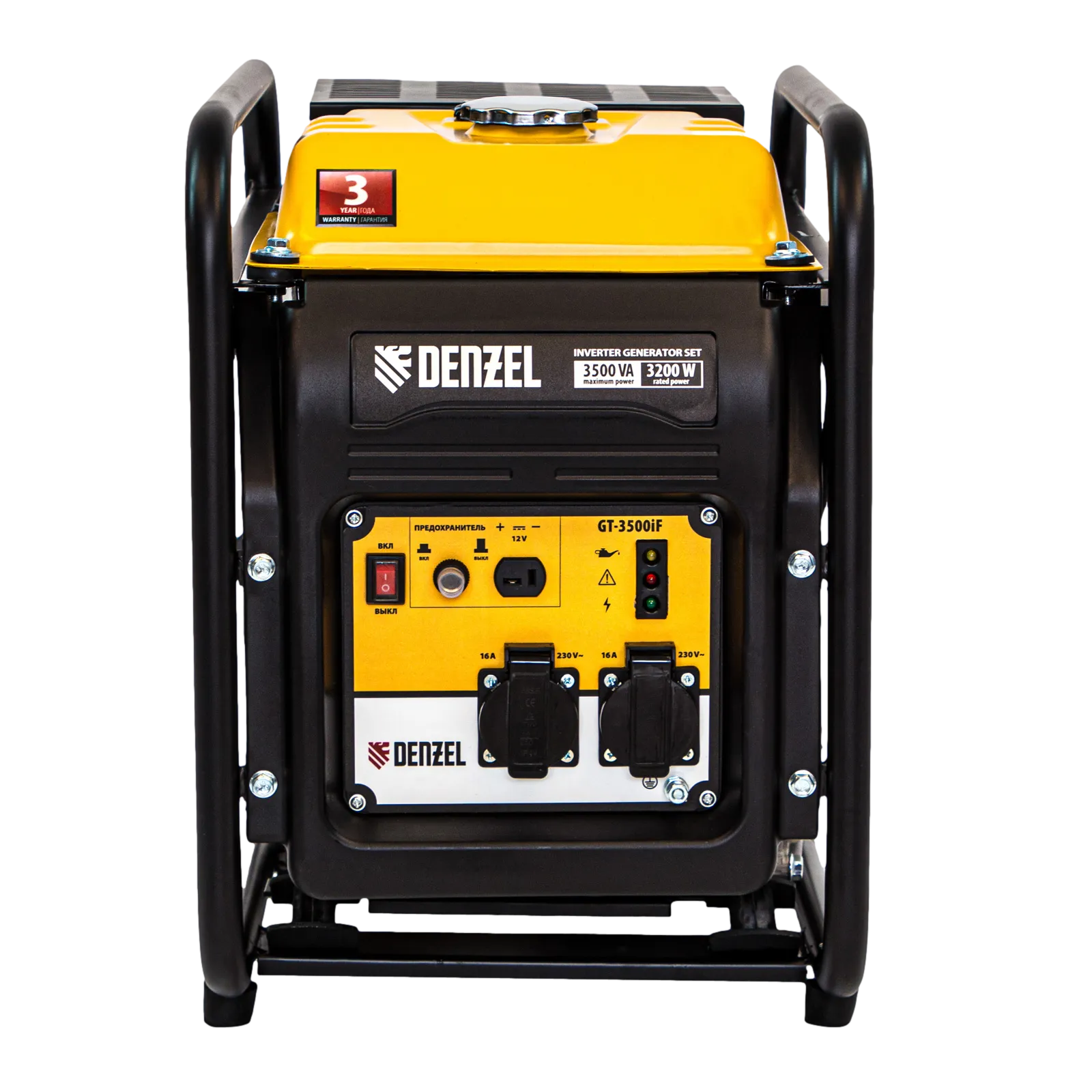 Инверторный генератор Denzel GT-3500iF 94705 мощностью 3,5 кВт, в открытом корпусе, с ручным стартом, — легкий и экономичный, но при этом достаточно мощный, с ним легко справится даже неопытный пользователь. Идеально подходит для использования на даче, в гараже, в мастерской и на природе. Четырехтактный двигатель Denzel Long Life мощностью 7 л.с. и объемом 212 куб. см работает стабильно и имеет относительно невысокий уровень шума (97 дБ) и вибраций. Прочная рама защищает рабочие элементы от повреждений в процессе работы и транспортировки.