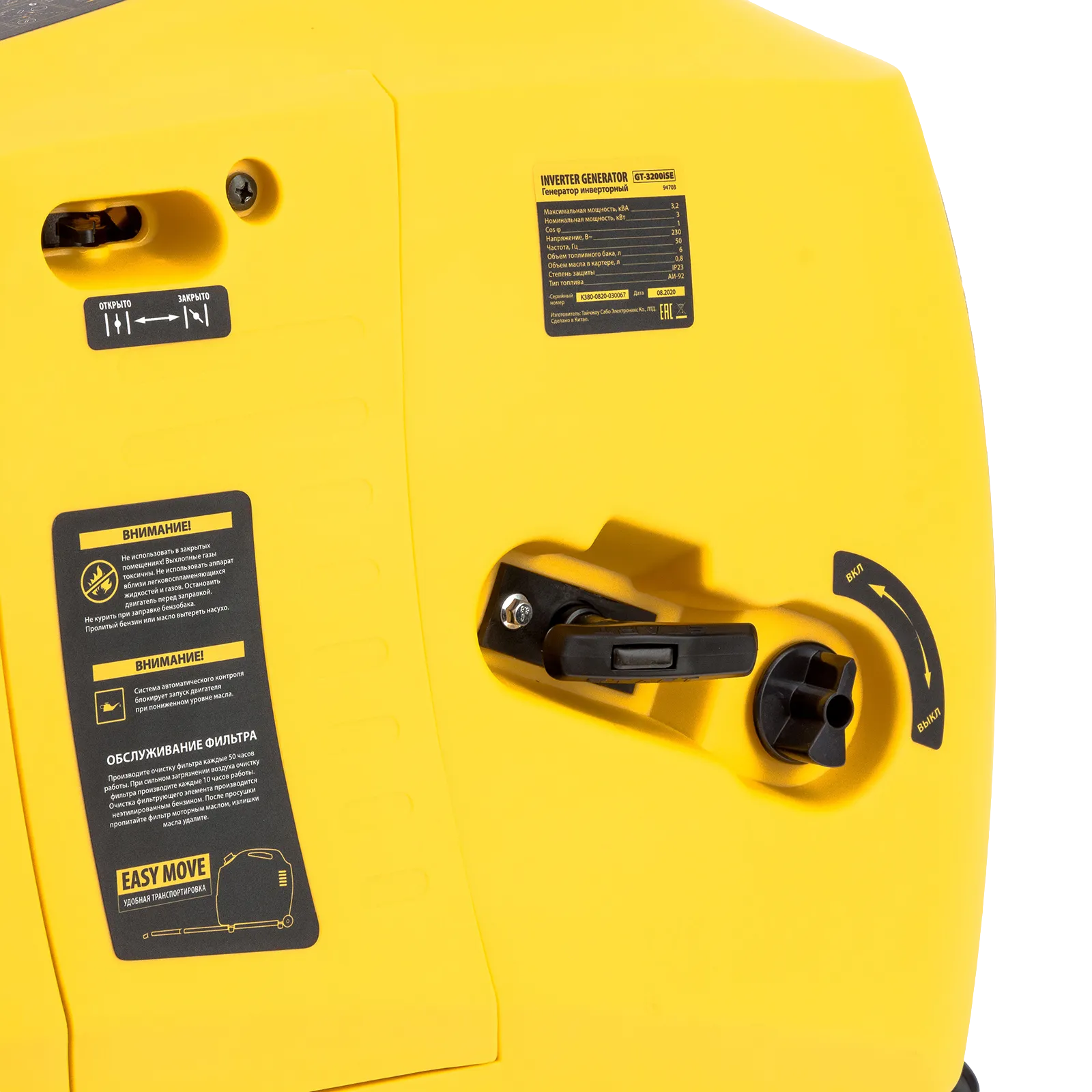 - Долгая работа без дозаправки — генератор способен работать почти 6,5 часов на 6 л топлива.