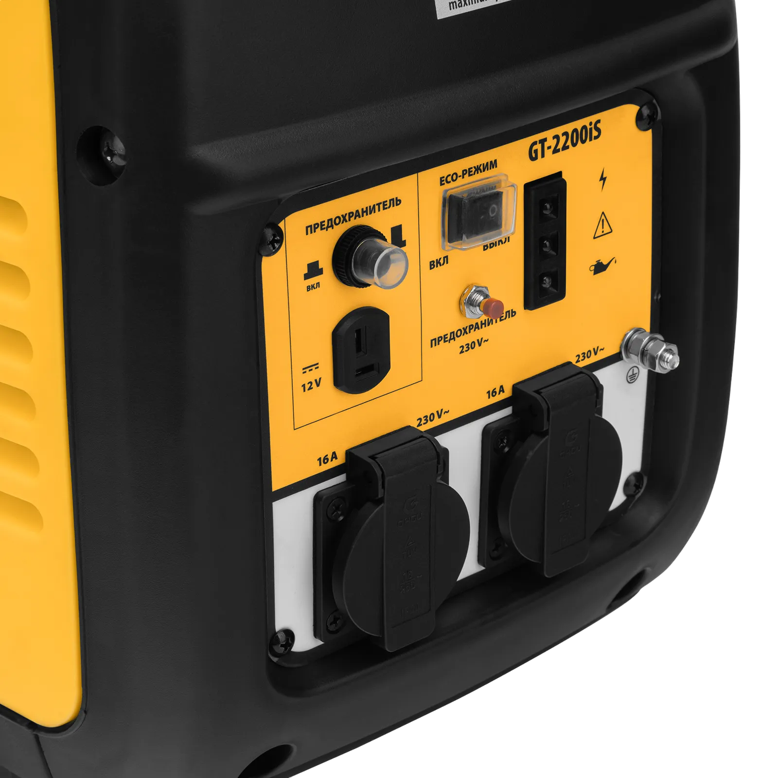 - 2 розетки 230 В на передней панели — можно одновременно подключать пару потребителей без использования удлинителя.