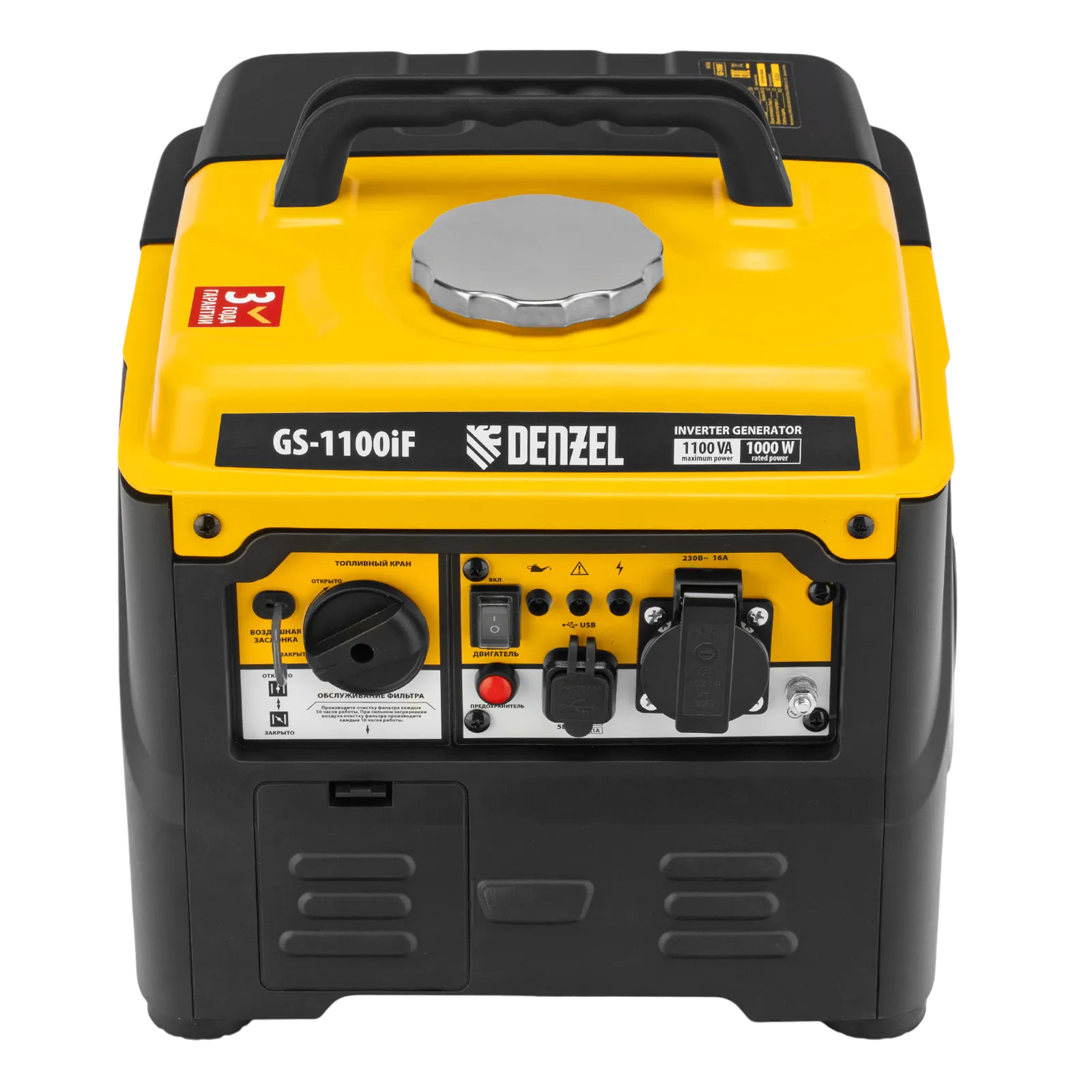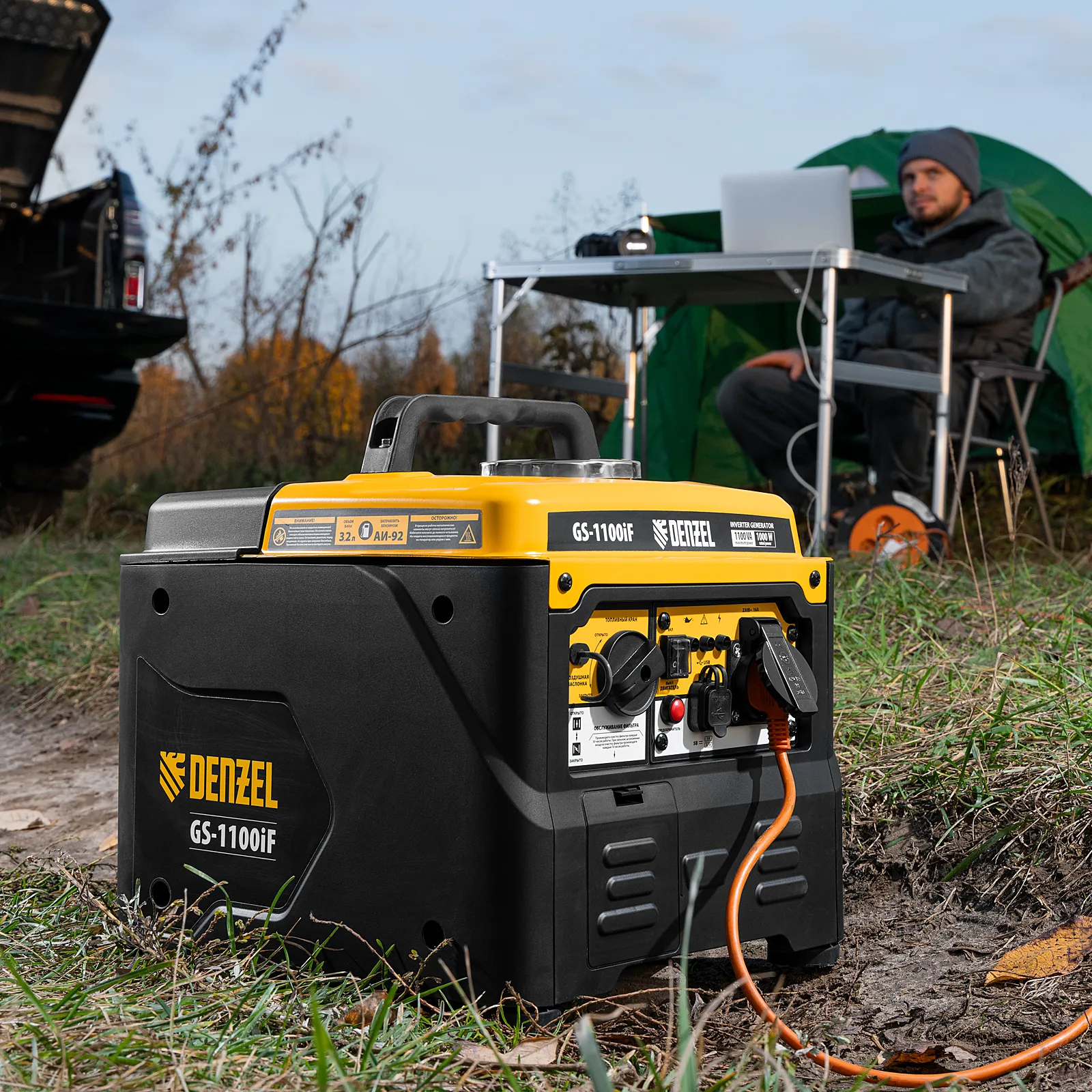 Инверторный генератор Denzel GS-1100iF 94706 максимальной мощностью 1,1 кВт, с ручным стартом, поддерживает напряжение 230 В и служит источником питания в случае отсутствия бытовой электросети. Обеспечивает работу осветительных приборов, электроинструмента, бытовой техники. Оптимален для подключения потребителей, которым требуется стабильный ток с точными параметрами: серверов, цифровой техники и т.д. Выход постоянного тока USB 5 В позволяет заряжать смартфоны, планшеты и другие мобильные устройства. Генератор пригодится для организации аварийного электроснабжения в частном доме.