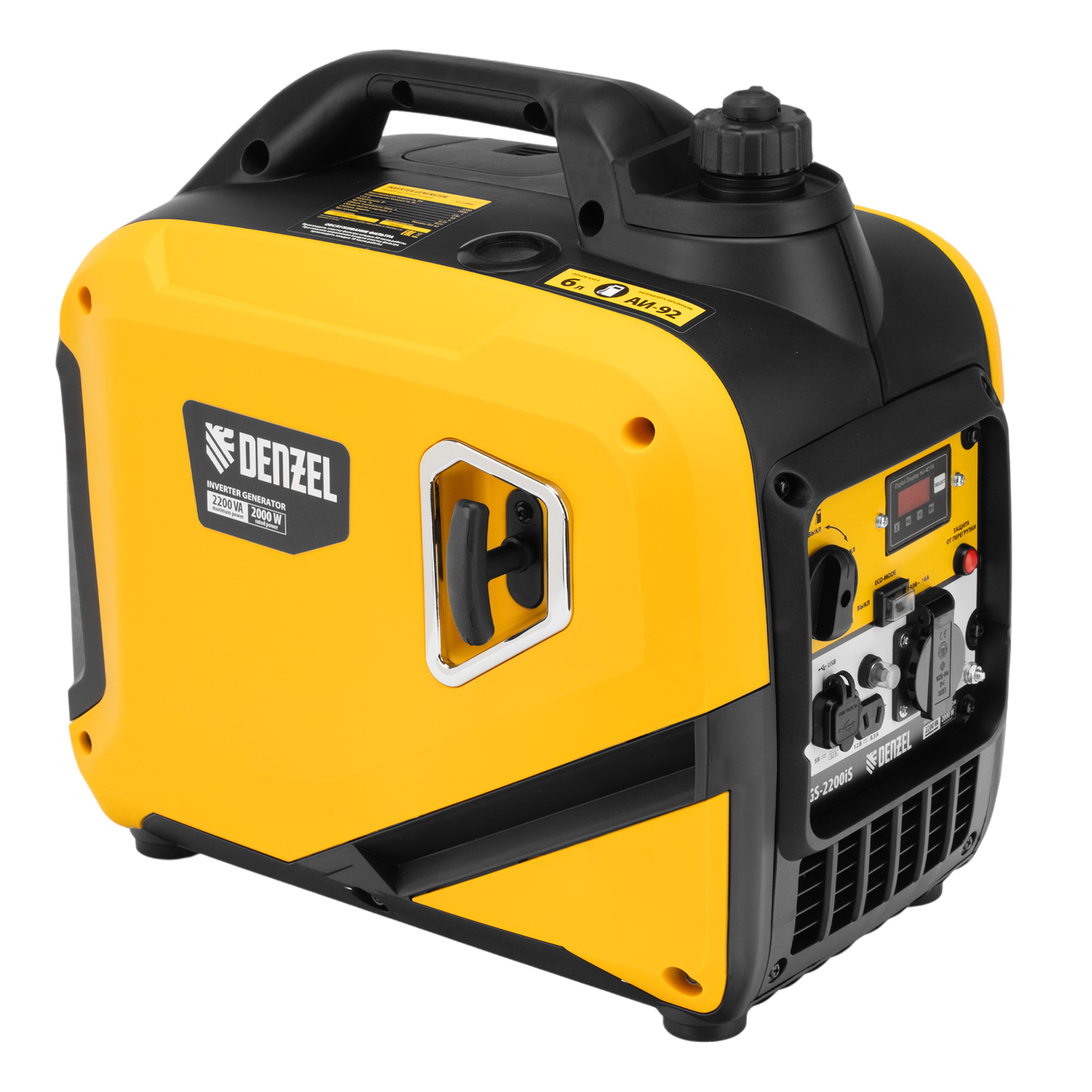 Инверторный генератор Denzel GS-2200iS 94713 максимальной мощностью 2,2 кВт, с ручным стартом, в закрытом корпусе, поддерживает напряжение 230 В и является автономным источником питания. Обеспечивает работу осветительных приборов, электроинструмента, бытовой техники в случае отсутствия подключения к электросети. Обеспечивает стабильный ток с неизменными параметрами и подходит для подключения высокоточной техники: компьютеров и т.д. Выход постоянного тока USB 5 В позволяет заряжать смартфоны, планшеты и другие гаджеты. Есть возможность зарядки автомобильных аккумуляторов — для этого предусмотрен выход 12 В. Генератор пригодится владельцам загородных домов.