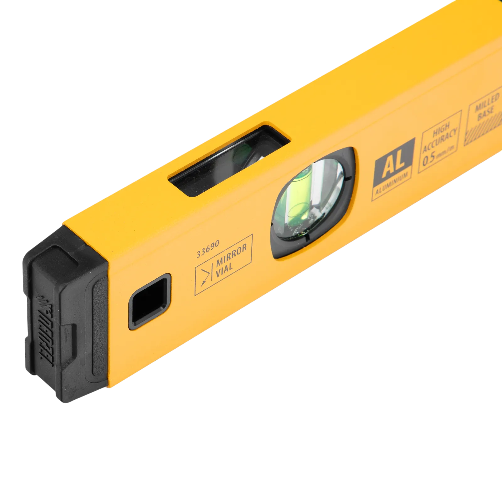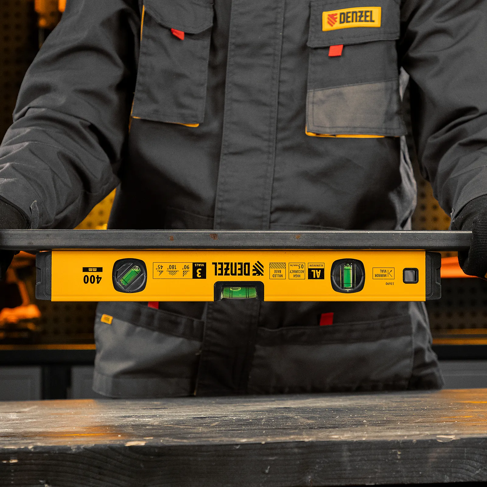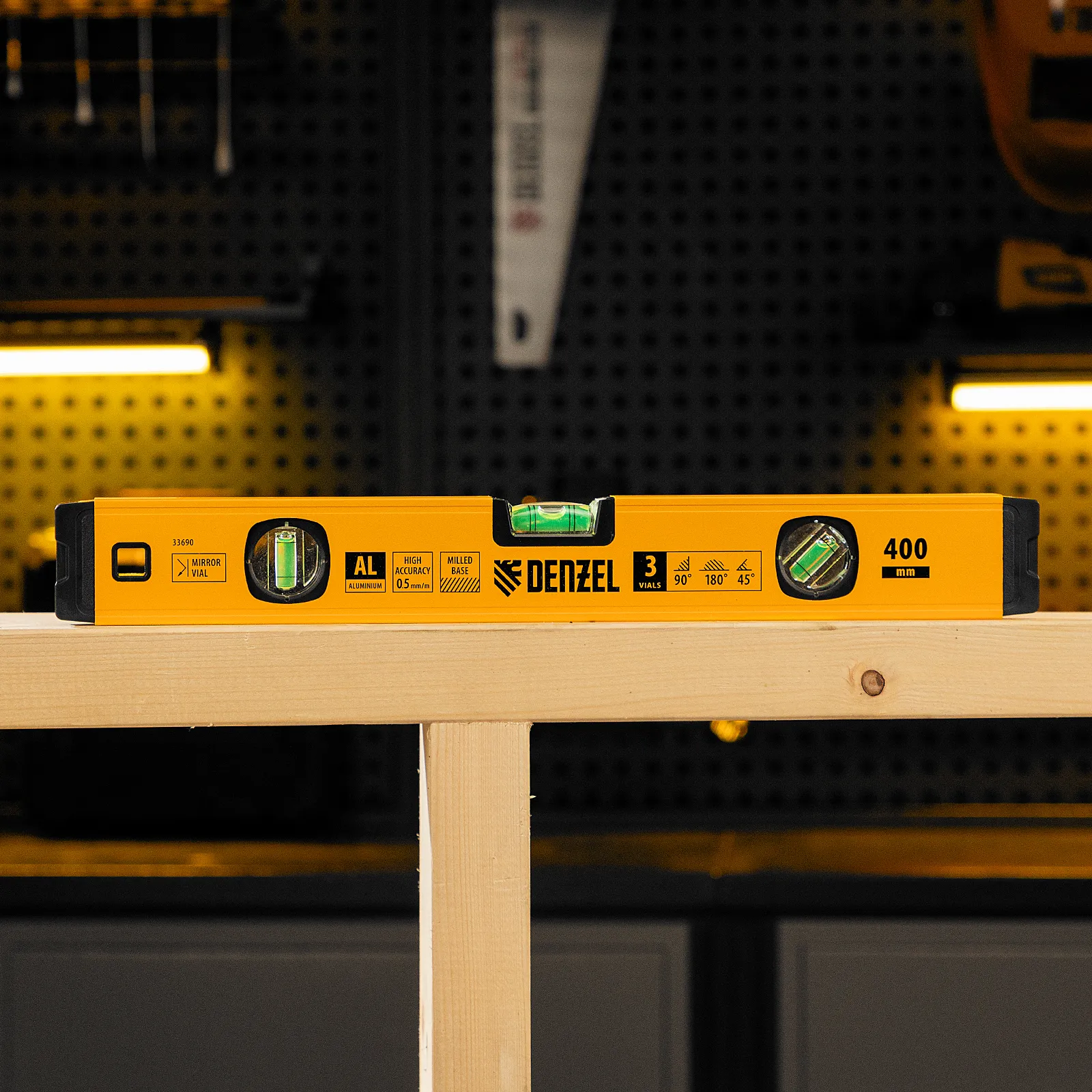 Алюминиевый фрезерованный уровень Denzel 33690 длиной 400 мм, с магнитом и 3 глазками, из которых 1 зеркальный, предназначен для контроля отклонений от горизонтальной, вертикальной и поверхности под углом 45° с точностью 0,5 мм/м. 3 пузырьковые камеры 90°, 180° и 45° позволяют быстро проверить правильность разметки. Инструмент незаменим при проведении строительных, ремонтных, сантехнических работ.