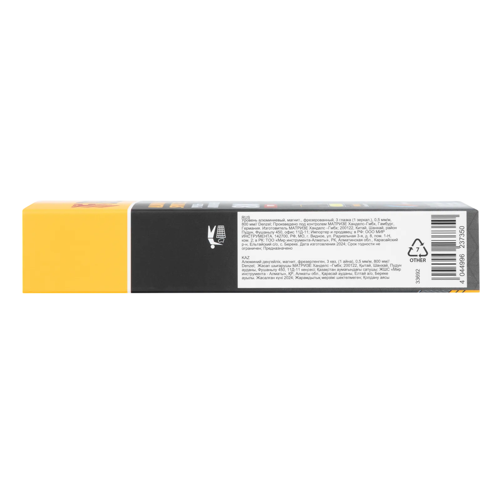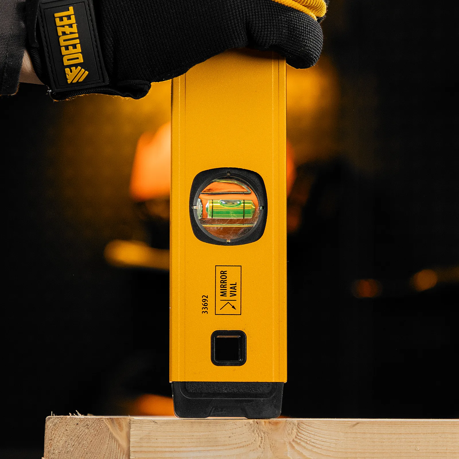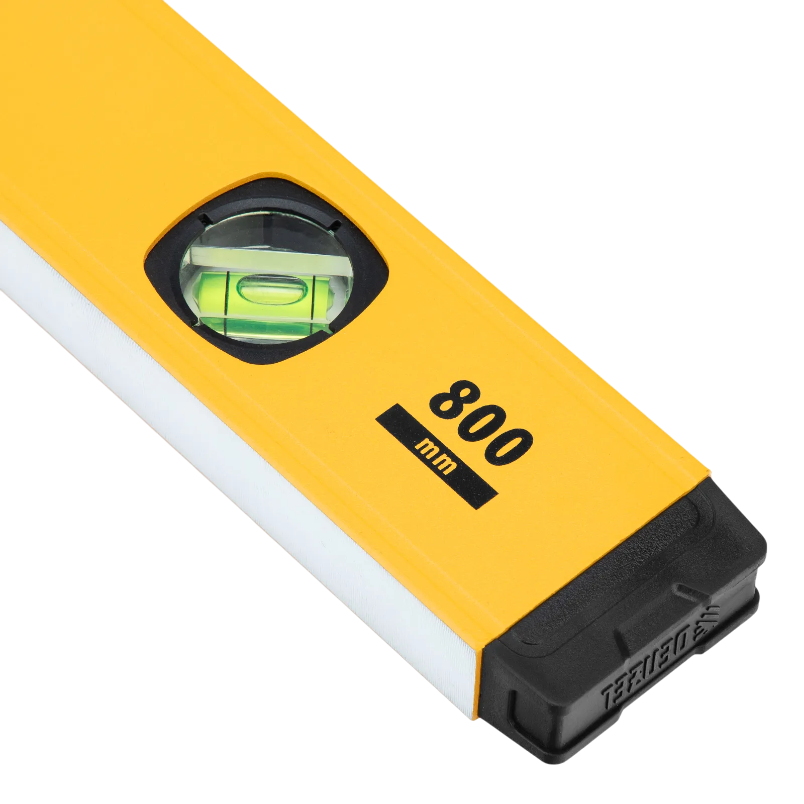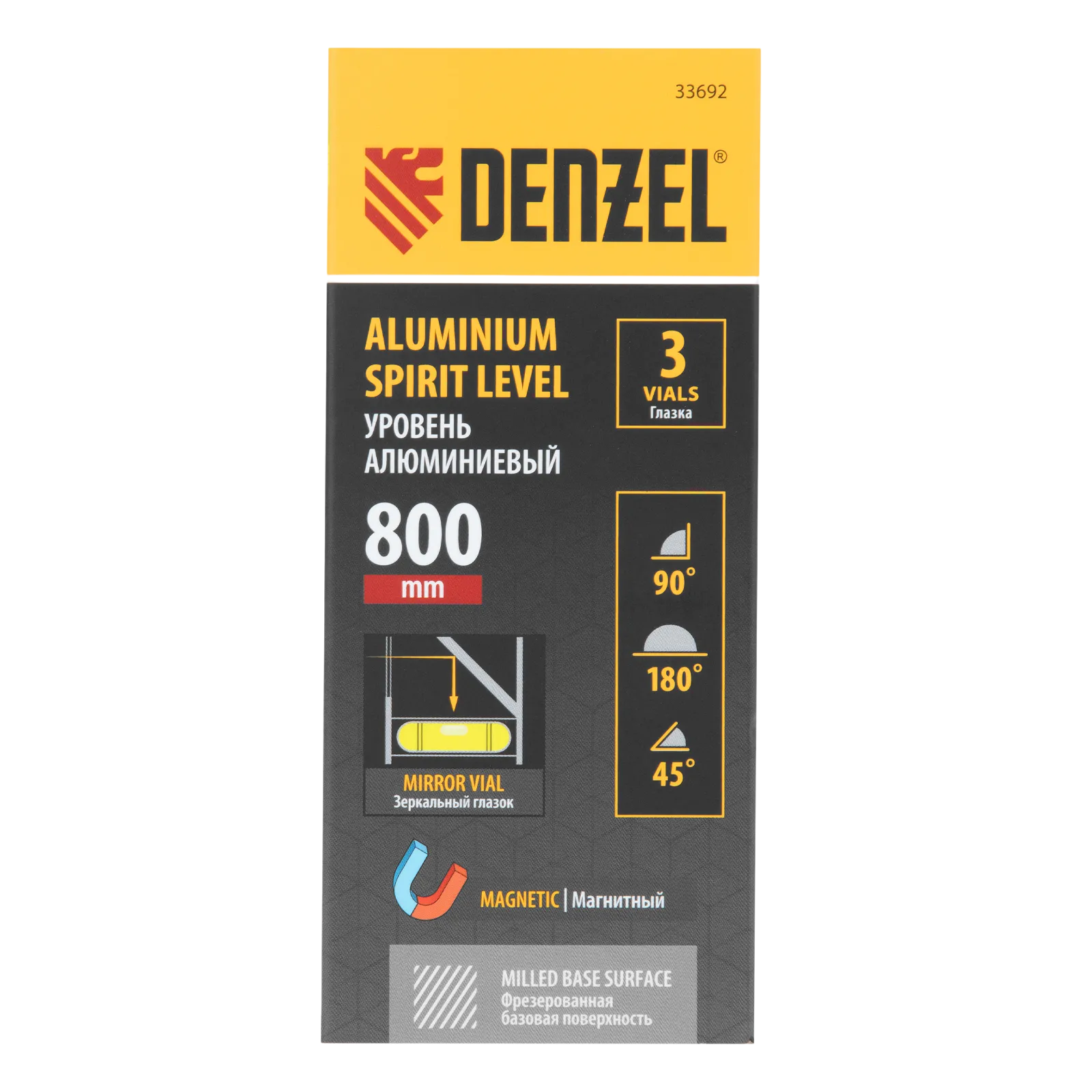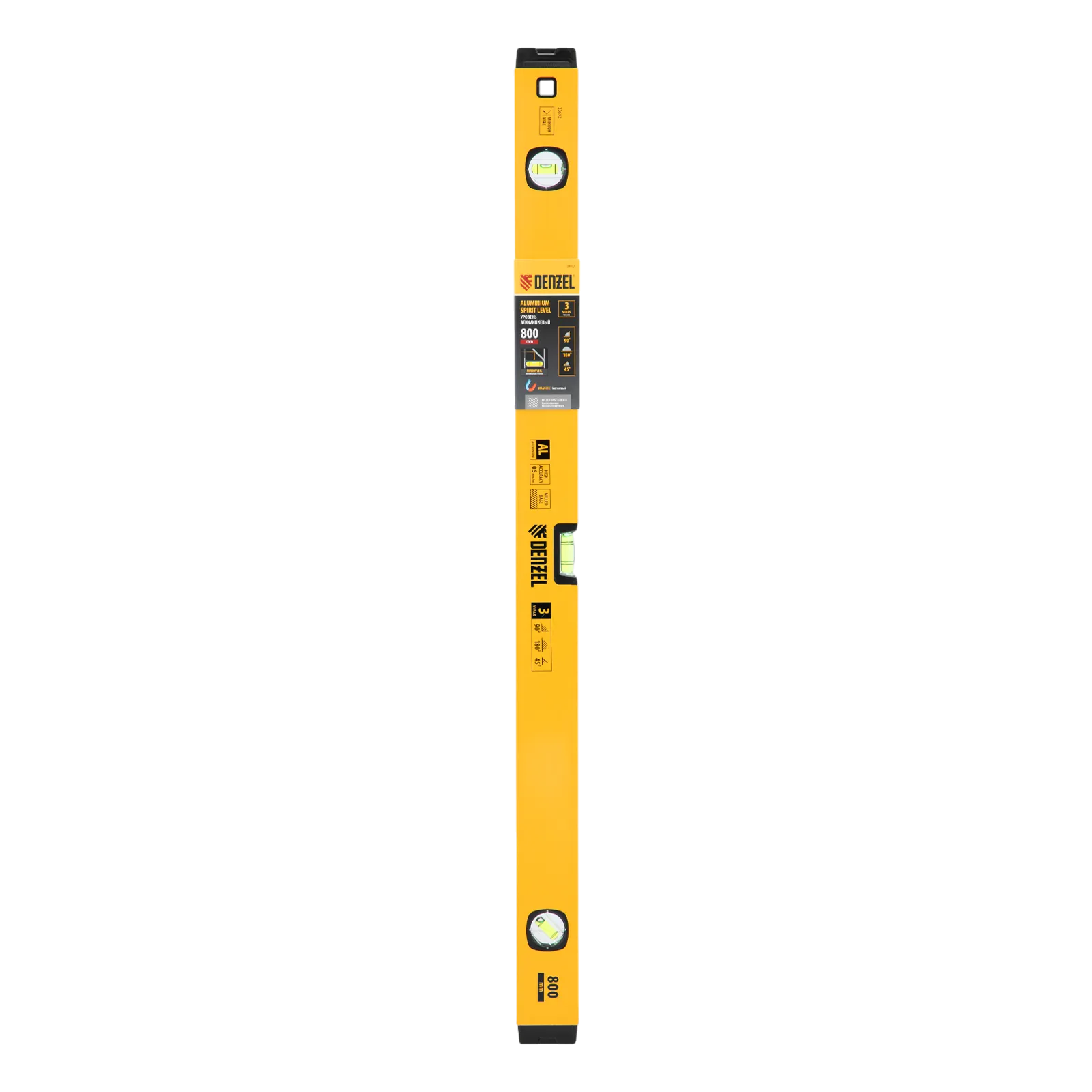 Алюминиевый фрезерованный уровень Denzel 33692 длиной 800 мм, с магнитом и 3 глазками, из которых 1 зеркальный, предназначен для контроля отклонений от горизонтальной, вертикальной и поверхности под углом 45° с точностью 0,5 мм/м. 3 пузырьковые камеры 90°, 180° и 45° позволяют быстро проверить правильность разметки. Инструмент незаменим при проведении строительных, ремонтных, сантехнических работ.