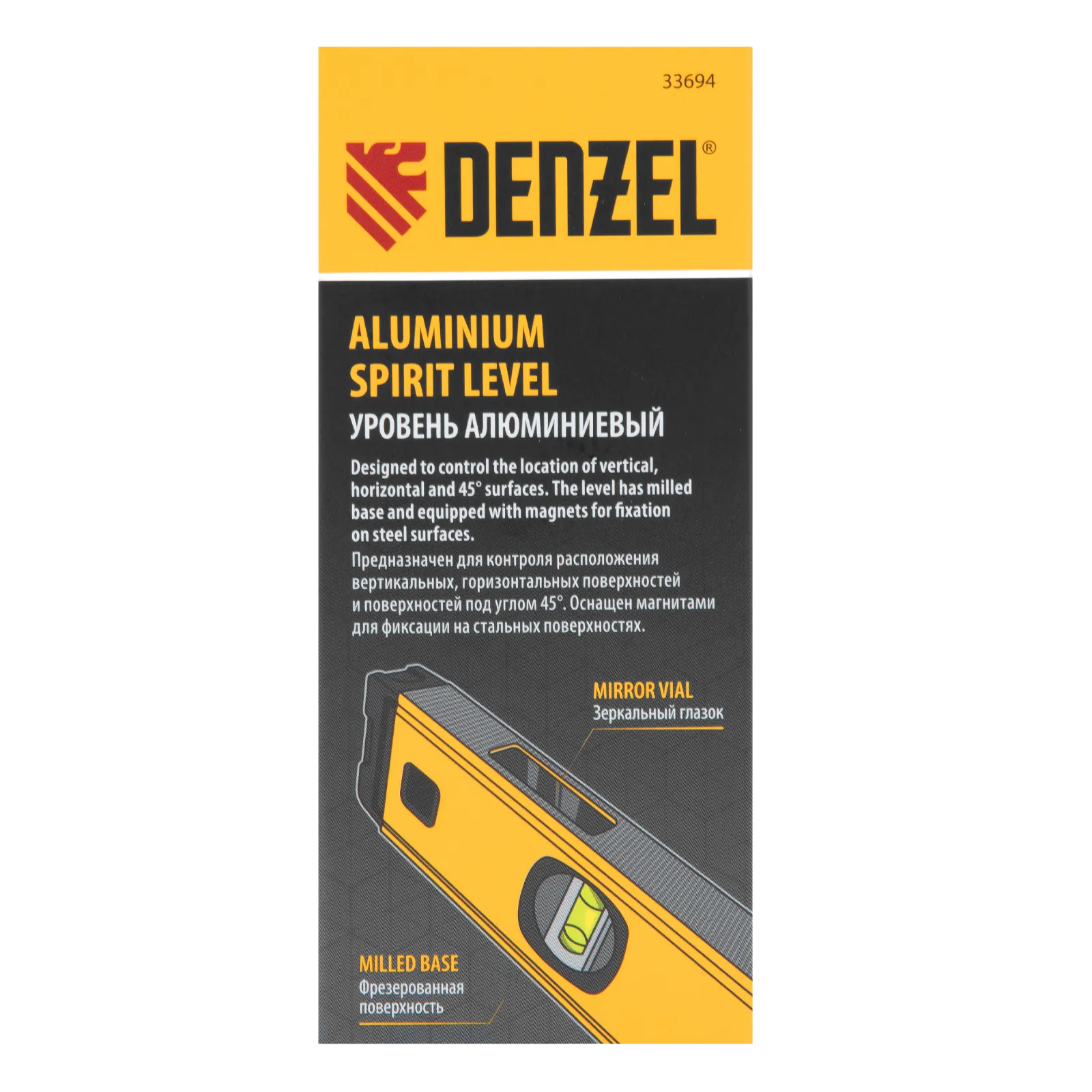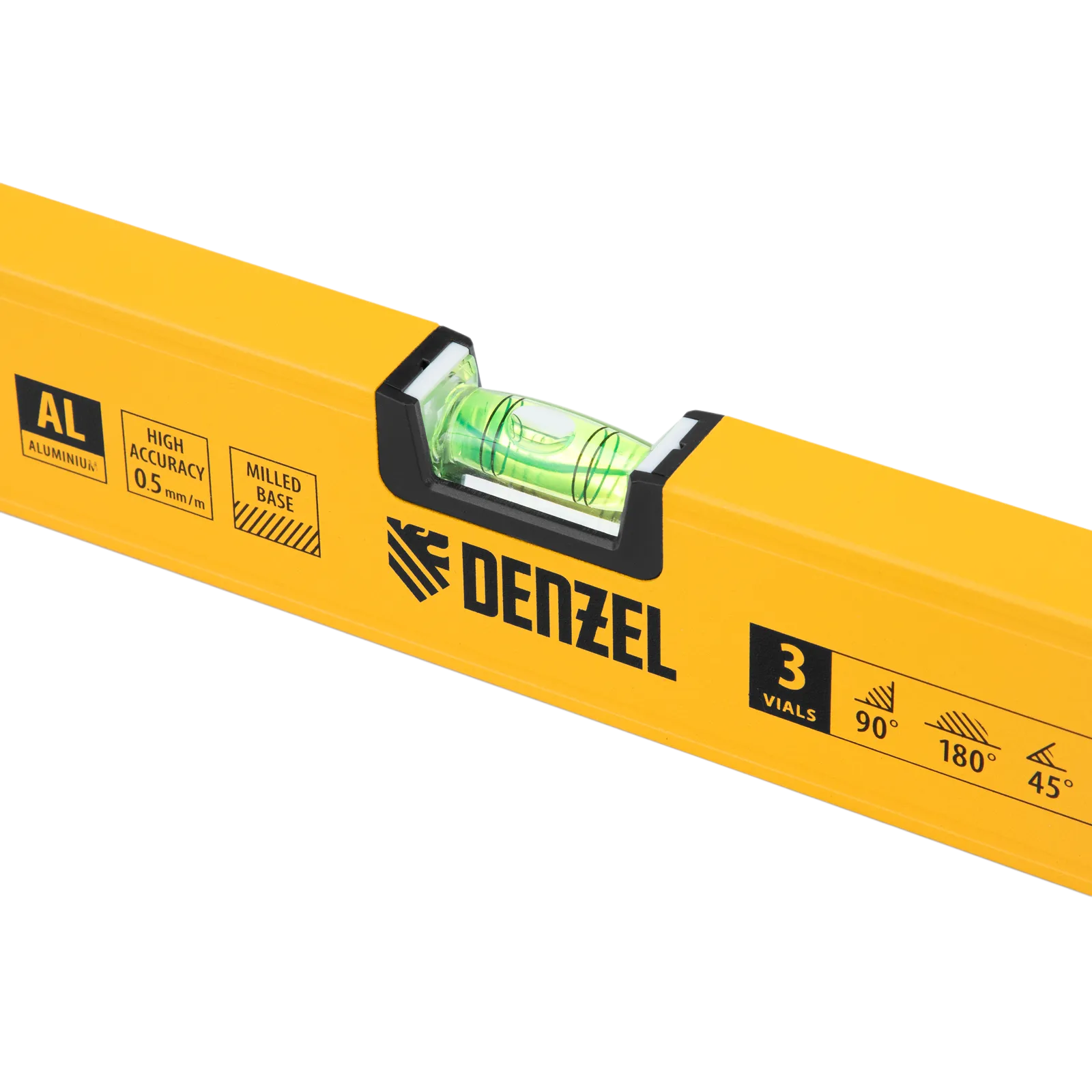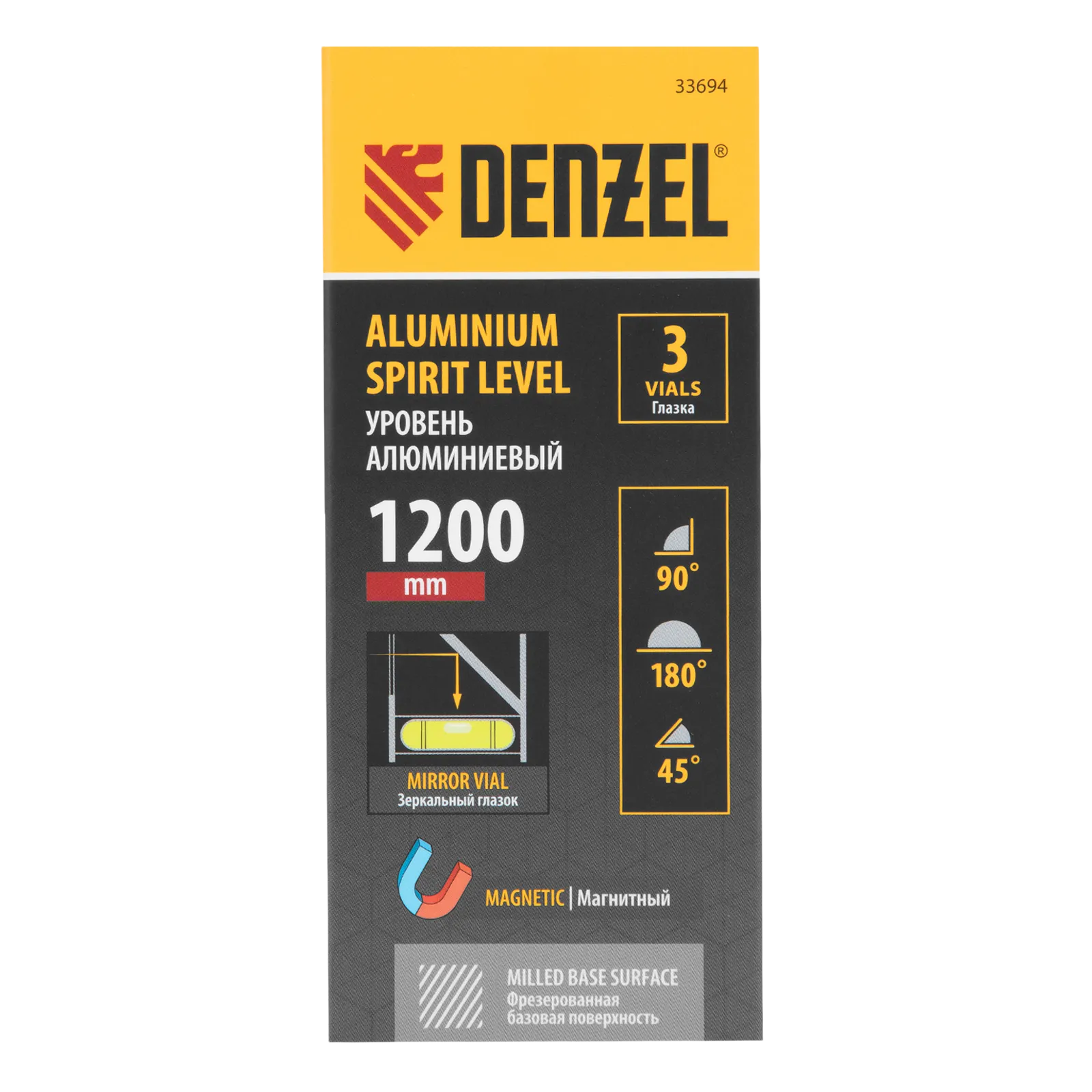 Алюминиевый фрезерованный уровень Denzel 33694 длиной 1200 мм, с магнитом и 3 глазками, из которых 1 зеркальный, предназначен для контроля отклонений от горизонтальной, вертикальной и поверхности под углом 45° с точностью 0,5 мм/м. 3 пузырьковые камеры 90°, 180° и 45° позволяют быстро проверить правильность разметки. Инструмент незаменим при проведении строительных, ремонтных, сантехнических работ.
