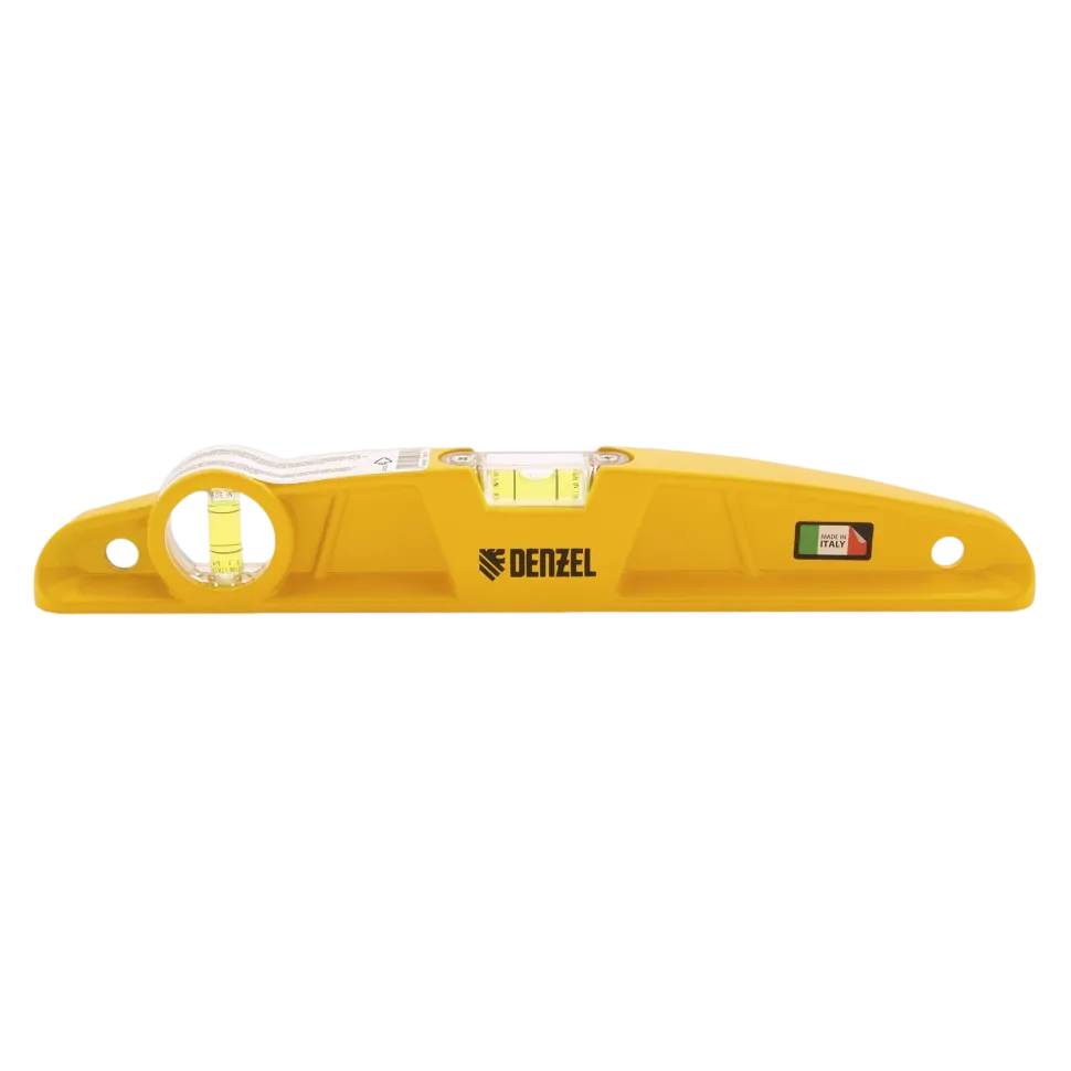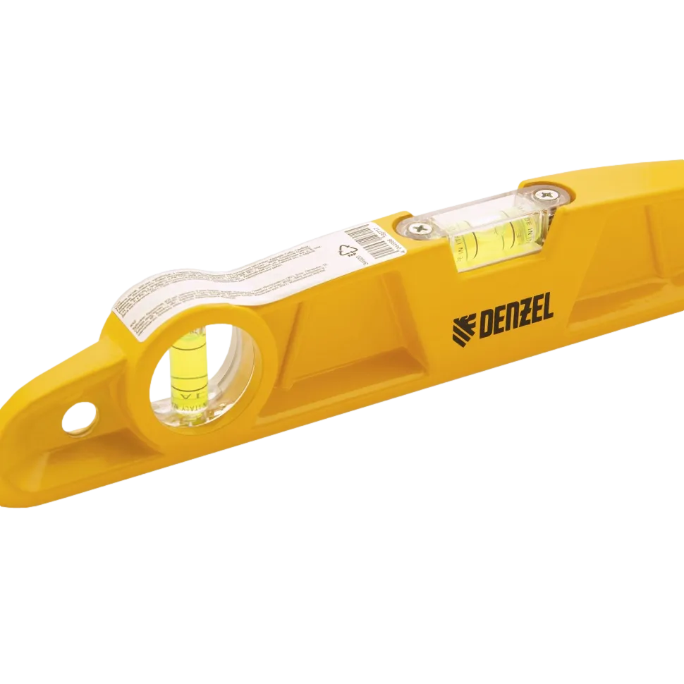 Литой магнитный уровень Denzel 34920 длиной 300 мм, с 2 глазками, поможет создать ровные линии в горизонтальной и вертикальной плоскостях. Строительный уровень обеспечивает высокоточную работу и используется при укладке напольной и настенной плитки, выравнивании кирпичной кладки, брусчатки и т.д.;Для определения отклонения вертикали 90 градусов необходимо использовать пузырьковую ампулу только в верхнем положении уровня. Только базовая поверхность является рабочей (противоположная ампуле 180 градусов).