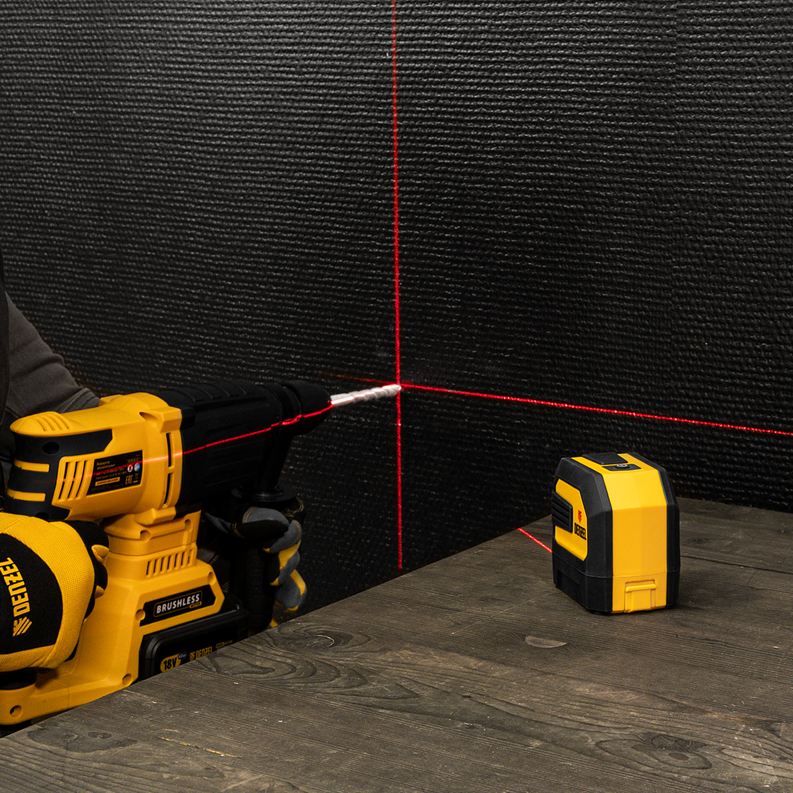 - Четкая проекция — красные лазеры обеспечивают хорошую видимость линий даже при дневном освещении.