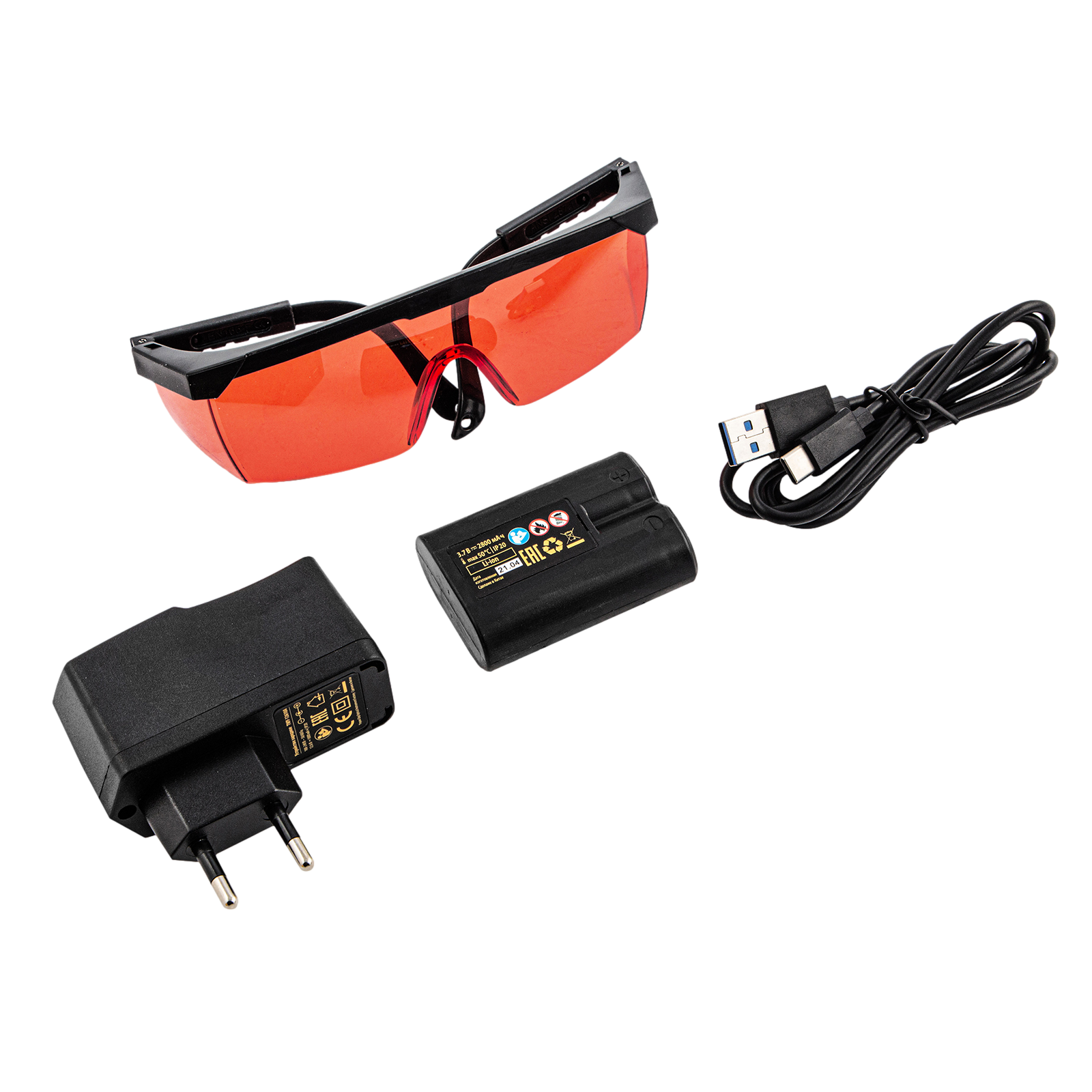 - Оповещение о превышении угла наклона — в случае отклонения уровня более чем на 4° по горизонтали лазерные лучи начинают мигать.