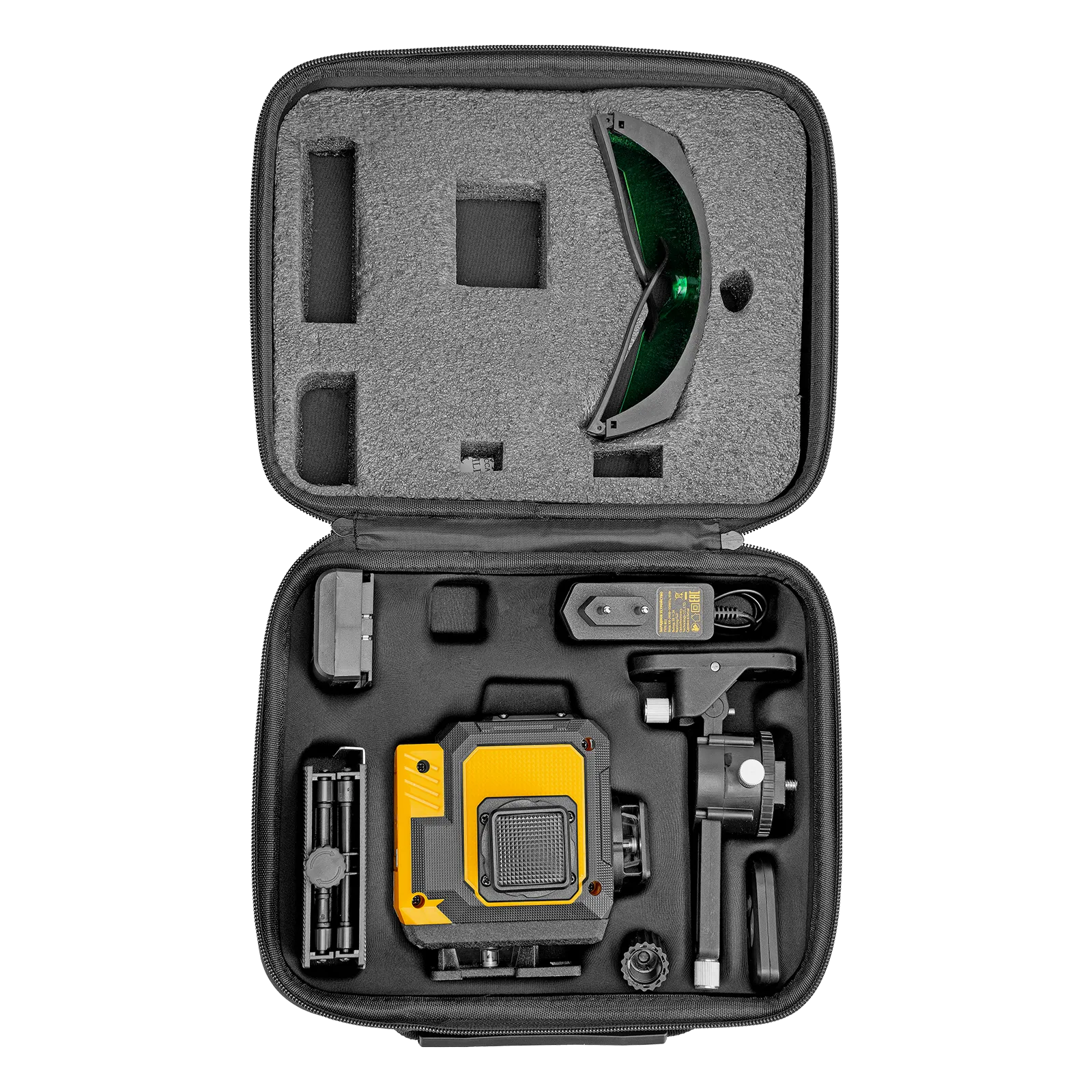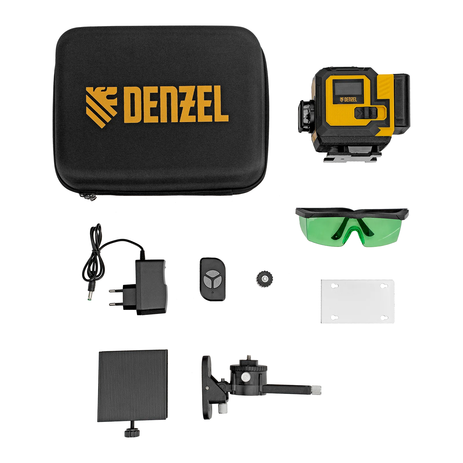 - Удобное хранение и транспортировка — лазерный уровень с аксессуарами упакован в кейс.