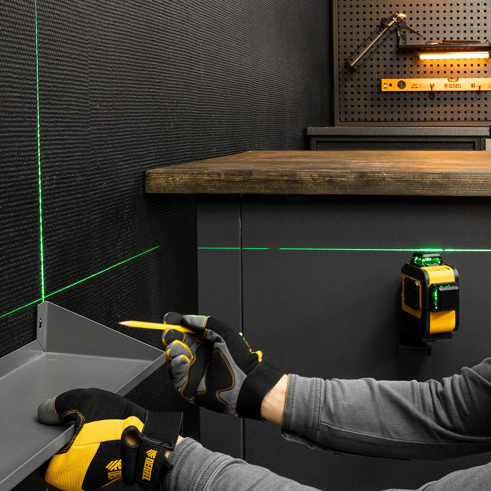 - Точная разметка — уровень имеет функцию самовыравнивания, в случае отклонения по горизонтали более чем на 4° срабатывает световое оповещение.