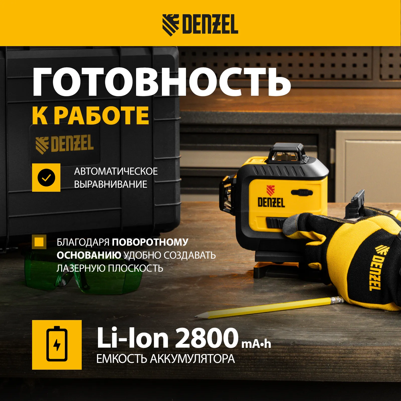 - Точная разметка — уровень имеет функцию самовыравнивания, в случае превышения отклонения по горизонтали более чем на 4° срабатывает световое оповещение.