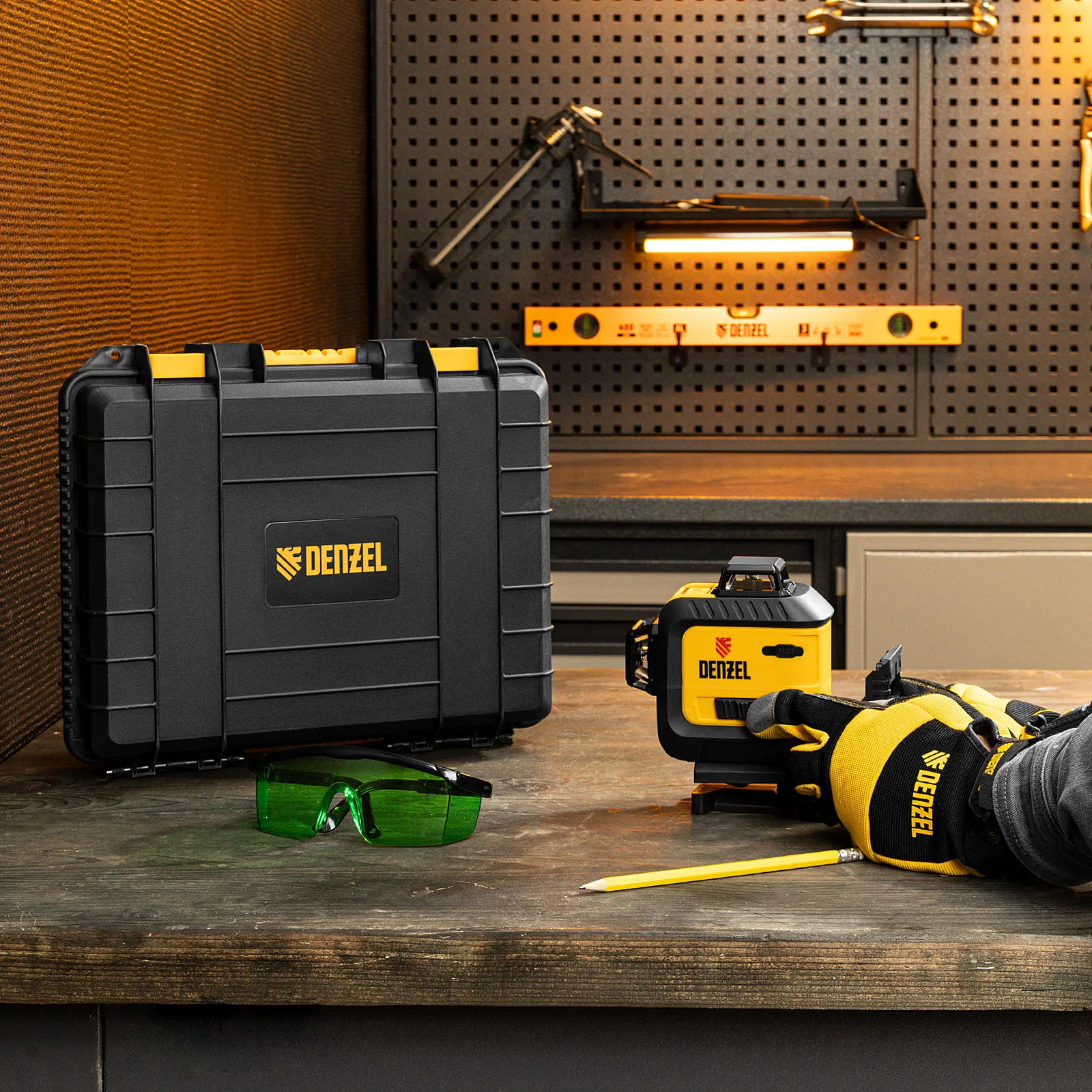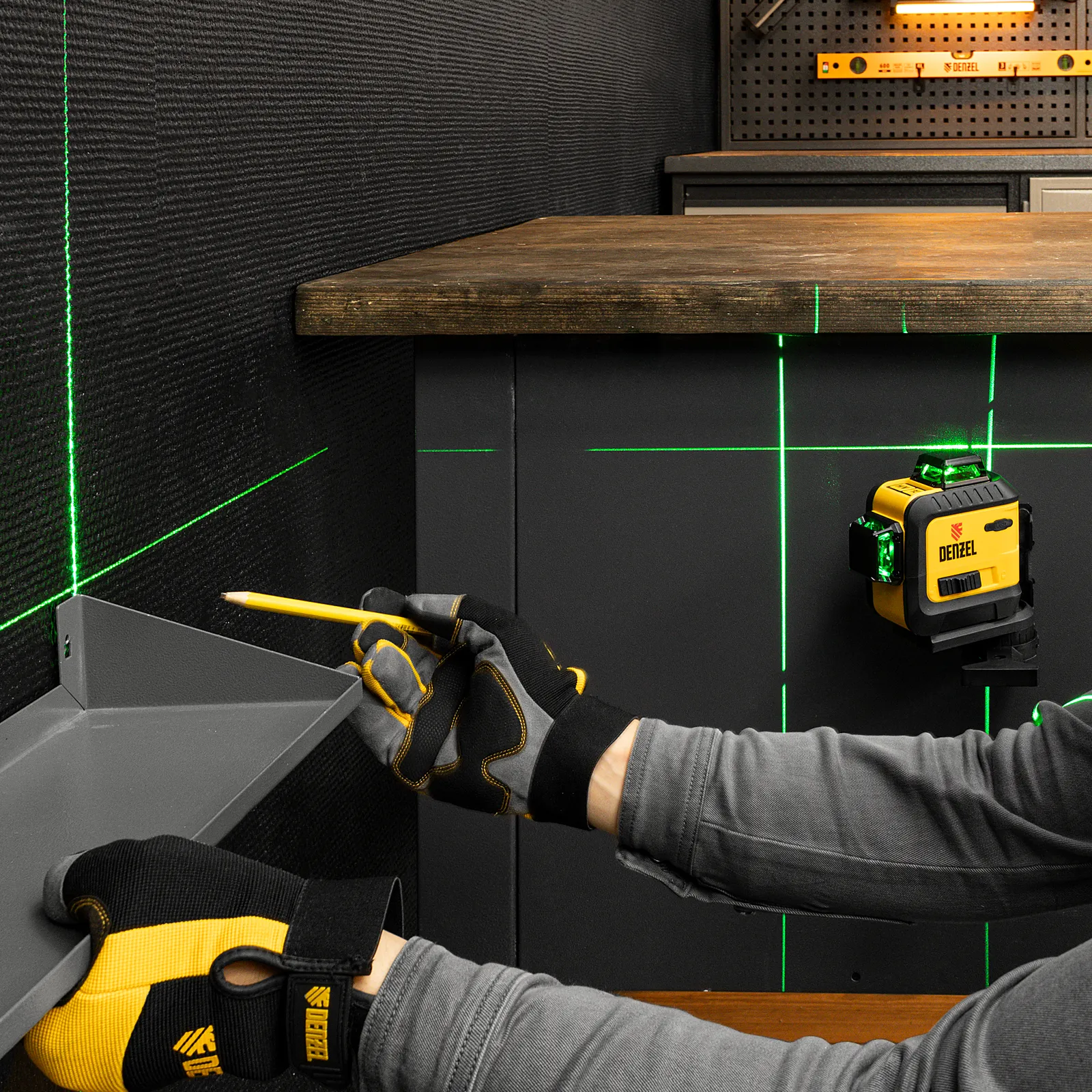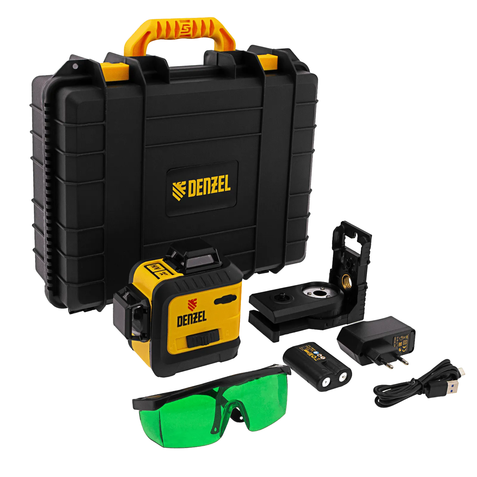Мультипризменный лазерный уровень Denzel LXI 360-3 Green 35079 с резьбой под штатив 1/4″ питается от аккумулятора Li-Ion 5200 mAh и проецирует 2 взаимно перпендикулярные линии с охватом в 360° на расстояние до 30 м при помощи зеленых лучей длиной 520 нм. Точность составляет ±0,3 мм/м. Уровень используется для построения разметки во время проведения отделочных и строительных работ. Подходит для площадки длиной до 60 м.