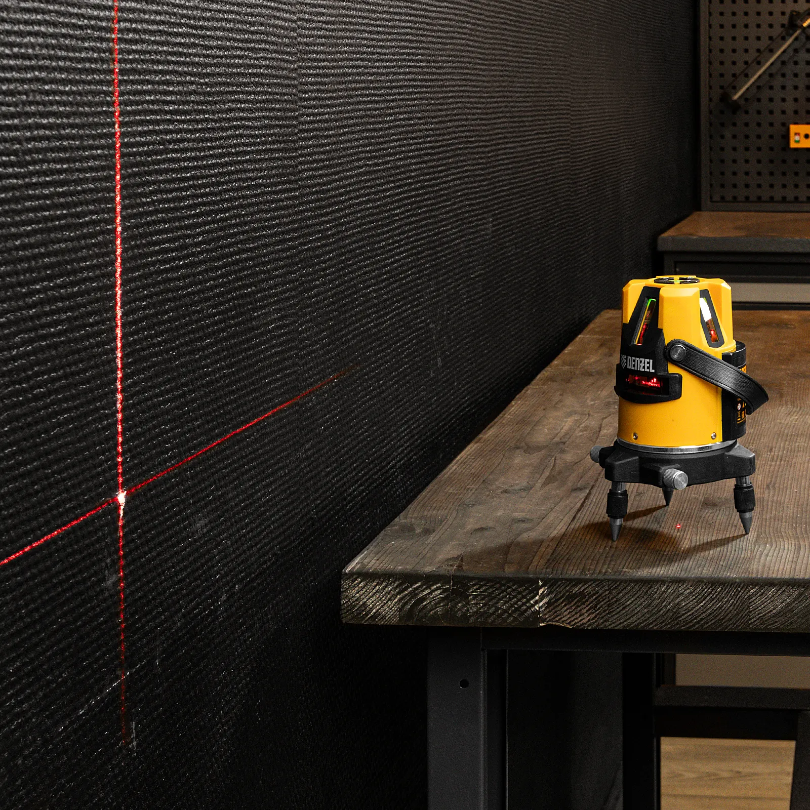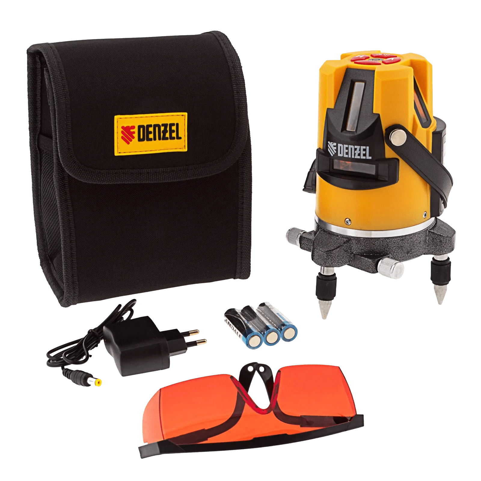 Лазерный уровень Denzel LX3 35070 с резьбой 5/8" под штатив имеет точность ±0,3 мм/1 м и проецирует точку отвеса, 4 вертикальных и 1 горизонтальную линию на расстояние до 10 м при помощи красных лучей 635 нм. Используется для построения разметки на стенах, полу и потолке. Пригодится во время укладки плитки, монтажа подвесных потолков, установки оконных рам, а также проведения других ремонтных и отделочных работ.