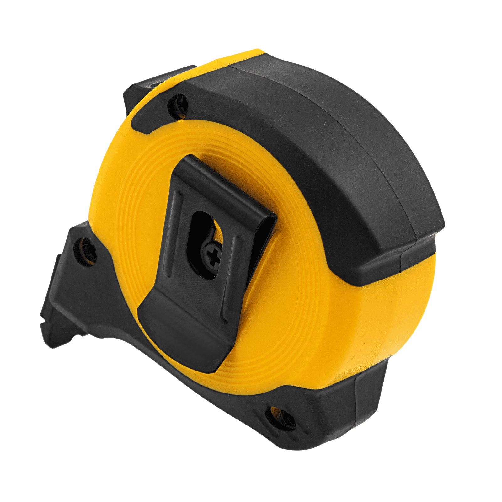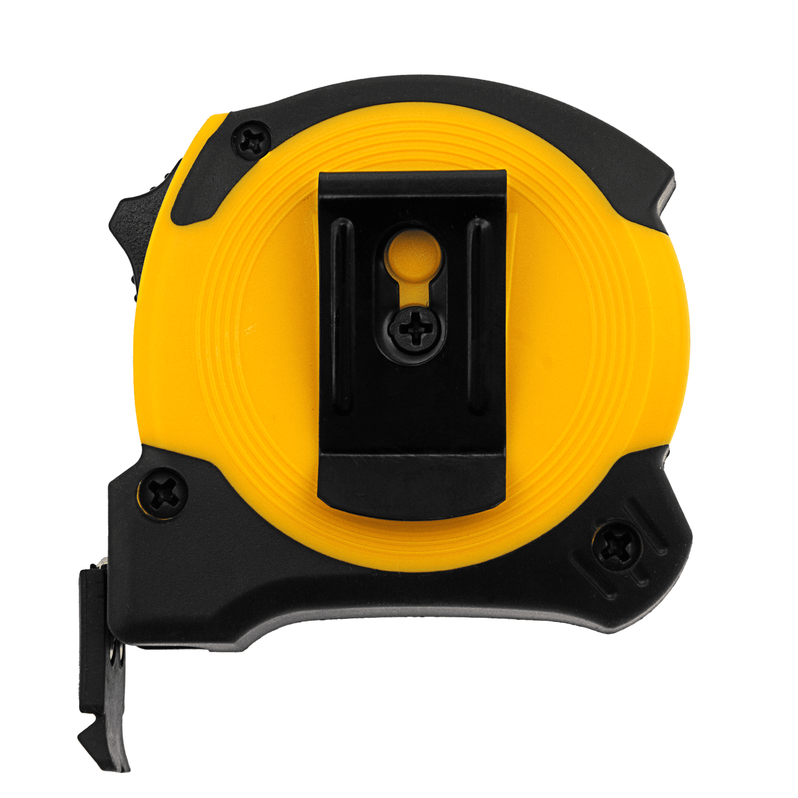 - Удобная фиксация на ремне — рулетка дополнена поясным зажимом.