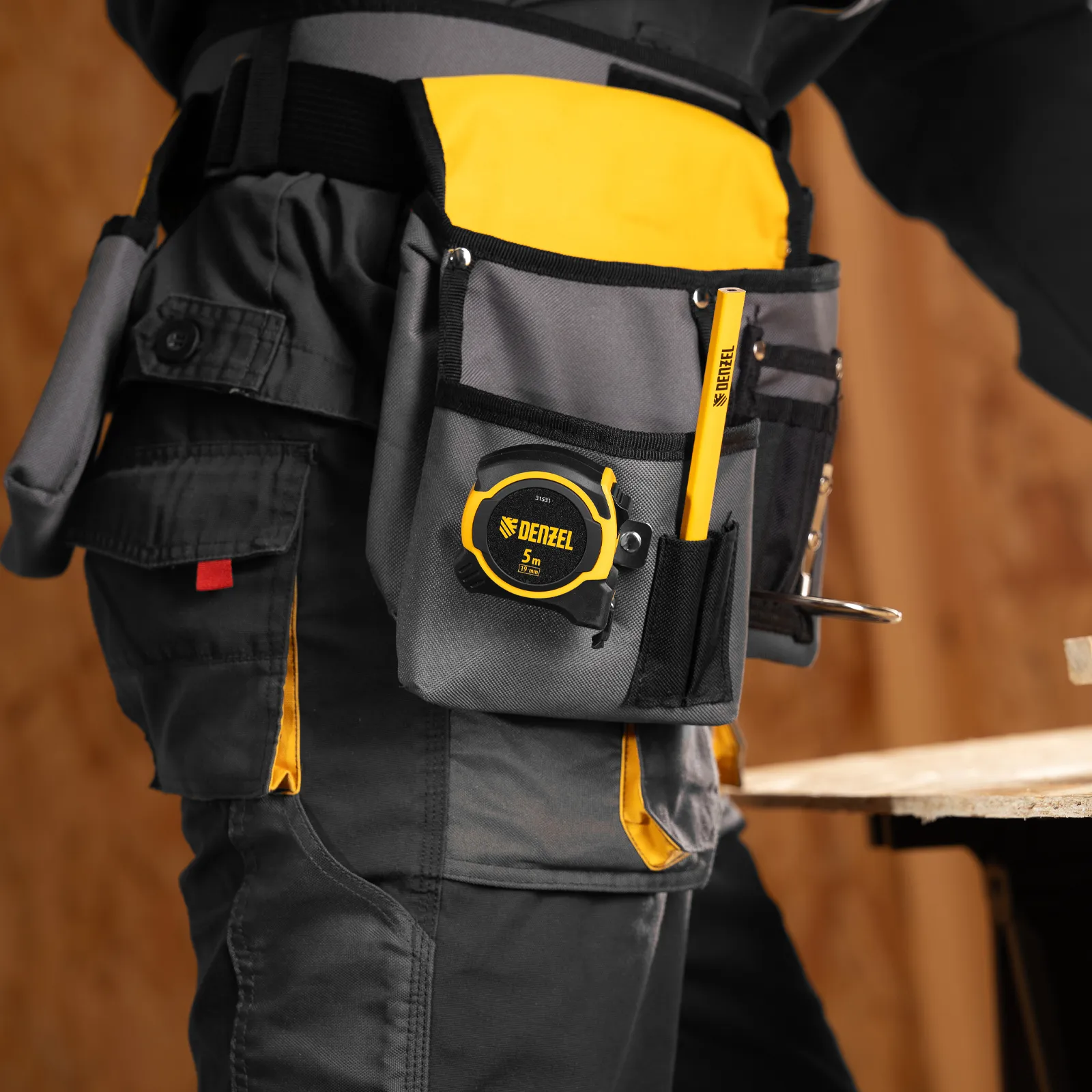 - Удобная фиксация на ремне — рулетка дополнена поясным зажимом.